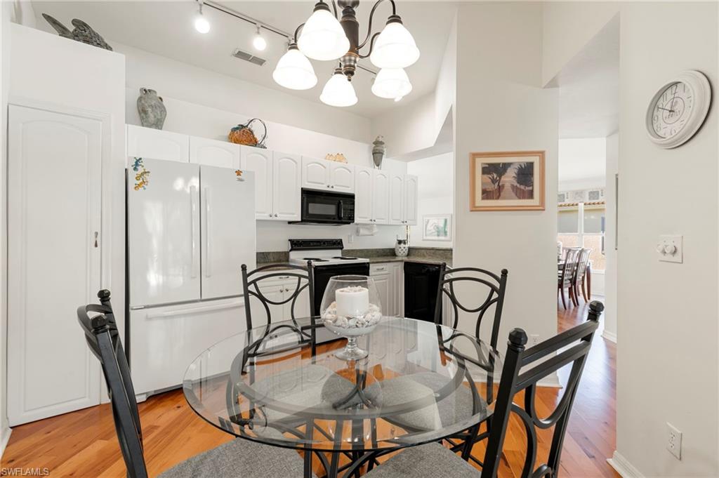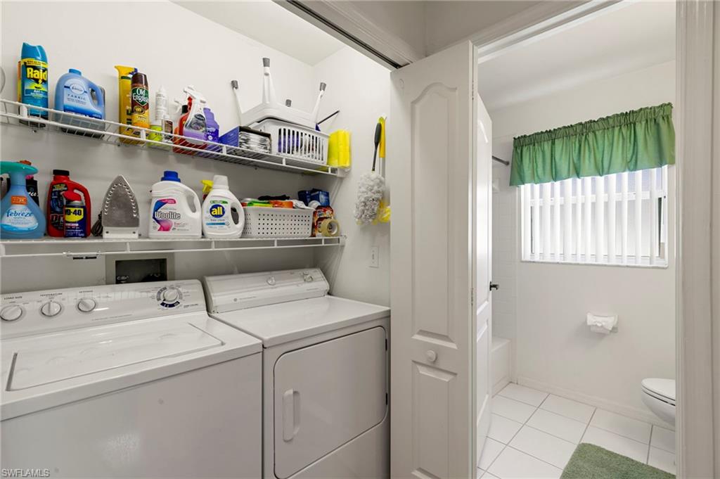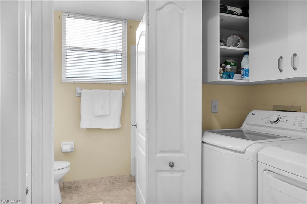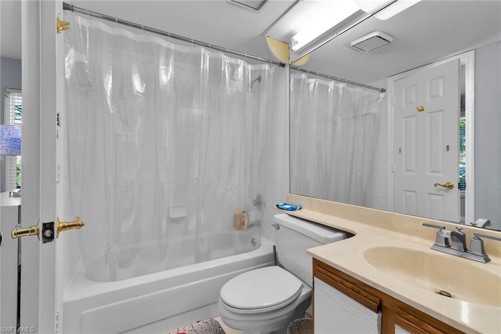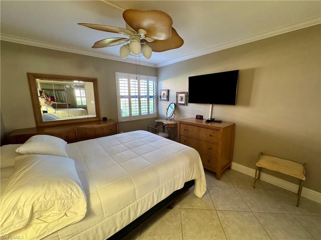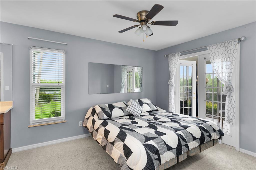 Welcome to one of the finest views in Tropic Schooner. This beautifully updated first-floor condo offers exceptional privacy and a stunning panorama of the wide lake, peaceful water feature, and the golf course beyond. The screened-in lanai is perfectly positioned for daily wildlife viewing, and the living room’s patio sliders create effortless indoor–outdoor living. Inside, the home features tile flooring throughout and a remodeled, modern kitchen in 2025 with quartz countertops, pull-out cabinets, a spacious breakfast bar, and an open layout that flows seamlessly into the dining and living areas. The dining room is framed by two large windows showcasing the lake, filling the space with natural light. The floor plan includes two comfortable bedrooms, two full updated baths, and convenient in-unit laundry. AC 2021, H2O Heater 2023. Lighting, doors & ceiling fans 2024. Impact glass adds durability and peace of mind. Parking is conveniently located, and the community pool is only steps away—close enough for easy enjoyment while remaining quiet and private. Tropic Schooner provides a well-rounded lifestyle with two pools, pickleball and tennis courts, bocce, shuffleboard, a clubhouse, and a car-wash station. All of this is ideally situated just 3 miles from Marco Island and 12 miles from Downtown Naples/5th Ave. This is a wonderful opportunity to enjoy Southwest Florida living in a well-maintained, amenity-rich community—all at a valued price.