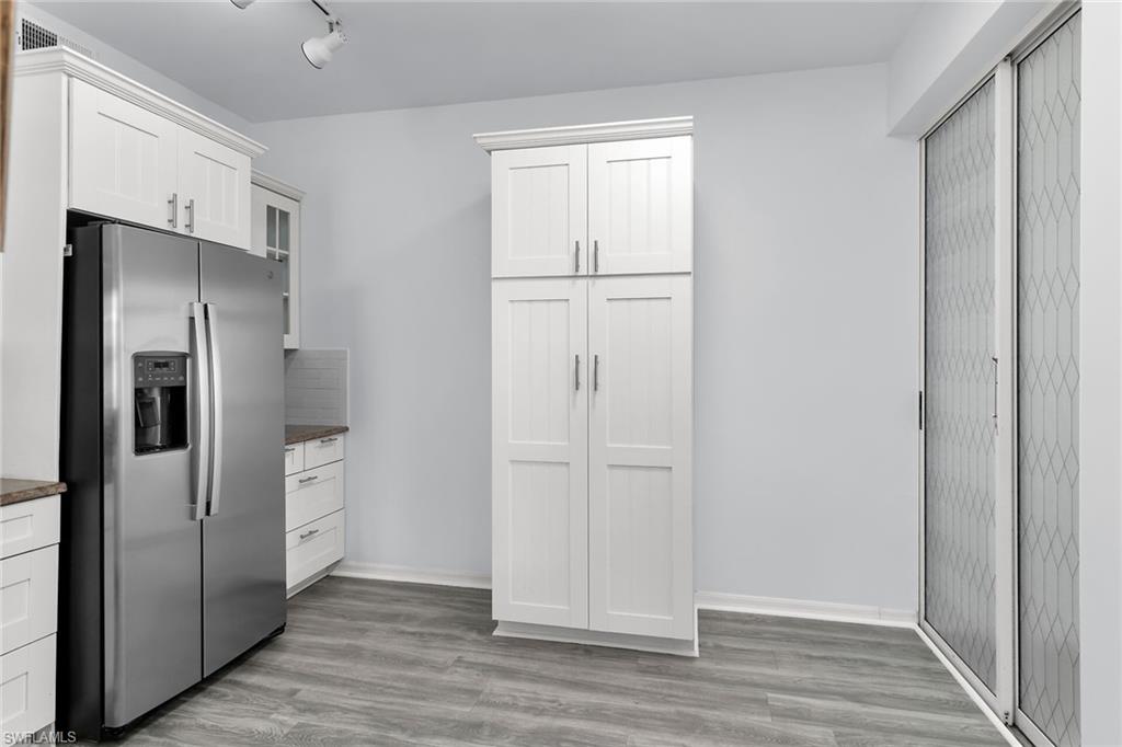 Welcome to the Fairways at Marco Shores. This 3-bedroom, 2-full bathroom end unit condo has been immaculately kept. Upon entering your private screened entry, you segue into an open foyer. The large kitchen offers granite counter tops and ample space to entertain family and friends. The updated vinyl floors and crown molding throughout provides a modern & clean look. The split-bedroom floorplan provides a private master suite which also has its own access to the screened outdoor space. This light and bright unit also has windows on all 3 sides which allows for tons of natural light. The southern exposure and views of Hammock Bay Golf Course from your screened outdoor space provides an oasis for relaxation. This unit offers two-(2) parking spaces, one of which is covered. This is a great option for your vehicle. This unit is conveniently placed between Marco Island & Naples, which allows you to enjoy the best of both worlds. Beaches, shopping, and dining are all in close proximity for ultimate enjoyment.