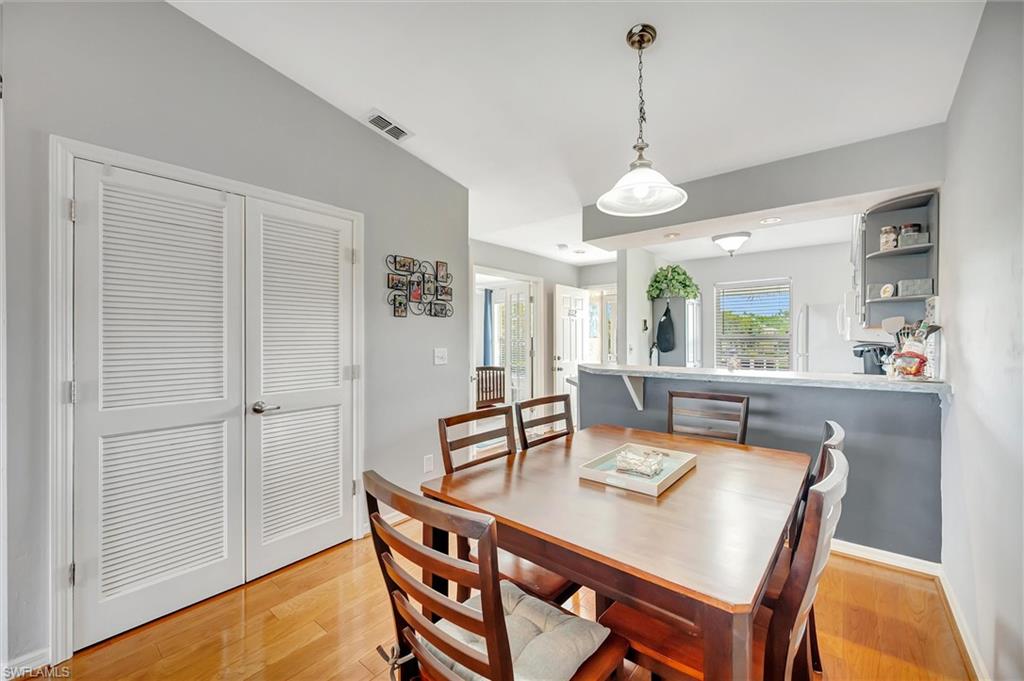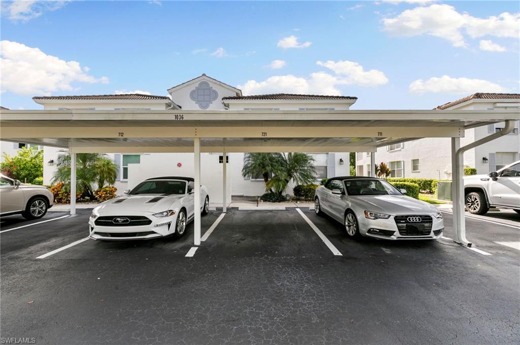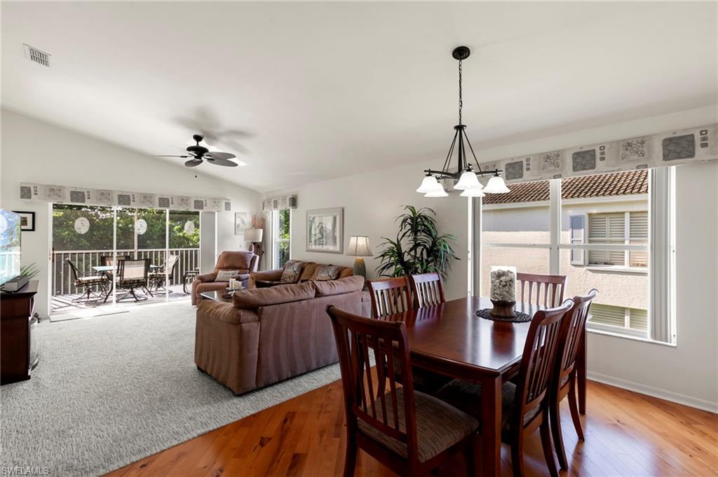 Brand New HVAC system installed!!!This beautiful 3-bedroom, 2-bathroom condominium is located on the second floor and offers breathtaking southern views of the Hammock Bay Golf Course. As an end unit, it is flooded with natural light. The spacious living area boasts vaulted ceilings, creating an open and airy feel. Elegant laminate wood flooring flows throughout with carpet in the bedrooms. Enjoy the screened lanai at the front and rear—ideal for sipping morning coffee, reading, or hosting guests amidst beautiful surroundings. With a washer/dryer conveniently located in the unit. Community pool located nearby for convenience and comfort. Covered parking provides protection for your vehicle, and the condo's prime location between Marco Island and Naples puts you near stunning beaches, upscale shopping, and fine dining options. This property offers the perfect blend of relaxation and luxury, making it more than just a home—it's a destination where every day feels like a vacation. Welcome to Fairways at Marco Shores!