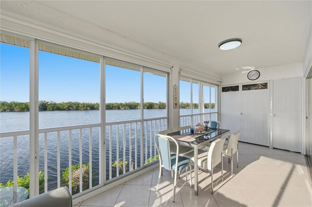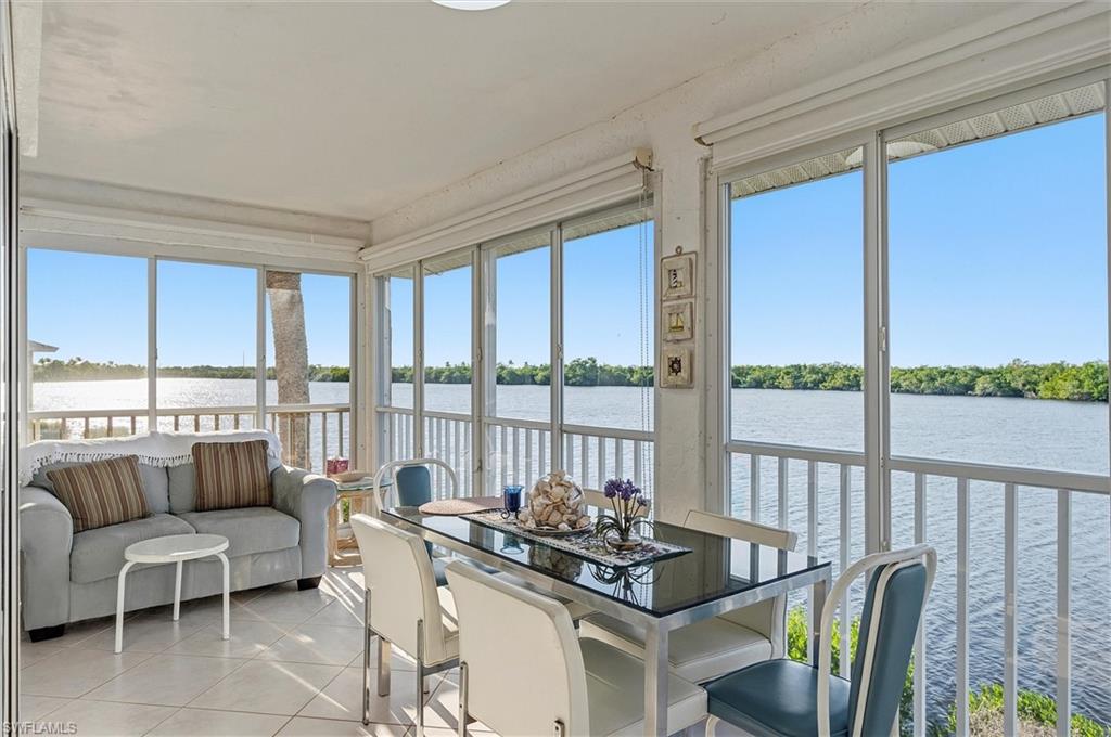 This beautifully first-floor end-unit condo offers two bedrooms, two full bathrooms, and an open, light-filled layout perfect for relaxed Florida living. As an end unit, it enjoys extra natural light and privacy, with peaceful water views just beyond the lanai—now enclosed to serve as an additional indoor space. This furnished downstairs condominium features a spacious living and dining area, a primary suite with an en-suite bath and generous closet space, and a versatile second bedroom ideal for guests or a home office. Upgrades include a 2017 roof and impact windows for peace of mind. Located in the desirable and pet-friendly Marco Shores community, residents enjoy access to a heated pool, tennis and pickleball courts, and nearby boating access. Ideally positioned between Naples and Marco Island, you're just minutes from world-class beaches, dining, golf, and shopping. Whether you're seeking a seasonal escape or a full-time residence, this charming condo delivers comfort, convenience, and a true slice of paradise.