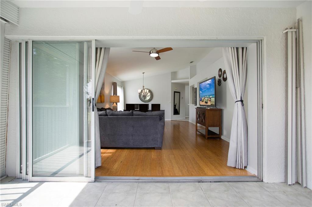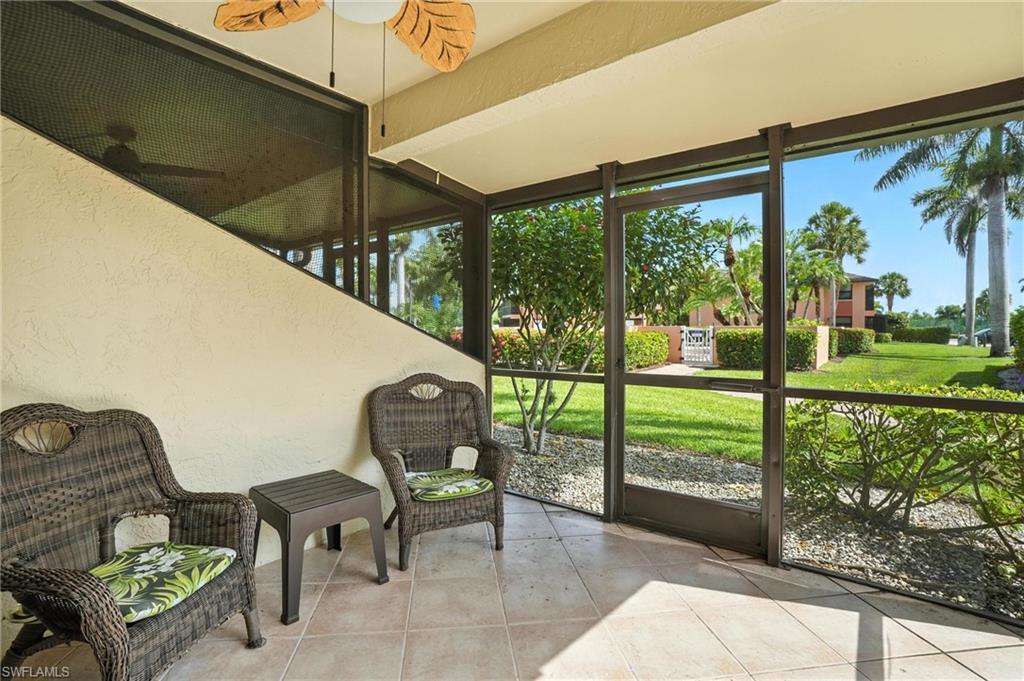 Splendid 3-bedroom, 2-bathroom condominium perched on the 2nd floor. This end unit bathes in natural light, offering captivating southern exposure views of the Hammock Bay Golf Course. UNIT IS FRESHLY PAINTED, FURNISHED, WATER HEATER IS NEW, AND AN APPLIANCE PACKAGE WILL BE INCLUDED AT CLOSING! Step into a spacious living area with vaulted ceilings, creating an open and airy ambiance. Laminate wood flooring graces the interior. Plant shelves enhance the charm. Entertaining is seamless with the wet bar, ensuring guests are refreshed. The well-appointed kitchen features modern appliances for delightful meal preparation. Enjoy two screened lanais – one at the front and another at the rear – offering perfect spaces to relish morning coffee, read a book, or entertain guests amid scenic beauty. Covered parking adds practicality, protecting your vehicle from the elements. Positioned between Marco Island and Naples, this condo boasts a prime location. Revel in proximity to stunning beaches, upscale shops, and fine dining restaurants, creating a lifestyle that blends relaxation with luxury. Don't miss the chance to make this your new home – it's more than a residence; it's a destination where every day feels like a vacation. Welcome to your slice of paradise in Southwest Florida.