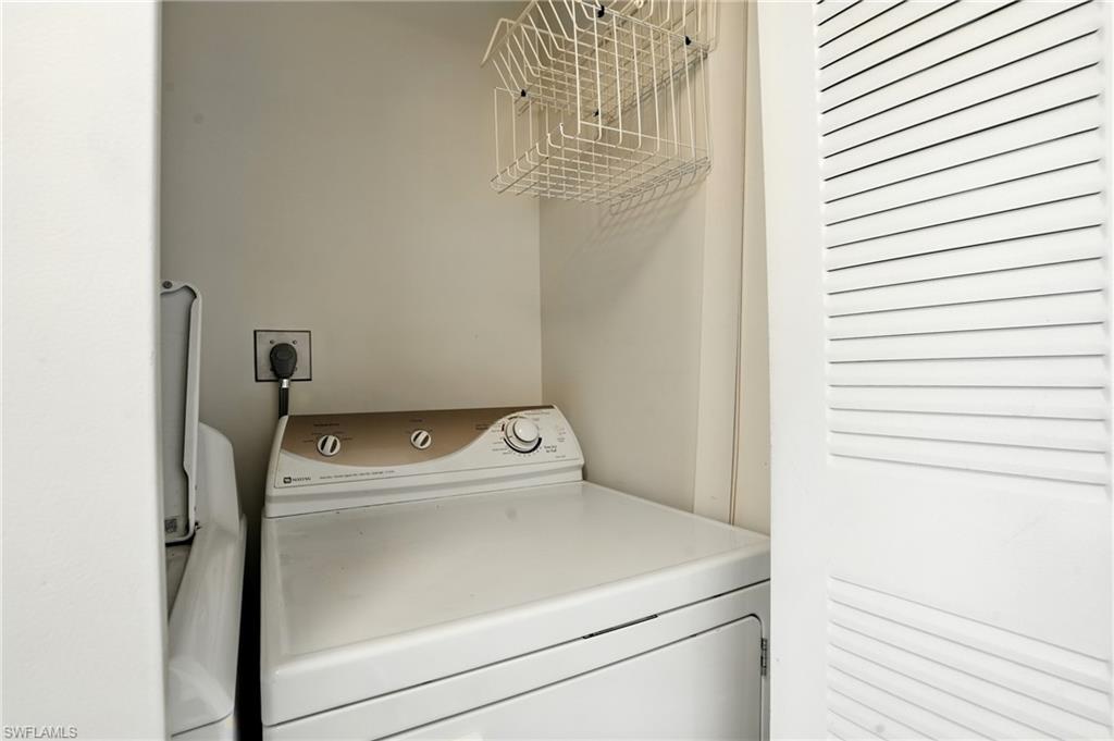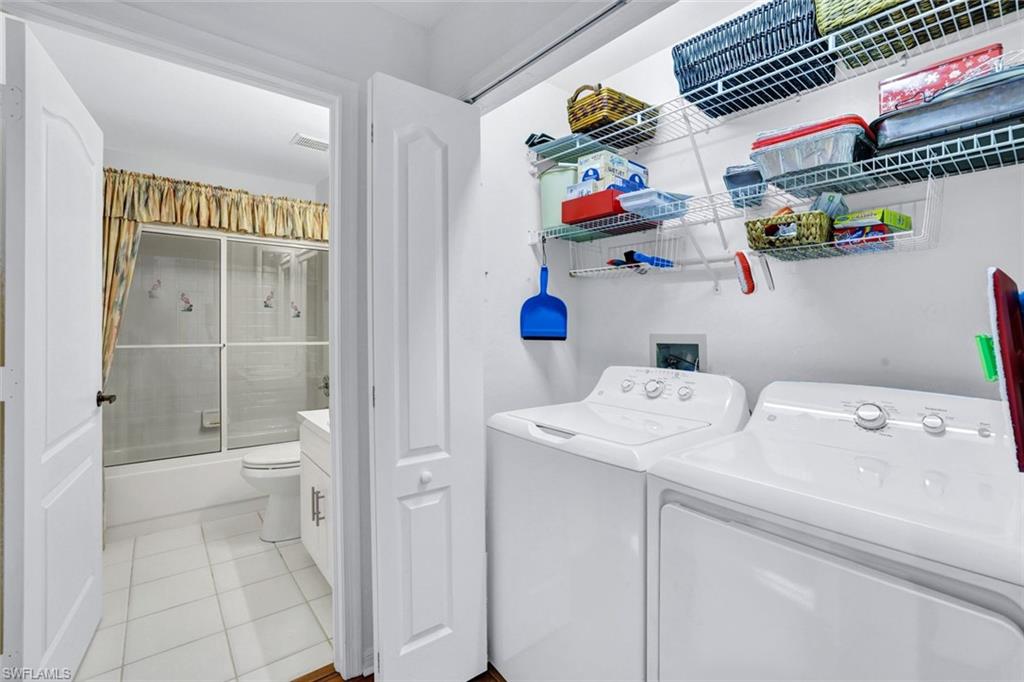 Fresh, Modern & Move-In Ready! Exciting update — the entire interior has been freshly repainted in bright, modern tones. This charming end-unit 2-bedroom, 2-bath condo offers comfort, style, and exceptional value just steps from the community pool. Enjoy low HOA fees, hurricane-impact windows, custom closets in both bedrooms, and a brand-new washer and dryer (2025). The condo includes two private lanais, a screened patio for relaxing or entertaining, and a paver patio accessible from the kitchen—perfect for outdoor dining. Both bathrooms feature updated vanities and lighting. Additional upgrades include a new hot water heater (2024) and upgraded patio pavers. Community amenities include tennis and pickleball courts. Ideally located between Marco Island and downtown Naples, this move-in-ready condo offers low monthly costs and unbeatable Southwest Florida convenience. Perfect for year-round living or a seasonal getaway!