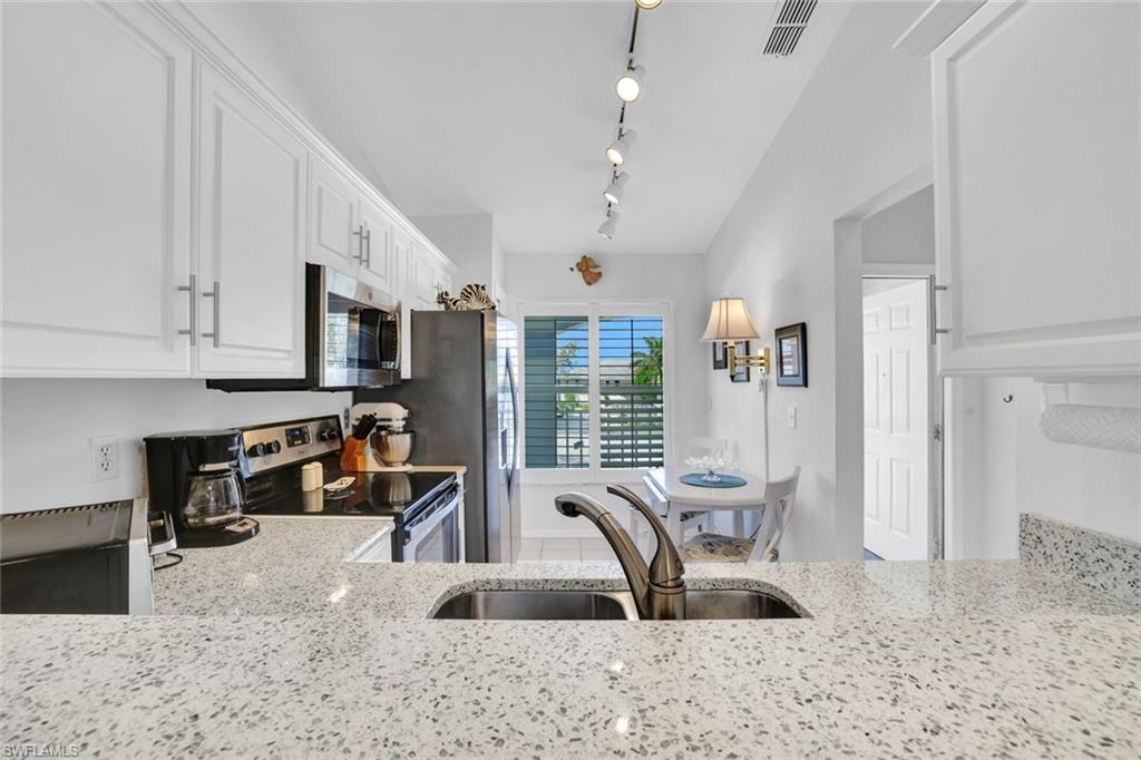 FULLY FURNISHED - SECOND-FLOOR CONDO WITH LAKE & PRESERVE VIEWS! This beautifully updated 2-bedroom, 2-bathroom condo in the desirable Marco Shores community combines comfort, privacy, and breathtaking scenery. With a split-bedroom floor plan and vaulted ceilings, the open-concept design feels bright and spacious, while tile flooring in the main living areas adds a modern touch. From the screened lanai, take in tranquil views of the lake and Rookery Preserve—perfect for enjoying sunsets and observing wildlife like blue herons, white egrets, and fish. The kitchen has been tastefully renovated with granite countertops, a stylish backsplash, and sleek white cabinetry, while both bathrooms feature elegant, updated finishes. Designed for effortless living, this property also offers access to fantastic community amenities including boat docks, two pools, and tennis courts. Ideally located, you’ll be just minutes to Marco Island’s beaches, shops, restaurants, and Executive Airport, or a short drive to downtown Naples for world-class dining and entertainment. Whether you’re seeking a peaceful retreat, a full-time residence, or a seasonal getaway, this condo delivers the perfect blend of serenity, convenience, and Florida lifestyle living. THIS PROPERTY QUALIFIES FOR A 1% LENDER INCENTIVE IF USING PREFERRED LENDER, INQUIRE FOR MORE DETAILS**