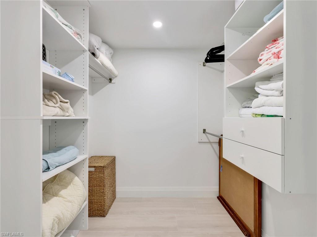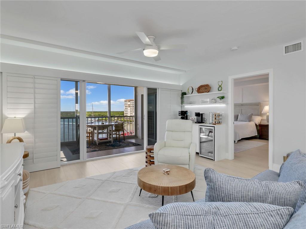 Sophisticated living and a fully renovated 6th floor END UNIT condo with direct gulf Access, no bridge. Experience the ultimate in luxury coastal living with this completely reimagined residence at the prestigious Marina Bay Club of Naples. Renovated in 2023, this designer-finished condo offers a rare opportunity to own what feels like a brand-new condo in one of North Naples’ most desirable waterfront and boating communities. Step inside to a bright, open-concept living space flooded with natural light, highlighted with plantation shutters and premium finishes throughout. The chef-inspired kitchen features elegant quartz countertops, newer stainless-steel appliances (2022), and sleek modern cabinetry, a perfect balance of form and function. Retreat to the tranquil primary suite with a custom-designed closet system and a spa-like bathroom. Every detail has been curated for comfort, style, and longevity. Enjoy uninterrupted sunset views, along with the convenience of a private under-building garage space, ample guest parking, and a private storage closet for your beach essentials. For the boating enthusiast: direct deep-water Gulf access via Wiggins Pass, Marina Bay Club is a hidden gem for boaters. Slips are available for lease or purchase placing you minutes from the open waters. Unmatched location: Ideally situated just off Vanderbilt Beach Road, you are minutes from sugary white sand beaches, Mercato’s upscale dining and shopping, Artis–Naples, and the best of North Naples. Marina Bay Club of Naples has front desk security and on-site personnel for peace of mind, is a GATED community that offers resort-style living with a sparkling heated pool and spa for relaxation, welcoming club room with regular community events, cozy fire pit perfect for family s’mores night, tennis courts with pickleball for active living, kayaking, paddle boarding. ***** THERE ARE TWO VIRTUAL TOUR LINKS YOU CAN CLICK ON FOR MORE INFORMATION. *****