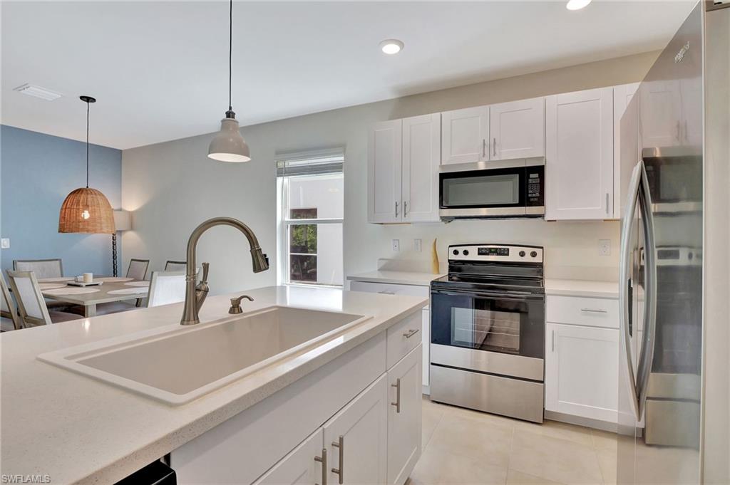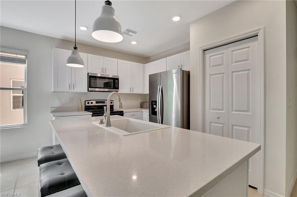 This remarkable townhome in the coveted North Naples area is an opportunity you won’t want to overlook! Designed with investors and end users in mind, it features low HOA fees, making it especially attractive for those looking to maximize their investment potential. Built less than three years ago, this property includes three bedrooms and 2.5 bathrooms, boasting nearly 1,600 square feet of open-concept living space that provides a modern and airy atmosphere. You'll appreciate the ease of having a private garage along with a double wide paver driveway, ensuring ample parking for you and your guests. The kitchen is a true highlight, equipped with elegant quartz countertops and a stylish sink and faucet—ideal for entertaining or simply enjoying daily family meals. The seamless flow from the kitchen into the great room enhances the communal feel of the space. Additionally, a conveniently located powder room near the entry adds practicality for both residents and visitors. Situated in the vibrant North Naples locale, this townhome places you mere steps away from the newly developed Founders Plaza, which offers a diverse selection of shopping, dining, and entertainment options. If that weren't enough, the stunning white sand beaches, as well as more shopping and dining venues, are just a short drive away, providing the perfect blend of relaxation and leisure activities. Meadowood, the newer gated community where this home is located, is strategically positioned off Collier Blvd and Immokalee Road, granting easy access to all that North Naples has to offer. With zoning for excellent schools and a wealth of additional amenities, this property stands out as an ideal place to establish your home or investment portfolio. Don't miss your chance to make this stunning townhome your own!