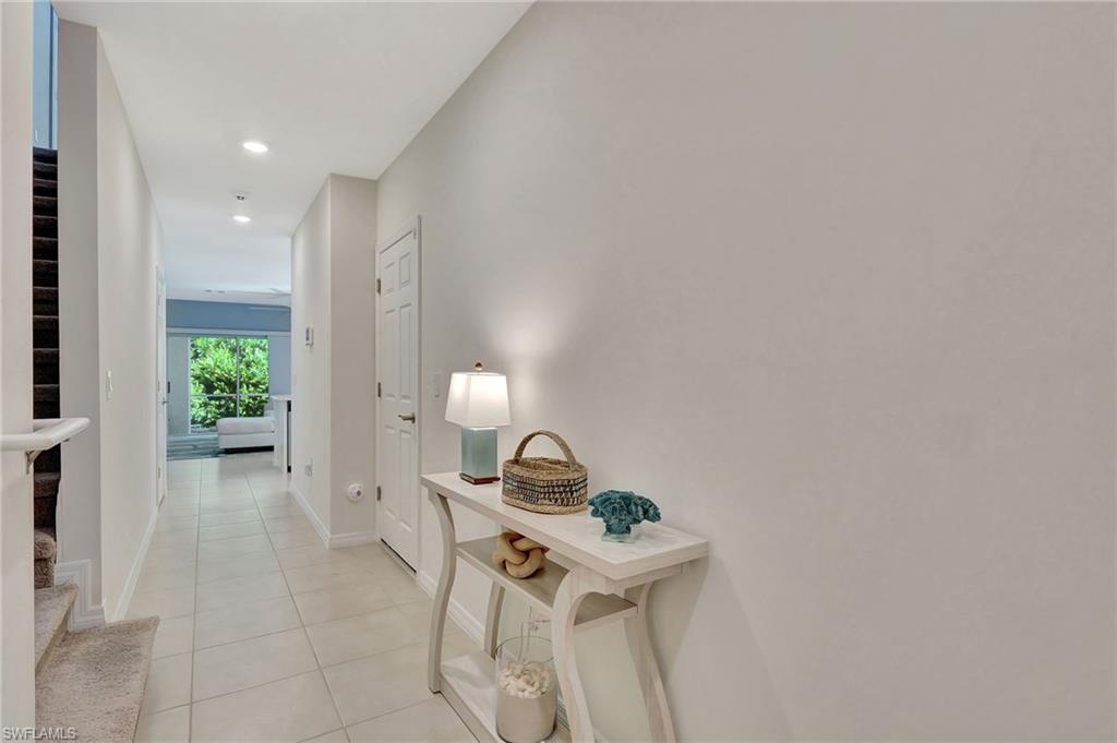 Step into style and comfort with this beautifully updated 3-bedroom, 2.5-bath townhome, tucked away in the quiet, family-friendly community of Meadowood in North Naples. From the moment you walk in, you’ll notice the brand new luxury vinyl plank flooring and fresh interior paint that give the home a bright, modern feel.The open-concept great room and kitchen are perfect for everyday living and entertaining, featuring upgraded Samsung stainless steel appliances and plenty of space to gather. Step outside to your covered, screened lanai—the ideal spot to sip your morning coffee or unwind after a long day. Upstairs, the primary suite is your personal retreat with a spacious walk-in closet and a stunning floor-to-ceiling tiled shower in the ensuite bath. Two additional bedrooms share a beautifully full bath. Thoughtful extras include an upstairs laundry, storage under the stairs and a one-car garage. Meadowood is a newer gated community zoned for top-rated schools and just minutes from the new Founders Square, shopping, dining, and entertainment. Residents enjoy a long list of amenities: a resort-style pool with swim lanes, fitness center, basketball court, tot lot, and a clubhouse with social room. This townhome is truly move-in ready—don’t miss the opportunity to make it yours!