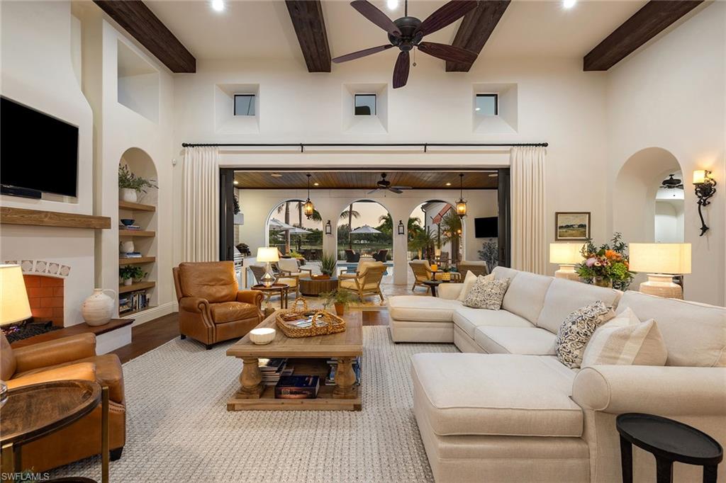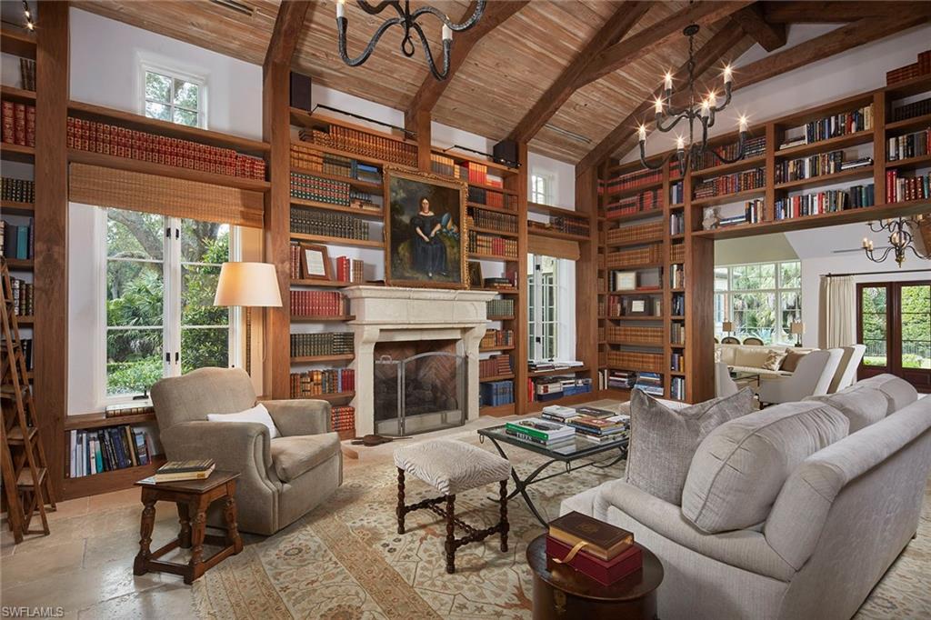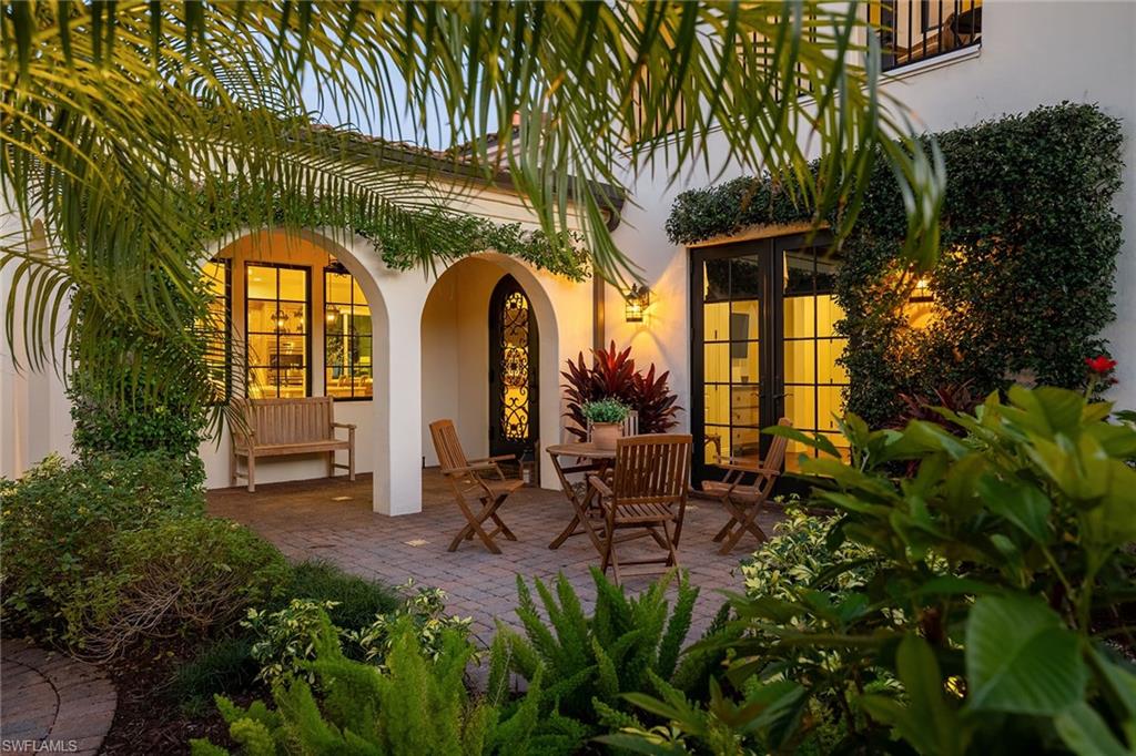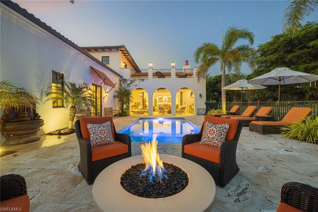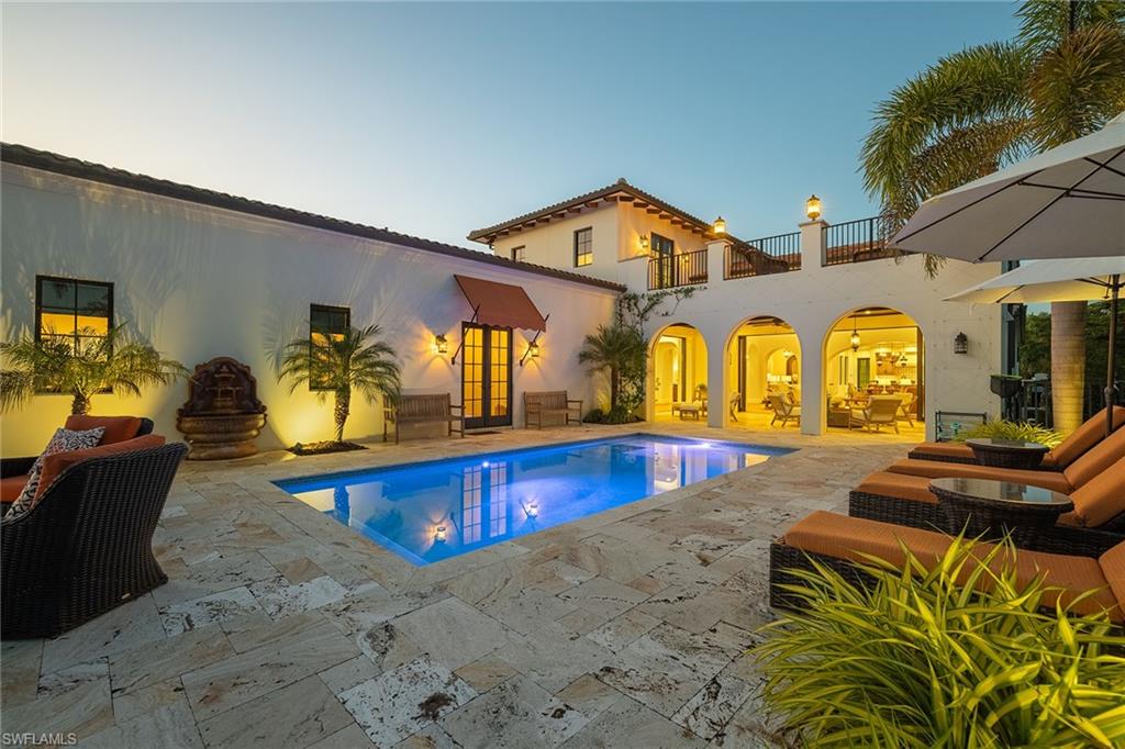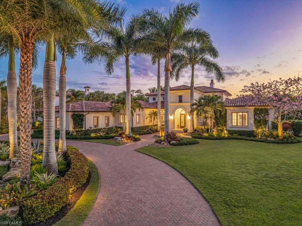 This authentic custom home, hand-crafted by BCB Homes in 2009, is on an extremely private .74-acre homesite within the prestigious Mediterra community. Offering over 6,600 square feet of luxurious living space, the residence features four bedrooms, four full baths, and one-half bath designed for elegance and comfort. The open-concept floor plan is ideal for entertaining family and friends, with a chef’s kitchen boasting top-of-the-line Viking and Sub-Zero appliances, a spacious center island, a well-appointed butler’s pantry ideal for catering and abundant custom cabinetry. The family room serves as the heart of the home and flows seamlessly into an impressive library adorned with vaulted wood-beam ceilings and a stone gas fireplace. The private owner’s suite is a serene retreat, highlighted by hand-scraped wood floors, an adjacent wood-paneled study, a white marble bath and dual custom closets. Outdoor living is equally impressive, featuring a large, covered lanai with a dining area, comfortable sitting space and a fully equipped outdoor kitchen. The outdoor oasis continues with a heated pool, raised spa and gas fire pit, ideal for year-round enjoyment. Additional features include a Lutron lighting system, a climate-controlled three-car garage, Andersen impact windows and doors, and a custom temperature-controlled wine cellar. Residents of Mediterra enjoy an unmatched lifestyle with access to two 18-hole Tom Fazio–designed golf courses, a full-service wellness and fitness center, and a newly refurbished Beach Club offering an elevated pool and Gulf-front dining on the white sands of Hickory Island. A world of luxury, privacy and craftsmanship awaits within this exquisite Mediterra estate.