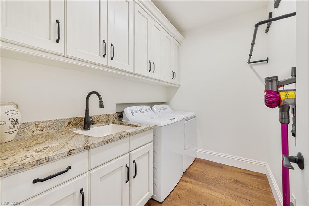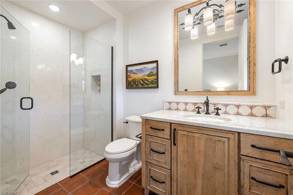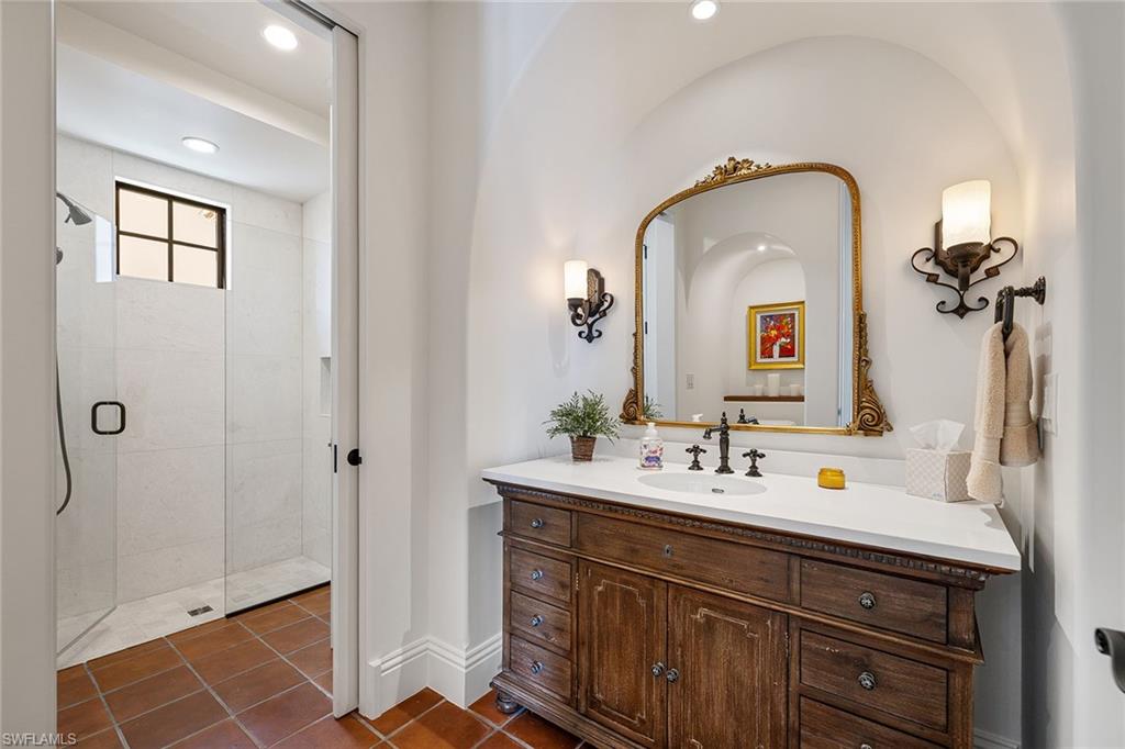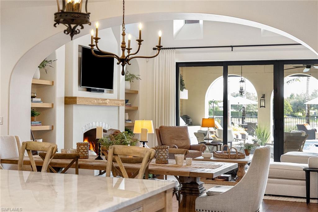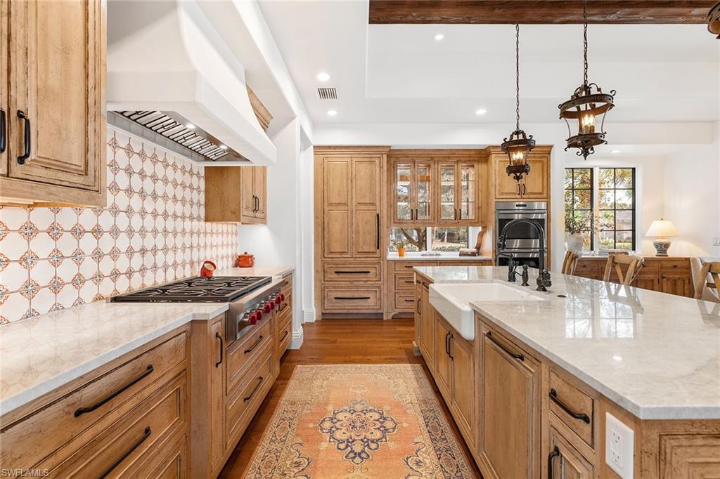 NO WAITING-GOLF CLUB MEMBERSHIP available immediately! Absolutely stunning home nestled on almost an acre on Tee 15 South! Enter the grand front door into the Grande Foyer anchored with a fireplace & curving stairs to the 2nd floor and with floor to ceiling windows/sliders and extending to beautiful lanai and the good morning sunrises beyond. New flooring throughout first floor, upgraded to LED lighting throughout, and upgraded light fixtures inside & out. This home is ideally designed for entertaining, from the formal & informal living spaces, the welcoming wet bar complete with wine refrigerators and gracious seating. The artisan designed kitchen is a chef delight with top tier appliances, warming tray, trash compactor, range hood, double oven/cook top, single wall oven, garbage disposals in both kitchen sinks, stainless steel sinks, touch facet on main kitchen sink indoor icemaker, new quartz countertop offering "miles" of prep space, a custom island, and 3 self-cleaning ovens. The Butler's Pantry is well equipped with additional dishwasher & sink, beverage fridges, 2 additional icemakers, loads of storage and additional countertop spaces. 2 reverse osmosis in kitchen & outdoor kitchen. The dining room has beautiful natural light. There is a sink and refrigerator in the upstairs entertainment center. Each of the generous bedrooms are en-suite and the primary suite is an oasis of relaxation with a seating area, spacious walk-in closets and leading to a spa inspired bath complete with oversized soaking tub, masterful shower & dual vanities. The lanai is opulent, with a soaring two story screen, cozy covered entertaining space, full outdoor kitchen, 2 TV’s on lanai, outdoor speakers for surround sound, new outdoor fans, all new grill parts for both fireplaces, all overlooking a sparkling pool with integrated spa, soft & hard scaping including a Koi Pond with waterfall! Updates include 4 A/Cs new in past 5 years, new roof in 2022, new pool heater & pump, 75 gallon hot water heater, whole house Lutron lighting system, whole house Creston control system, 30 zone whole house water shutoff, whole house water filter & softener, termite control around perimeter, indoor/outdoor security cameras, outdoor security lighting, added landscape & landscape lighting, storm screens, garage door spring replaced, garage cabinets, outdoor sink in garage, finished floor & lighting in garage and it is air conditioned! Mediterra offers world-class amenities, including two Tom Fazio-designed 18-hole championship golf courses, a Gulf-front beach club & restaurant, pickleball, tennis & bocce courts, an updated clubhouse, a soon-to-be expanded sports & lifestyle center and more.