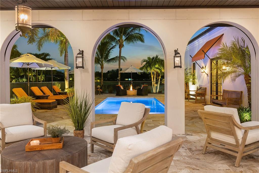 Nestled on a private homesite over 3/4 of an acre, this exceptional residence offers ultimate privacy and peace of mind, enhanced by a roof completed in 2018. Inside, state-of-the-art technology — including three touch panels, an iPad station, and 16 cameras — ensures your comfort and security. Enjoy the convenience of a private movie experience in your home theater, or convert this space into a FIFTH bedroom for extra guests. The stunning foyer is bathed in natural light through expansive glass walls, leading you into an open, airy living space. Zero-corner sliding doors offer seamless transitions between indoor and outdoor living, inviting you to the pool and outdoor entertaining area. The spacious kitchen, featuring a wet bar with an additional cooktop and wine cooler, is perfect for both casual dining and gourmet cooking. For the ultimate convenience, the three-car garage includes GarageTek flooring and an auto lift for a fourth car. With three generous guest suites, a home office with built-in desks, and a luxurious primary suite complete with a morning kitchen and ample closet space, this home is designed for those who appreciate both comfort and elegance. Imagine stepping onto the soft sands of the Gulf, with the tranquil waves lapping at your feet and the sky ablaze with a golden sunset. This is everyday life at Mediterra’s fully renovated, private Beach Club — reopening early summer! From the moment you arrive, your experience is effortless: valet parking, reserved lounge chairs, and umbrellas awaiting you, or set up on request for the ultimate beachside comfort. With 10,000 square feet of space, the Beach Club offers a variety of luxurious amenities, including indoor and alfresco dining, a full bar, a sparkling swimming pool, and changing rooms with lockers for your convenience. As the sun begins to set, indulge in a dinner while the vibrant colors of the horizon provide the perfect backdrop to your evening. Located within the exclusive, award-winning community of Mediterra, you’ll have access to a host of world-class amenities, including two Tom Fazio-designed golf courses offering unlimited afternoon play, pickleball, tennis, bocce, and so much more. Whether you’re enjoying a relaxing day at the Beach Club, playing a round of golf, or unwinding at home, nothing compares to the lifestyle Mediterra offers. Come, live the dream.