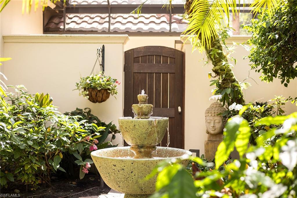 There’s a certain kind of home that does not shout, it simply welcomes. From the moment you enter the courtyard framed by flowering vines, a private entrance gate and a tranquil fountain, this Santa Barbara–inspired residence invites you to exhale. It lives like a private sanctuary, effortless, graceful and quietly luxurious. Inside, the design evokes California refinement. wide-plank Silver Oak Vintage Barrel wood floors anchor the interiors, meeting distressed pecan cabinetry. Curated original artwork and natural textures add depth and dimension, while Spanish tiles appear tastefully in the kitchen, fireplace surround, staircase risers and baths. Professionally styled by Olivewood Interiors, with a palette that is relaxed and elevated. Plumbing fixtures throughout are appointed in aged, oiled bronze offering a timeless appeal. The kitchen is equal parts elegant and functional, centered by a quartzite island while custom Omega cabinetry, top-tier appliances, gas cooking and a walk-in pantry with open shelving, generous counters and integrated drawers create a seamless culinary space. Beamed ceilings extend through the kitchen and into the great room, adding warmth and architectural continuity. The adjacent dining room is proportioned for intimate and formal gatherings. In the great room, the fireplace anchors the space with understated sophistication. Adjacent, the bar includes full-height wine storage behind an iron gate and a built-in wine refrigerator, ideal for entertaining or everyday ritual. Take advantage of the office area featuring oversized windows and seamless connectivity to outdoor living areas. With direct pool access, the primary suite offers tranquil lake views and spa-style finishes, creating a restful and refined retreat. Three guest suites offer ample comfort, each with thoughtful separation and en-suite accommodations. Upstairs, the versatile retreat opens to a balcony with long lake views, an ideal setting for use as a lounge or guest space. Blurring the line between indoor comfort and outdoor serenity, the saltwater pool is enveloped by the water vistas. Travertine tile from Italy was carefully selected for the lanai and pool deck, offering texture and elegance underfoot. The covered outdoor living space features a tongue-and-groove ceiling and a fully equipped summer kitchen and retractable screens for year-round comfort. The relaxing pool area is enhanced by the sounds of a Spanish fountain and the ambient glow of a gas firepit, creating a tranquil setting for unhurried afternoons and sunset gatherings. Impact-rated windows and doors, remote-controlled screens and a whole-home Sonos system provide modern convenience as well as water filtration and a power generator. In the award-winning community of Mediterra, with 36 holes of Tom Fazio golf, Har-Tru tennis, pickleball, bocce and a private beach club, along with a new Sports & Lifestyle Center coming soon to enhance wellness and connection!