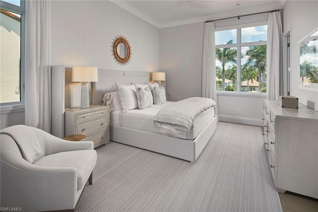 NO WAITING! GOLF MEMBERSHIP SLOT AVAILABLE IMMEDIATELY! - Located in the prestigious golf & country club community of Mediterra in Naples, Florida - This residence boasts expansive guest accommodations, including a convertible bonus family room with developer-provided plans to transform it into a full fourth bedroom! A true architectural masterpiece situated on an extraordinary 0.78-acre homesite—one of the largest and most sought-after parcels in all of Mediterra. Perfectly positioned with breathtaking views of the lake and the iconic 18th fairways of both the North and South championship courses, this estate lives like a private resort with unmatched scale, serenity, and sophistication. French oak flooring, soaring custom ceilings, premium millwork, and seamless indoor/outdoor transitions define over 5,100 sq ft of refined living space. The chef’s kitchen features Sub-Zero refrigeration, Wolf appliances, refrigerated drawers, a built-in hutch and bar display, and an oversized island, while a separate full-size prep kitchen offers dual Sub-Zero refrigerators, wine refrigeration, a coffee station, sink, abundant dry storage, and a dedicated workspace for discreet catering. Guest spaces are abundant, including an attached yet private casita wing that further elevates the estate, offering its own entry porch, convertible family room, two spacious guest bedroom suites (one with an attached bonus space ideal for a nursery, office, or playroom), plus a private lakeside lanai & garden courtyard. Resort-level outdoor living includes multiple living & lounging spaces, a heated saltwater pool with a sun shelf, custom water features, custom LED color lighting, electric roll-down screens, outdoor dining pavilion, premium Lynx gas grill, refrigerated drawers, prep sink, gas fireplace, and year-round sunsets thanks to the coveted southwest exposure. A homesite of this magnitude and grandeur is truly a rare gem in the community! Mediterra is a prestigious luxury golf & country club community featuring Two championship Tom-Fazio golf courses for avid golfers, multiple tennis courts, pickle-ball & bocce, fitness center, pristine bike & jogging trails, and luxurious dining at the private country club restaurant. The Mediterra Beach Club offers an escape to a 10,000 sq. ft two-story private oceanfront paradise on the Gulf of Mexico. Featuring a restaurant & bar that serves members via indoor & outdoor dining, this private facility boasts a heated swimming pool, a sundeck, and cabana beach service for chairs, umbrellas & refreshments.