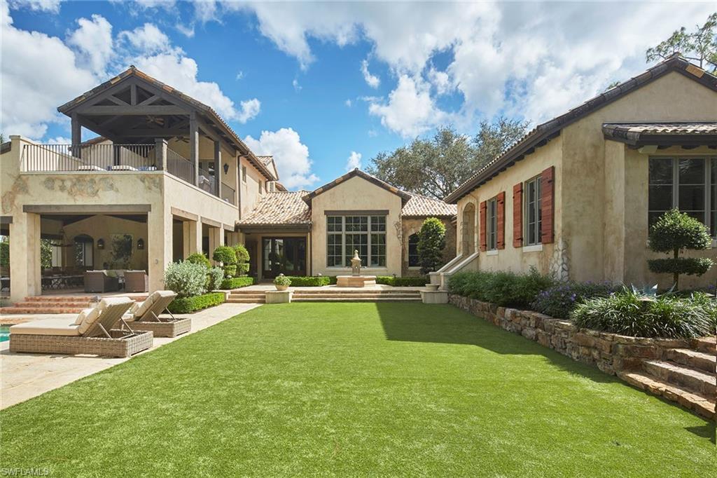 Welcome to 15118 Frescott Way in Mediterra, the ultra exclusive gated golf community renowned for its timeless and elegant Santa Barbara-inspired architecture. This 4 Bedroom + Den, 5.5 Bath home is truly an entertainer's dream. Enter from the expansive motor court through dramatic wrought iron gates into a tranquil and elegant courtyard with fountain and mature plantings. Formal living room with soaring ceilings and gas fireplace overlooks the private outdoor living area. Formal dining room is ideal for entertaining and family dinners. The bright and open informal living area boasts a true chef's eat-in kitchen replete with wood-paneled Subzero and Asko appliances, Wolf 6-burner gas range, butler’s pantry, wet bar and even a wine cellar. Gorgeous informal living and dining area with walls of glass opens out to the large covered and screened-in lanai overlooking the 15th hole with a pool and spa with waterfalls, multiple seating areas, outdoor kitchen/bar and gas fireplace seamlessly blending indoor/outdoor living. Private home office with handsome custom built-ins and convenient powder room. The Master Suite is a true sanctuary. Spacious bedroom includes a sitting area with gas fireplace opens out to lanai and pool. The en-suite bathroom is a true oasis reminiscent of an elegant hotel bath replete with separate vanities, separate water closet, bidet, oversized walk-in shower with dual shower heads, Jacuzzi tub and a steam room. Dual walk-in closets with custom built-ins. Upstairs features a spacious club room with custom built-ins with an elegant bar is the ideal media room complete with wall of glass opening out to a terrace. Additional spacious guest suite completes this floor. This home is equipped with a central vacuum system, multiple A/C zones, and a tankless hot water heater. 3-car attached garage with epoxy floor plus great storage. This renowned and desirable community with 1700 acres of pristine and mature landscaping, preserve, winding streets and several optional club membership packages including the gorgeously renovated and newly opened beach club on nearby Bonita beach. Mediterra is ideally located in North Naples, and just a short drive to the beach as well as the prominent dining & shopping experiences of Mercato, Waterside Shops and 5th Avenue. Truly exceptional. This home is available for rent as well.