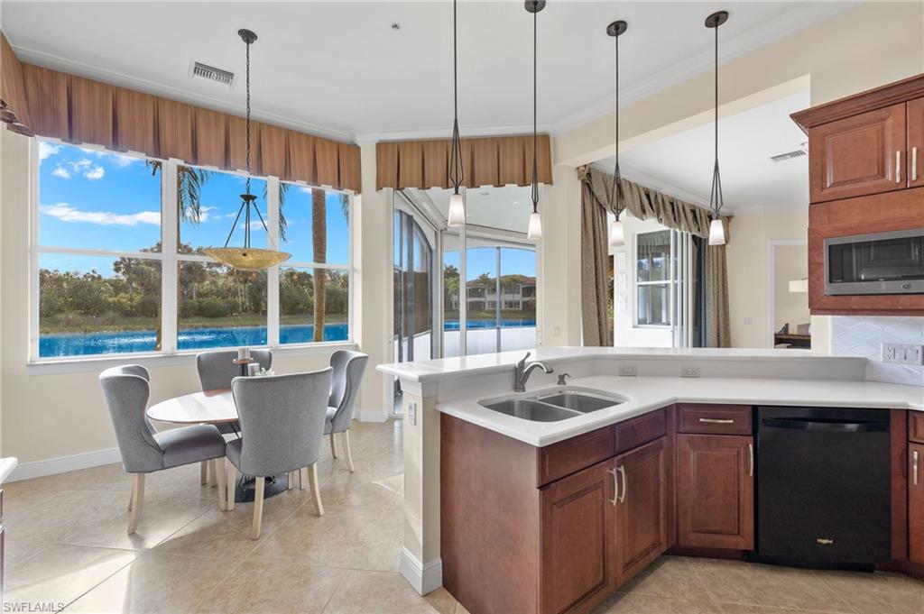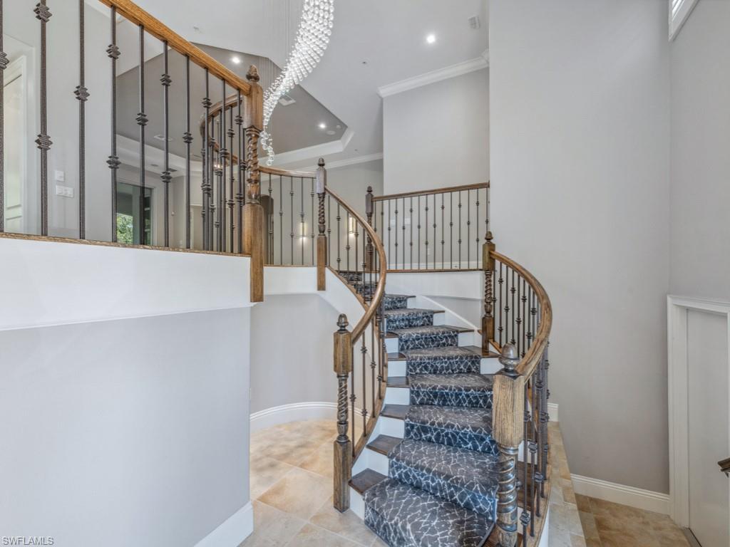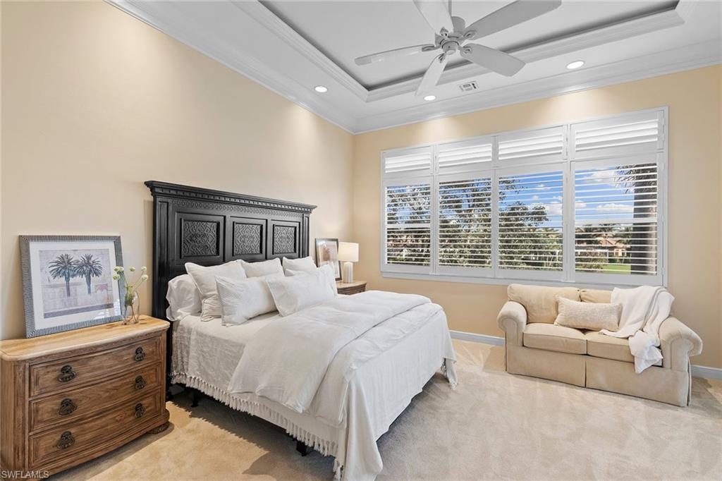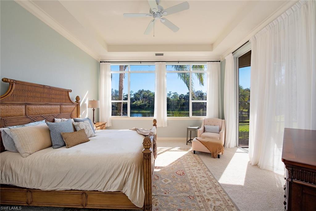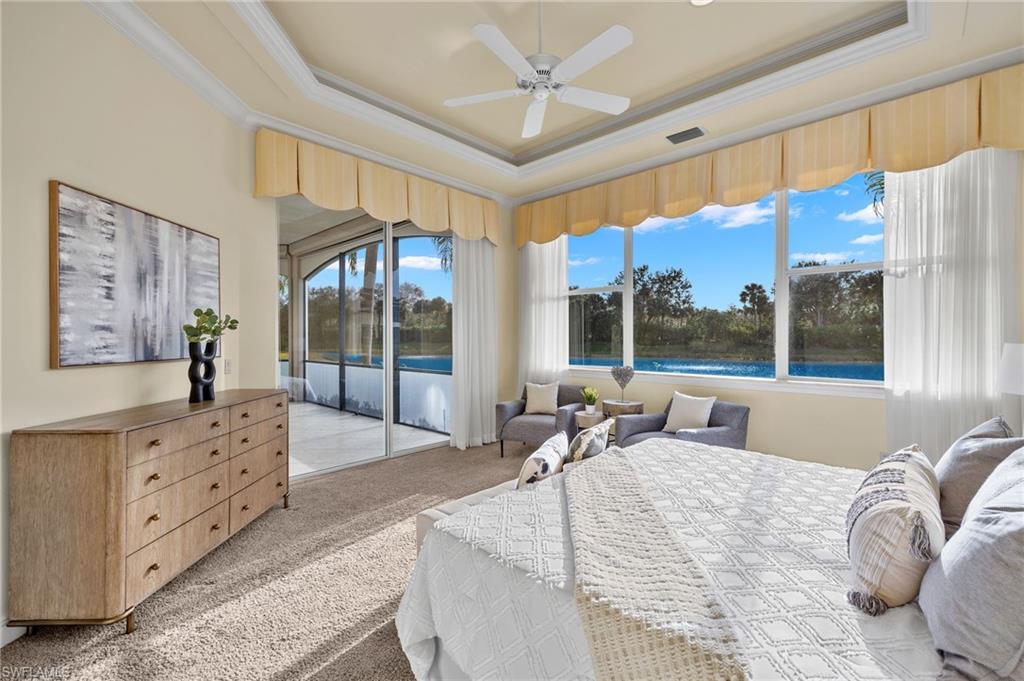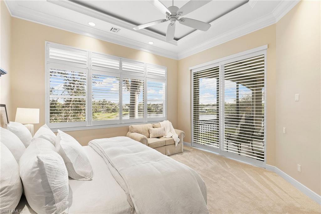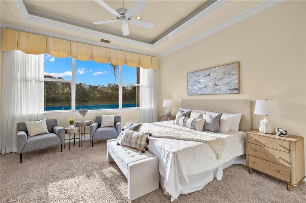 Peace of mind comes with a new elevator, whole-house generator, and electric storm shutters! Step into this captivating waterfront retreat, where timeless elegance meets modern convenience. The open floor plan welcomes you into a light-filled great room, perfectly designed for both relaxation and entertaining, complete with an elevator that ensures effortless access. From the moment you enter, you'll be enchanted by the stunning long water views that create a serene backdrop to everyday living. Renovated in 2022, the home boasts a chef-inspired kitchen with new custom cabinetry, premium appliances, and natural gas cooking. A thoughtfully designed dry bar with an undercounter wine cooler enhances the entertaining experience, seamlessly connecting the kitchen and great room. Elegant details abound, including tray ceilings and crown molding. The primary suite features a two expansive custom walk-in closets, new cabinetry and a frameless shower door showcasing refined craftsmanship throughout. The expansive primary suite offers a private sanctuary with two oversized walk-in closets, a luxurious frameless glass shower, and a spacious bedroom with a cozy sitting area. Unwind on the screened lanai, where tranquil water views create a perfect setting for morning coffee or evening gatherings. Experience waterfront living at its finest—this home is more than a residence; it’s a lifestyle. Located in the award-winning community of Mediterra featuring two Tom Fazio championship golf courses, gel pickleball courts, Har-Tru tennis, state-of-the-art fitness and a private beach club. Enjoy convenience of your toes in the sand and golden sunsets at Mediterra's fully renovated private beach club along the Gulf. Imagine arriving and having your car valet parked, and lounge chairs and umbrellas waiting for your arrival or set up upon request. With 10,000 square feet of space, the upper level offers indoor and alfresco dining, a full bar, swimming pool along with lockers and dressing areas for changing. Spend the day and enjoy dinner while watching the sunset in the distance. Discover Mediterra where you can have it all!