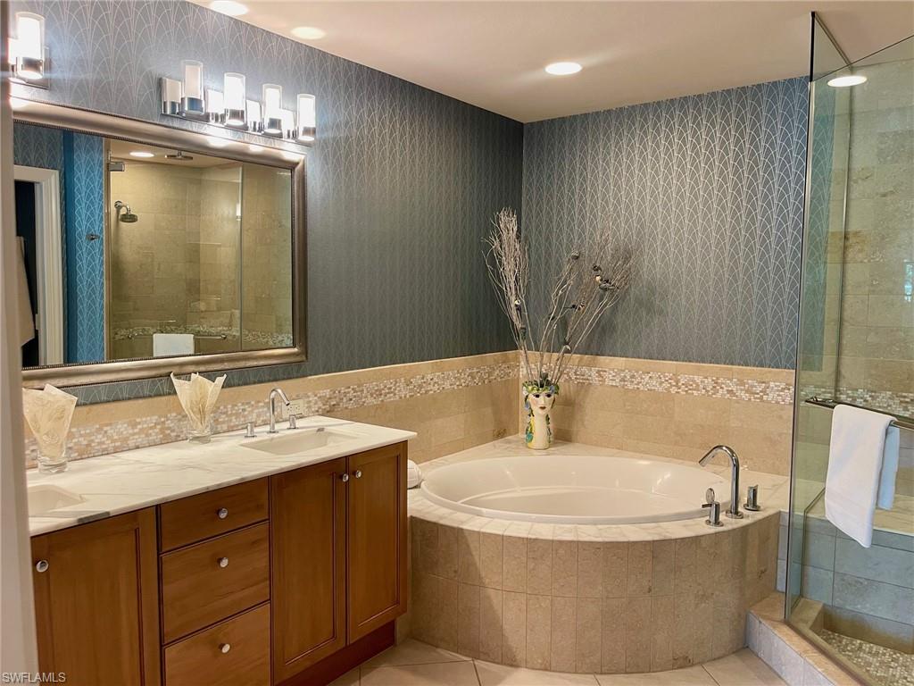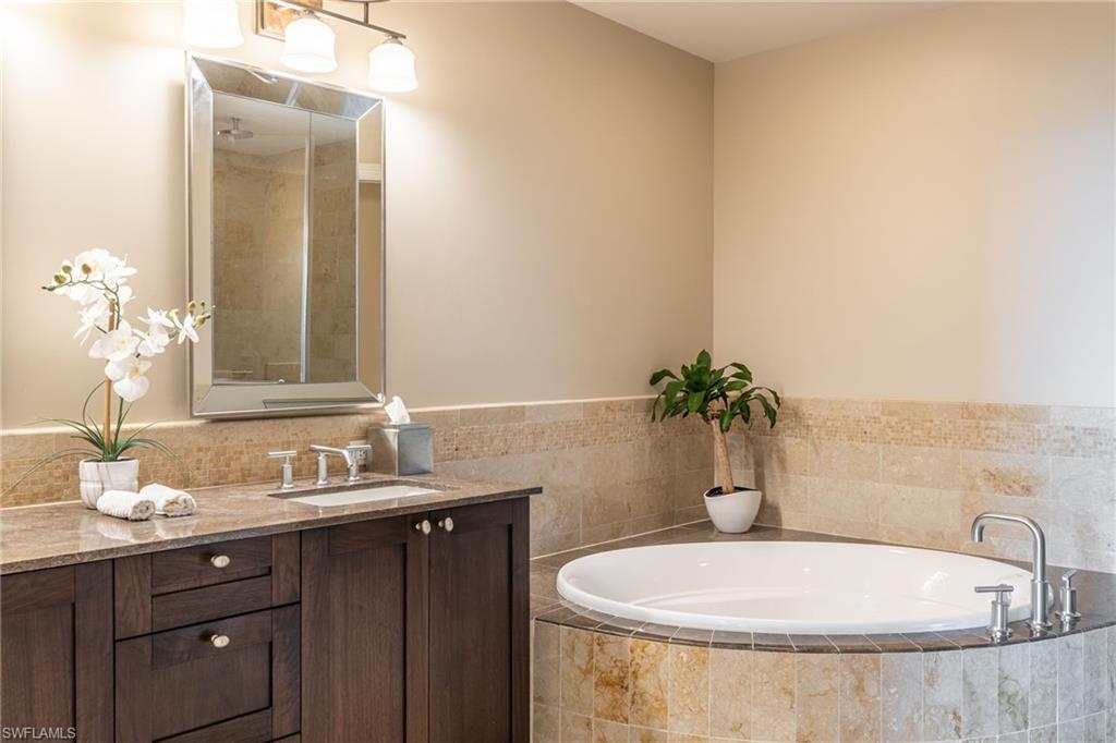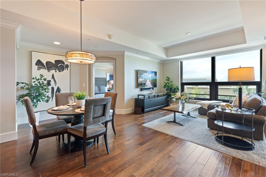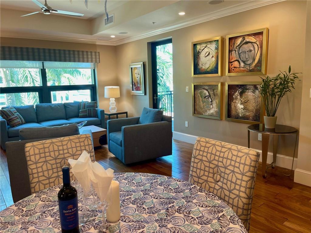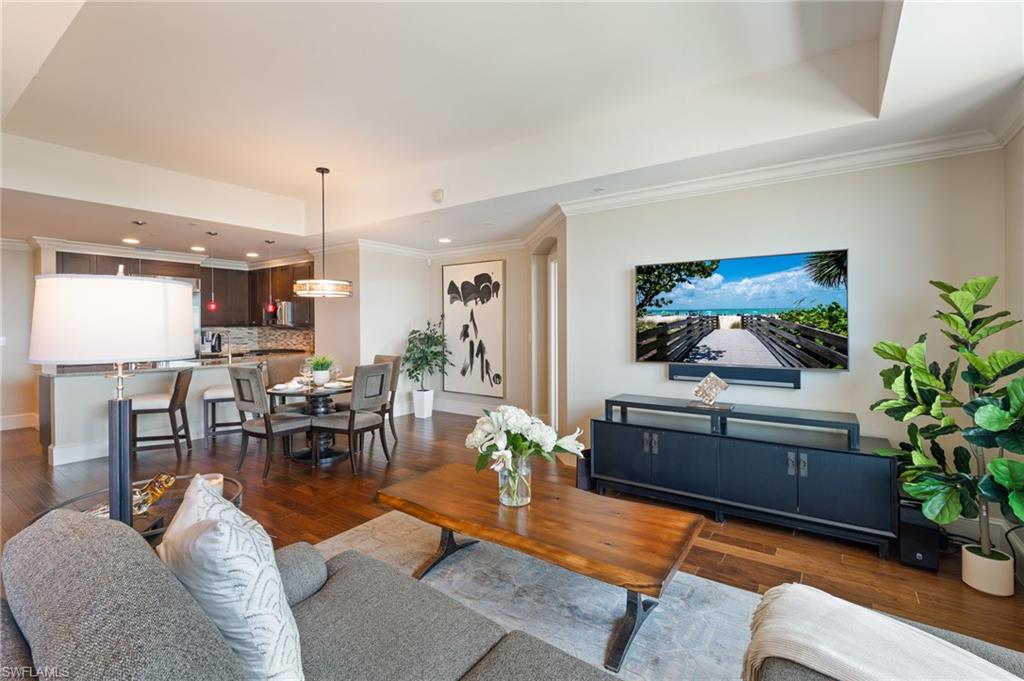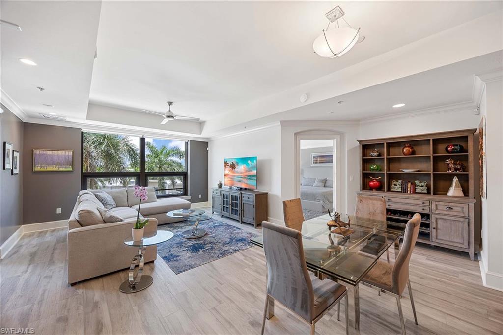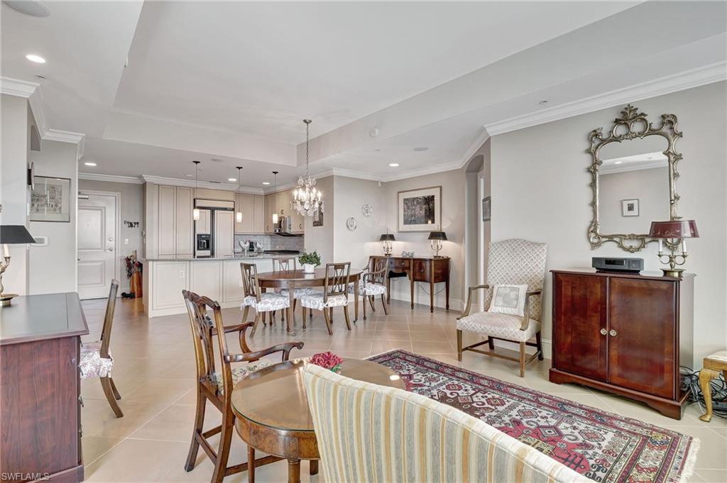 Luxury, comfort and convenience converge in one of Naples sought-after urban destinations. All the updates have been completed there is noting to do but move right in. This impeccably appointed fully furnished residence is the epitome of upscale living, boasting designer-curated interiors and sophisticated upgrades throughout. Go inside to discover beautiful new furnishings, updated flooring and custom lighting that set the tone for effortless elegance. The home features two expansive en-suite bedrooms, with custom-built cabinetry, and generous walk-in closets—an oasis of comfort and tranquility. Both en-suite baths are masterfully finished with oversized glass showers, luxurious soaking tub, and premium fixtures, offering spa-inspired relaxation right at home. The gourmet kitchen has been updated with rich cabinetry, tiled backsplash, stainless steel appliances, gorgeous quartz countertops, gas cooktop and a pantry. A breakfast bar with seating invites casual dining and conversation. The sun-drenched living and dining areas flow seamlessly onto a private balcony — ideal for entertaining or enjoying stellar sunset views over the Central Piazza of Mercato. Additional highlights include new HVAC and water heater, two assigned covered garage parking spaces and climate-controlled storage unit on your same floor. Residents enjoy exclusive access to a private rooftop retreat featuring a resort-style 52-foot sparkling swimming pool and spa, a state-of-the-art fitness center, renovated clubhouse with catering kitchen, an indoor and outdoor bar area, Viking gas grills and a firepit seating area making this the ultimate place for entertaining guests. This is a pet-friendly building that has a rooftop fenced-in dog park. All this, just close to Naples finest dining, shopping, entertainment, Whole Foods and pristine Gulf beaches. This is more than a home, it’s a lifestyle of elevated urban sophistication.