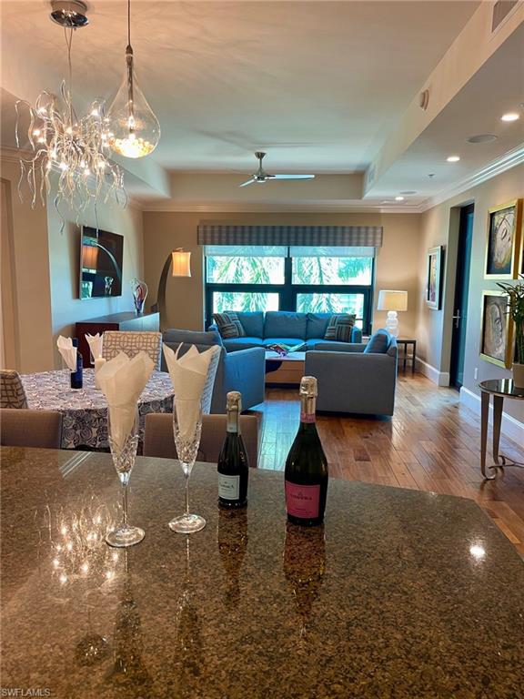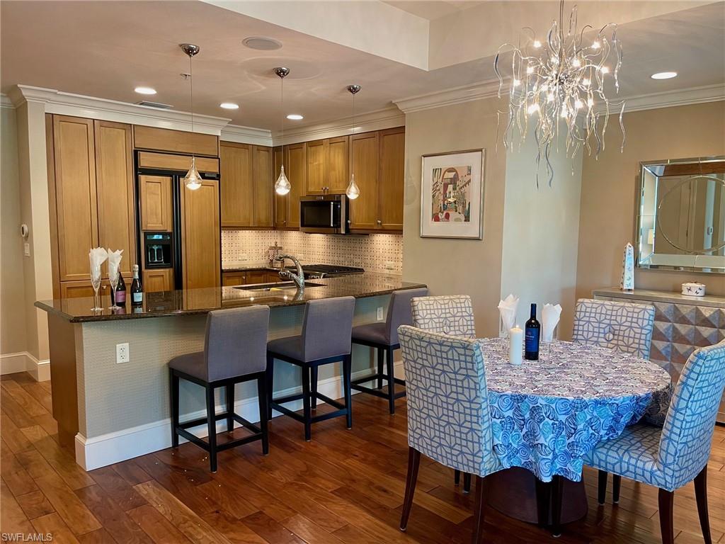 Experience a truly rare opportunity to own a slice of paradise in the heart of Mercato, one of Naples’ most vibrant and sought-after destinations. Perfectly positioned just minutes from the Ritz-Carlton and Naples’ world-famous white sandy beaches, this community offers an unmatched blend of luxury, convenience, and endless entertainment. Step outside your door and immerse yourself in everything Mercato has to offer—trendy restaurants, lively nightlife with dancing, an upscale cinema, and a curated collection of designer boutiques, fine art galleries, and jewelry stores. Everyday convenience is also at your fingertips with Whole Foods Market just around the corner, making it easy to go from gourmet appetizers to decadent desserts without ever leaving the neighborhood. This stylish 2-bedroom, 2-bath condominium is located on the 4th floor and features a private covered parking space with secure building access. Inside, the open-concept design creates an inviting atmosphere, highlighted by a chef’s kitchen with top-of-the-line stainless steel appliances, granite countertops, and elegant finishes. Whether entertaining friends or enjoying a quiet evening at home, the seamless flow between kitchen, dining, and living areas makes this residence as functional as it is beautiful. Mercato residents also enjoy exclusive amenities designed for relaxation and connection, including a resort-style pool and spa, an outdoor grilling and dining area, a modern fitness center overlooking the pool, and a clubhouse for gathering with neighbors who share this exceptional lifestyle. Don’t miss your chance to call Mercato home—where luxury living, convenience, and Naples charm come together in one extraordinary address.