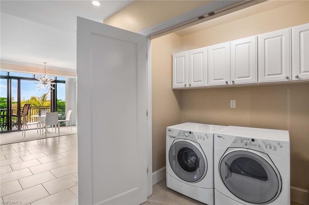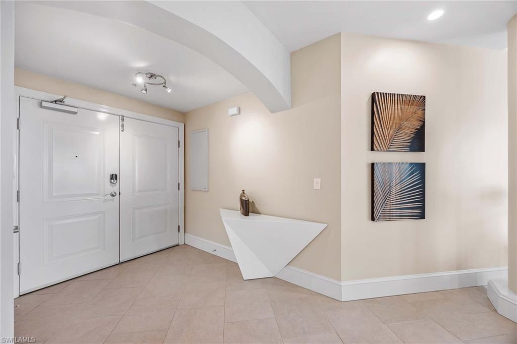 Living at its Finest: Nestled in the quietest corner of Mercato, this condo with luxury finishes is a must see! Step inside to discover a home drenched in natural light, featuring new top-of-the-line polished porcelain flooring and crystal lighting throughout. All new custom closets provide ample storage and a large pantry, enhancing the spacious layout. The chef's dream kitchen is equipped with granite countertops, a stylish stone accent backsplash, top-of-the-line appliances, and a well-equipped gas stove. Just off the living area, your private balcony invites you to savor breathtaking Naples sunsets and the stunning atmosphere of Mercato. For your convenience, this unit includes 2 assigned garage parking spaces and a bonus storage room located on the same floor. This exclusive gated community provides top-notch amenities, including 24/7 security, resort-style 52-foot rooftop swimming pool, hot tub, outdoor grilling area, fitness center, fire pit, and a clubhouse with a catering kitchen. Enjoy a vibrant neighborhood with an array of dining, shopping, and entertainment options just steps away. A short walk brings you to the beach, a variety of restaurants, boutique shopping, Whole Foods, a movie theater, bars, nightclubs, yoga and cycling studios, day spas, and hair and nail salons.