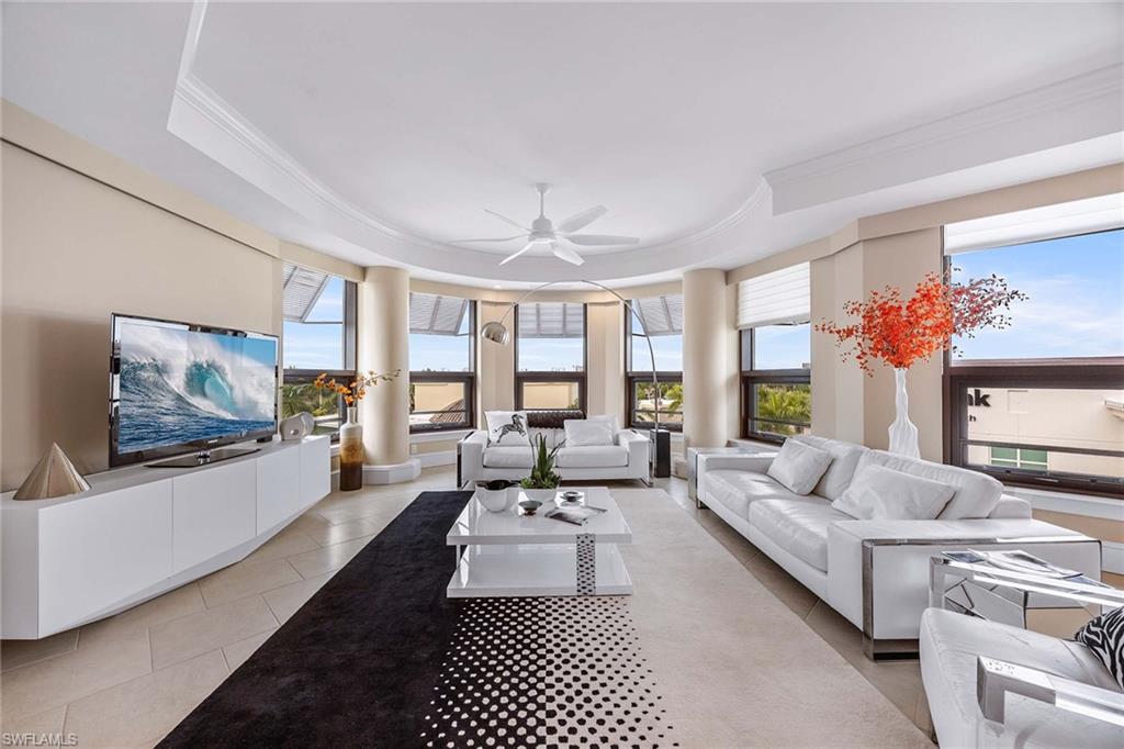 BEST VIEW at BEST PRICE! This magnificent Top Floor Penthouse Residence with abundant Natural Light is offered Turnkey Furnished. A Split Bedroom Floor Plan with 2 ensuite Bedrooms and 2 Full Bathrooms, soaking tub and a separate shower. This stunning Condo features a gorgeous Kitchen with Gas Stove , granite counter tops with elegant tiled backsplash , S/S appliances , pantry and a Breakfast Bar with seating. Living and Dinning area is well lit and ideal for entertaining. The private patio is a perfect spot for a morning coffee and for an evening cocktail to view the Sunsets. The Laundry area is off the kitchen with stackable Washer/Dryer and built in storage cabinets. The Residence is exceptionally well maintained and serviced, featuring a 2022 Air Conditioning System and a 2021 Water Heater System. The unit offers a Spacious Climate Control Storage Space and 2 Assigned garage Parking Spaces. The first class amenities include, a Resort Style 52-foot Swimming Pool, Hot Tub/Spa , 2 Outdoor Grills, Fitness Center, Fire Pit, a Dog run park, a Gated Security Entrance w/video monitoring, 24/7 Mercato Security and a Club House with Catering Kitchen. This amazing community is steps to Vanderbilt Beach, The Ritz Carlton Beach Resort , Restaurants , Whole Foods, Boutique Shopping, Movie Theater, Night Life , Day Spa , Stretch/Cycling Studios and much more. All perfectly located to create a life of Comfort , Convenience and Happiness.