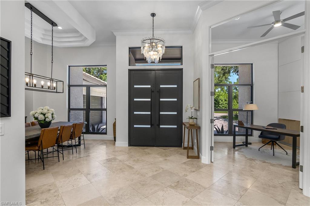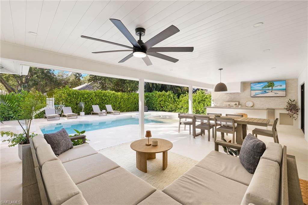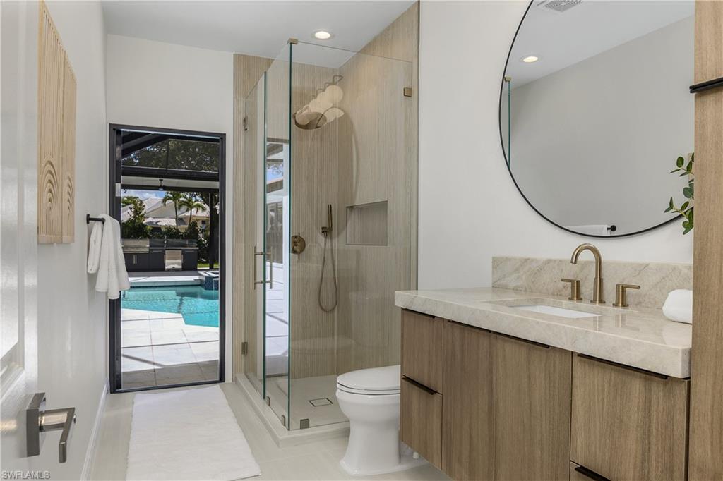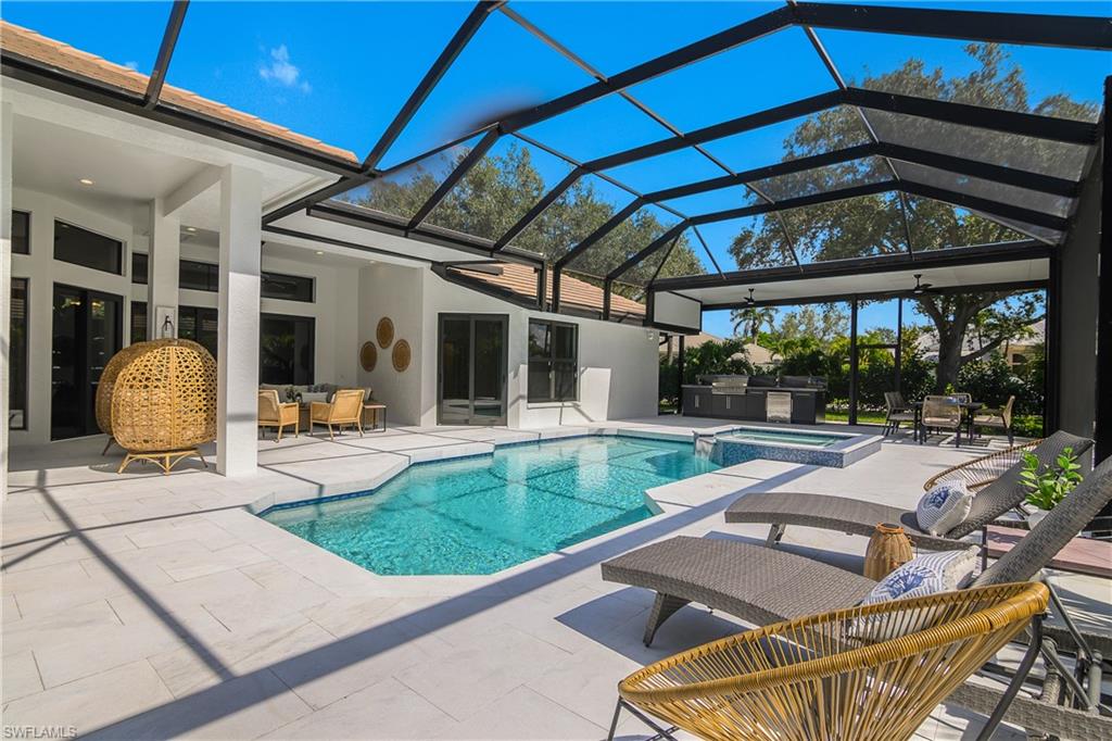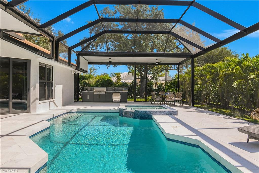 Completely Renovated Luxury in the Heart of Naples, this home is tucked away on a quiet street in the sought-after Villages of Monterey. This exquisitely renovated four-bedroom, three-bath home is a true gem. Every detail has been thoughtfully curated to blend timeless elegance with modern luxury. Step into a brand-new kitchen that will inspire your inner chef, featuring stunning Quartzite countertops, top-of-the-line luxury appliances, and custom cabinetry. The open-concept living spaces are adorned with rich wood floors and bathed in natural light through all-new impact windows and doors. Retreat to your private backyard oasis, complete with a sparkling pool and spa, a fully equipped outdoor kitchen, and lush tropical landscaping—perfect for entertaining or unwinding in style. Additional highlights include an immaculate garage with extra storage, a spacious layout ideal for families or guests, and access to Naples’ top-rated A-rated school district. All just minutes from the vibrant shopping and dining of 5th Avenue, 3rd Street, and the fun of Waterside Shops and local attractions. This is more than a home—it’s a lifestyle.