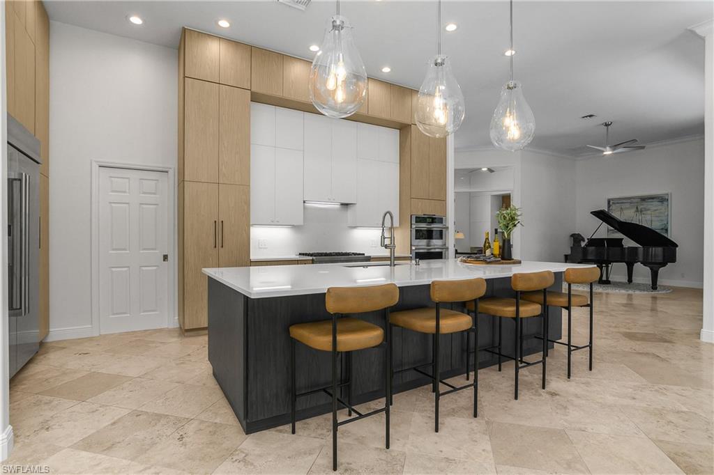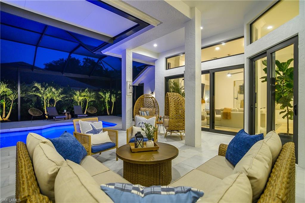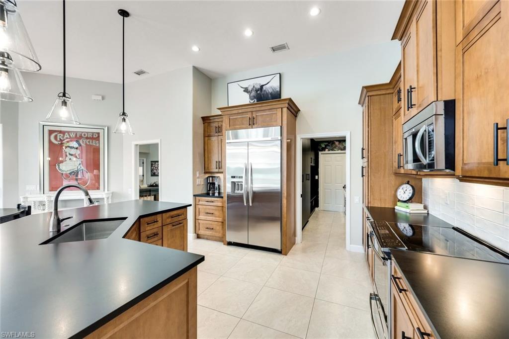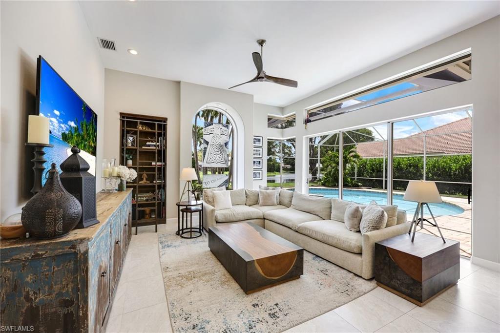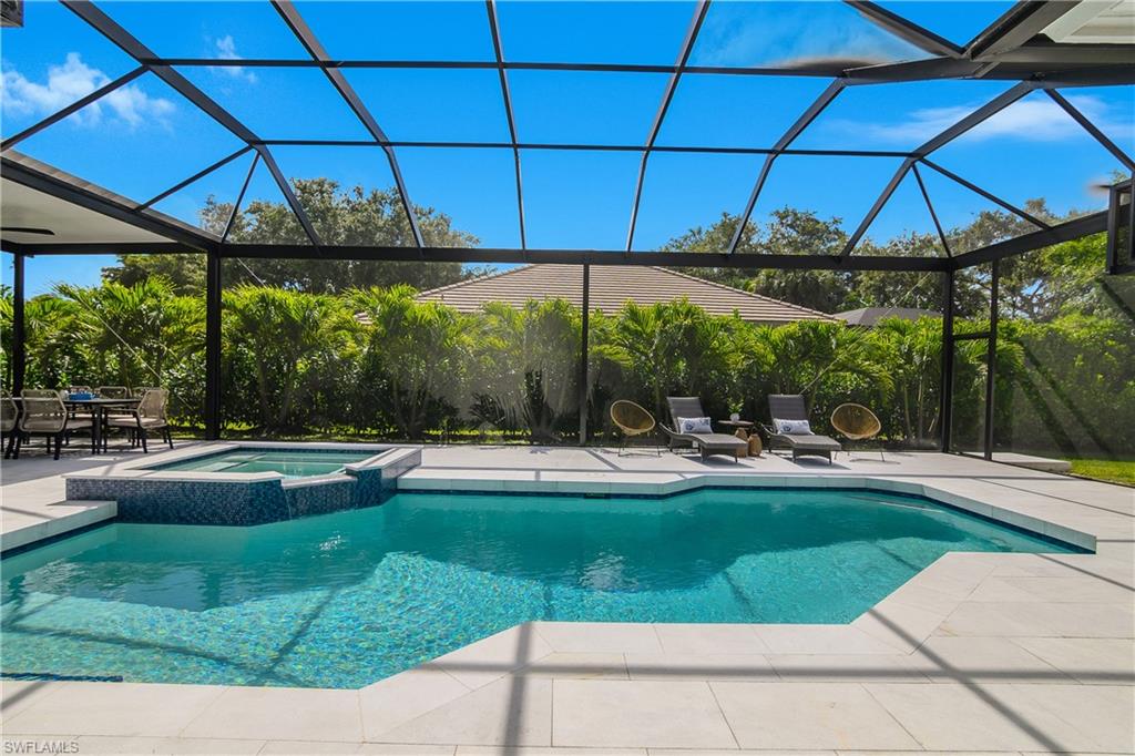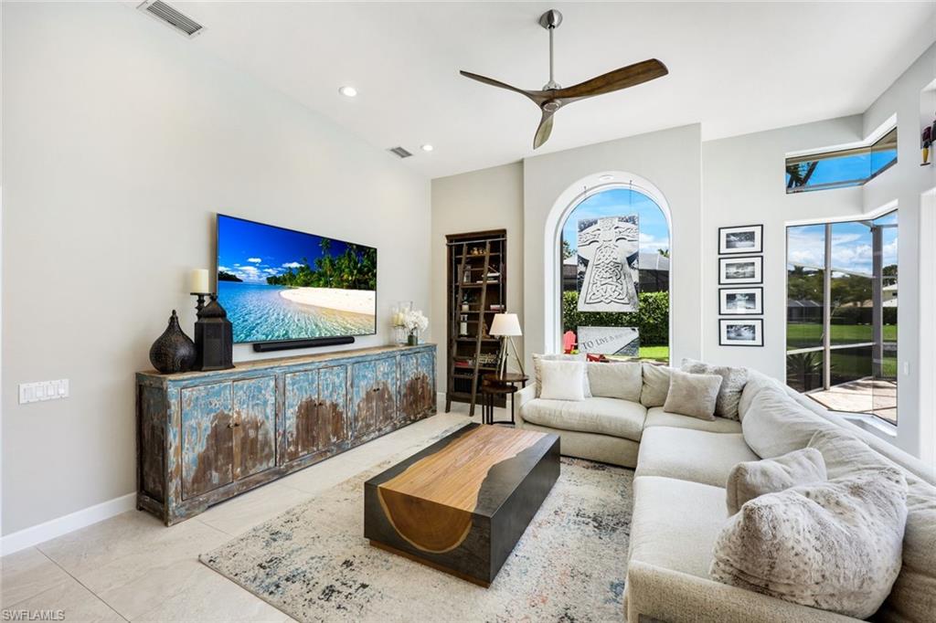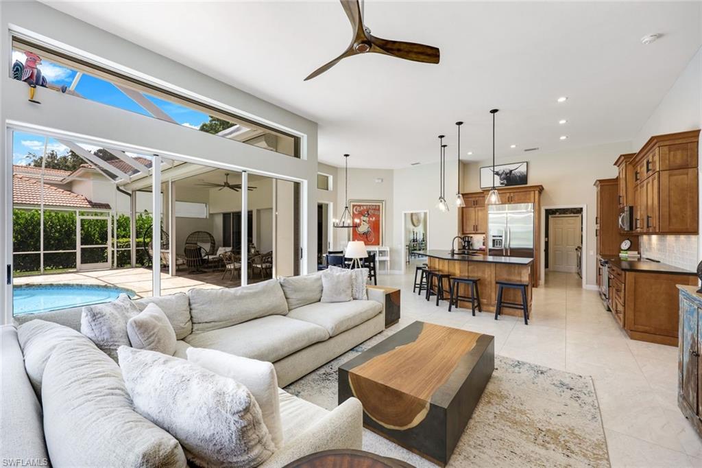 Effortlessly sophisticated home on a cul-de-sac street in the highly sought after and rarely available Monterey community! This 4 bed/3 bath + den home was recently updated to include an additional 500 sf of living space and an open kitchen perfect for entertaining. So much is NEW in this home, both inside and out! Full of luxurious finishes, including a professional La Marzocco espresso bar, Simonelli grinder (worth $12k), NEW Italian ceramic tile, New double convection oven, NEW AC with UV light filter, NEW water heater, NEW water well and NEW RO system. Outside features a butterfly garden, $55k of NEW landscaping, NEW lanai casing, NEW parking pad, and a spacious backyard with a zip line and trampoline. All furniture conveys, including a piano and Nest cameras. Located in an A+ rated school zone, just 1 mile from the beach, near the upscale Mercato and Waterside Shops. The gated Monterey community offers a renovated clubhouse, resort-style pool, fitness center, tennis, pickleball, and more. With easy access to I-75, the SWFL International airport, world class dining, shopping, entertainment, and beautiful white-sand SW Florida beaches.