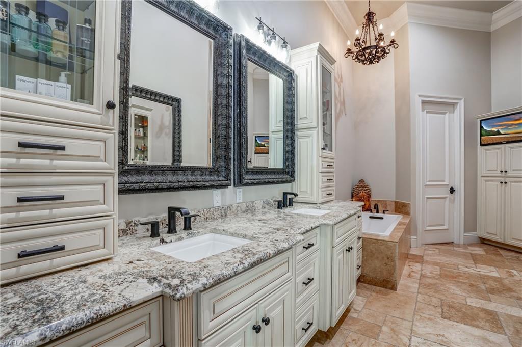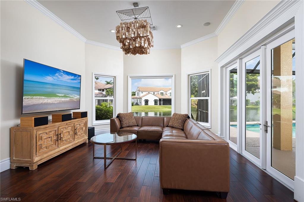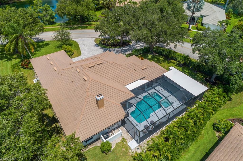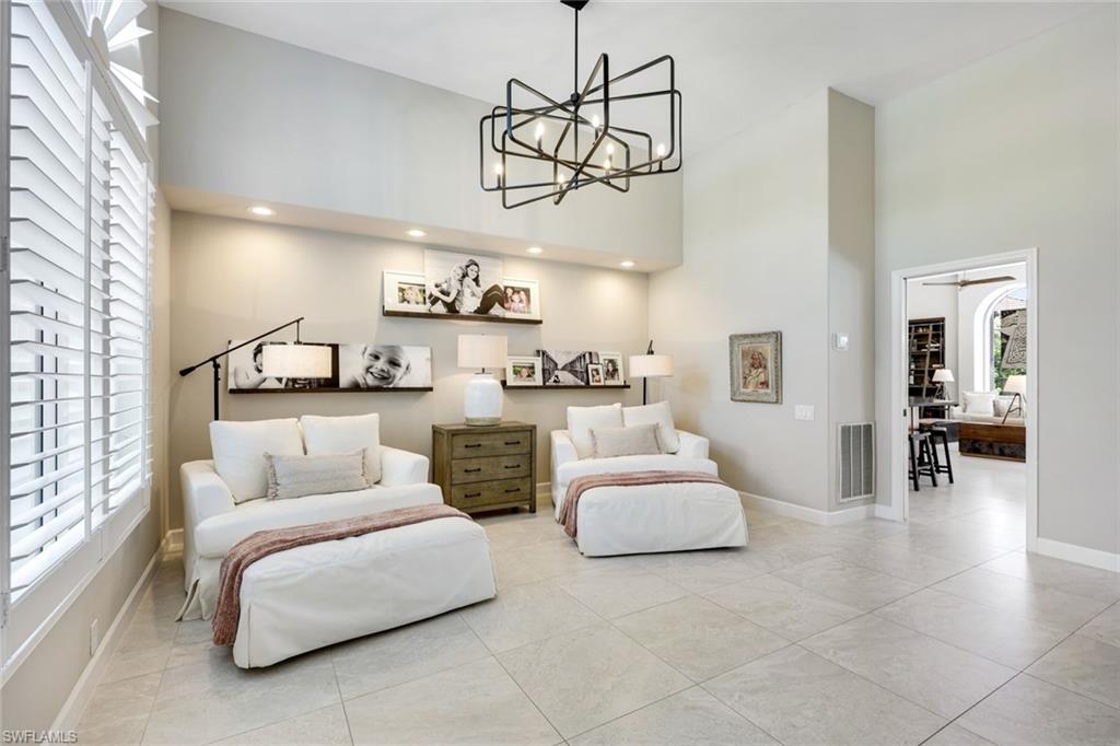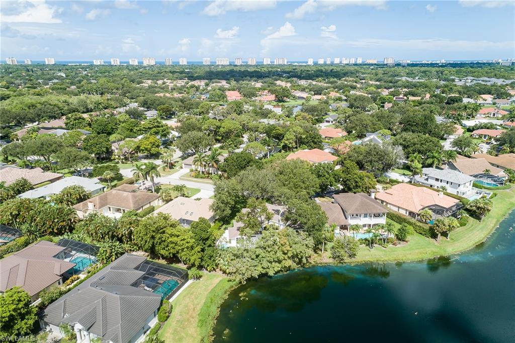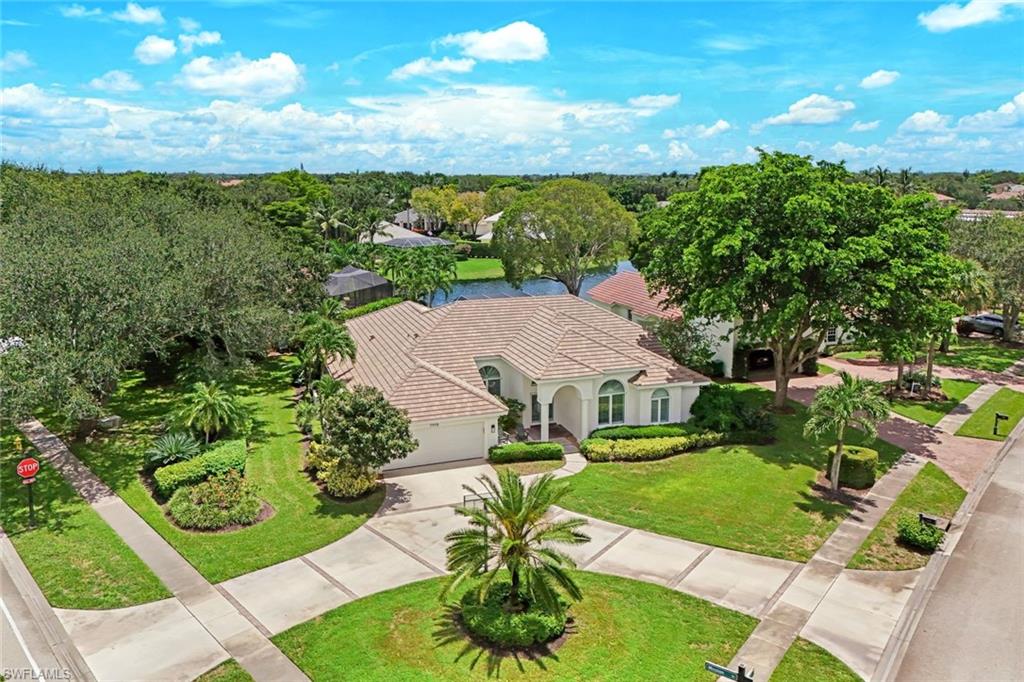 Sparkling long lake views are the backdrop for this timeless, sprawling home on a cul-de-sac street in the heart of Monterey. The signature space in this house is the fabulous second main or massive flex room on the second floor that comes complete with walk-in closet with built-ins and full bath. The distinctive front Mahogany doors, marble staircase and wrought-iron banister elevate the entry to the home. The outdoor space comes complete with resurfaced pool and spa, large covered area with outdoor kitchen and fantastic vistas looking east over the lake. The indoor space offers warm and inviting kitchen complete with glazed wood and glass paneled cabinetry, huge pantry, wine refrigerator and newer stainless appliances. The adjoining gathering room comes complete with huge palladium window maximizing the morning light and a signature stone accent wall with fireplace. Updated baths, wood flooring in bedrooms and den, built-ins with Murphy bed in study, impact windows on upstairs windows and two front windows in music room, two newer HVAC systems (2021 and 2022), water heater 2019, and massive two-plus car garage with terrific built-ins completes the package! Monterey continues to be among the leading communities in North Naples conveniently just three miles to Vanderbilt Beach and two miles to Mercato and Waterside Shops with 24-hour guarded gatehouse. Excellent amenities include award-winning clubhouse for private events, fitness center, heated lap pool, Har-Tru tennis courts with active tennis programs and pro play area, and basketball/pickleball court. A-rated public schools and three excellent private schools nearby.