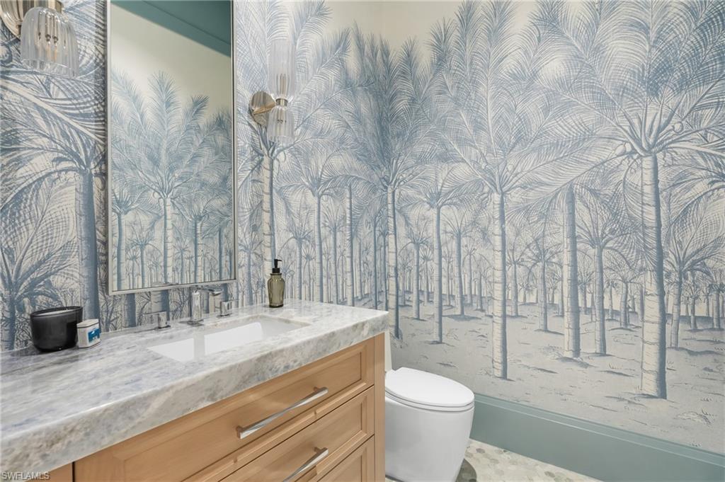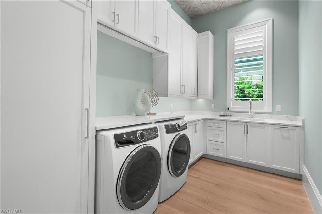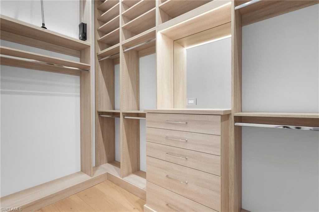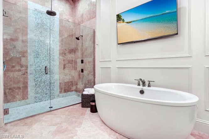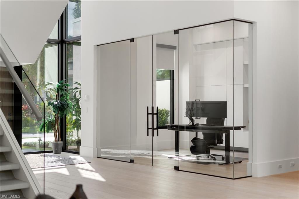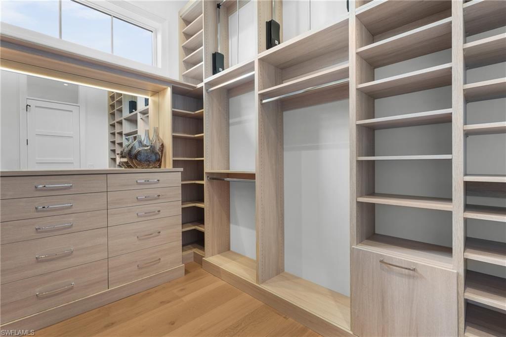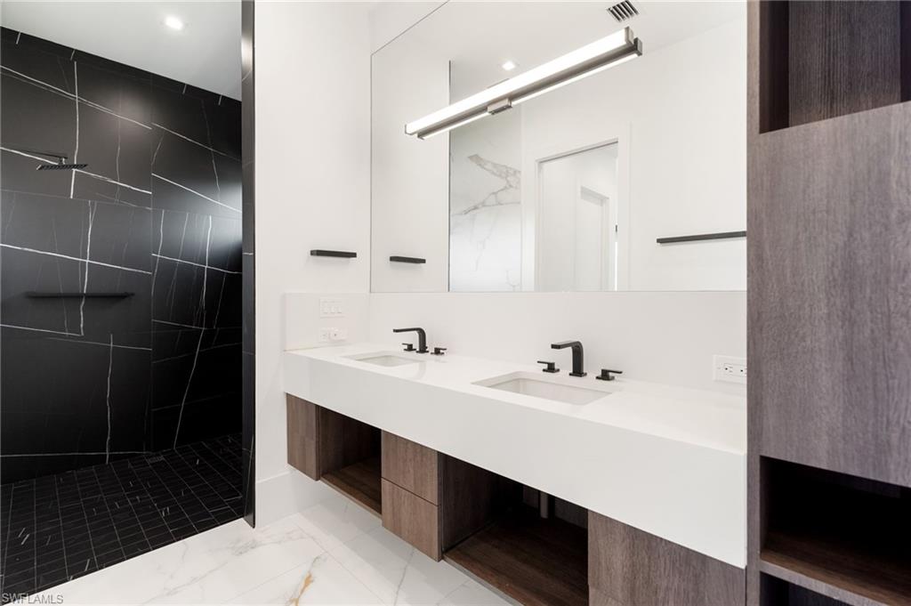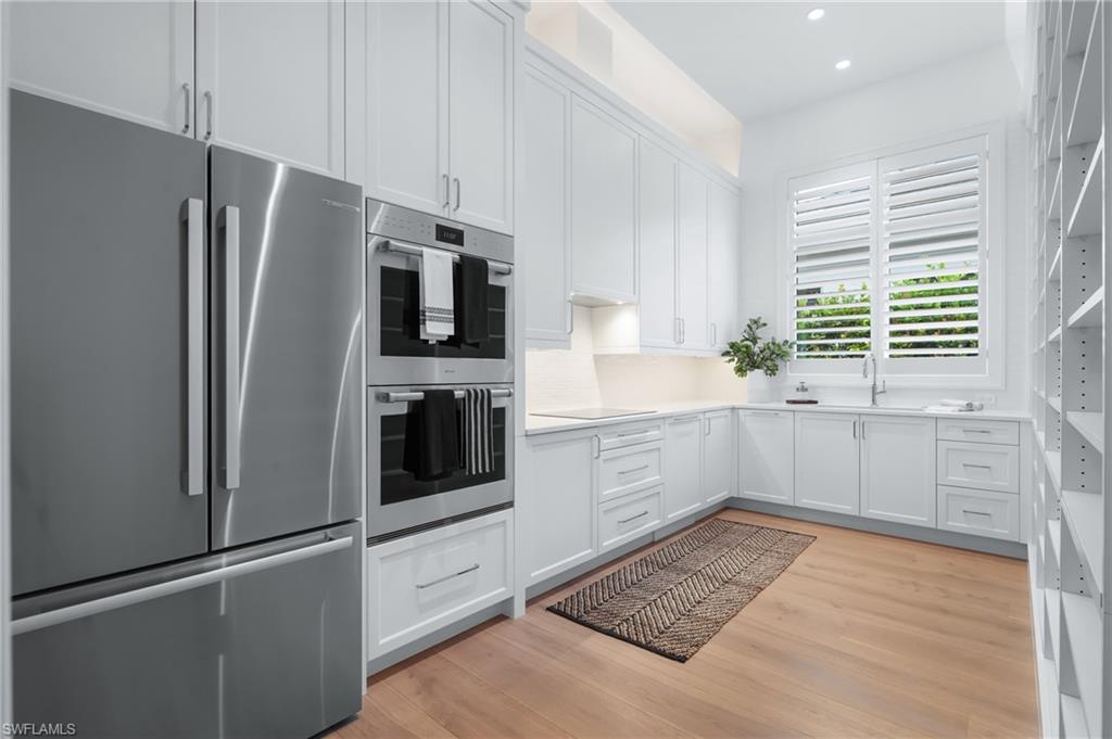 Modern Coastal Luxury Meets Biophilic Design in The Moorings — Minutes from Downtown Naples and the Beach Experience refined coastal living in this custom Borelli-built estate home that masterfully blends modern elegance, natural elements, and indoor-outdoor living. This 4,314-square-foot single-story residence was designed with a meticulous focus on biophilic design, seamlessly connecting the beauty of nature with sophisticated architectural detail. From the moment you enter through the grand double entry doors, your eyes are drawn through the open-concept living area to an outdoor entertainment oasis featuring a stunning 6-foot driftwood sculpture suspended over a sunken circular lounge with a fire pit and swim-up bar, flowing effortlessly into a resort-style pool and spa. Inside, you’ll find washed oak hardwood floors, soaring detailed ceilings, and luxury finishes throughout. The open-concept floor plan connects a chef-inspired kitchen—featuring Taj Mahal quartzite countertops, Sub-Zero and Wolf appliances, custom wood cabinetry, and a walnut wet bar—to elegant living and dining spaces perfect for both intimate gatherings and grand entertaining. This 4-bedroom + office + media OR 5 bedroom + den/flex room residence includes five full designer bathrooms. The media room with its custom built-in bar creates a stylish retreat for movies or game nights. The primary suite is a true sanctuary, offering dual custom walk-in closets, a soaking tub, oversized walk-in shower with dual shower heads, and two private water closets. Designed for the Naples lifestyle, the outdoor living area extends over 650 sq. ft. of covered space and includes a summer kitchen with grill and Green Egg station, electric roll-down screens, outdoor shower, and a fully fenced backyard surrounded by mature tropical landscaping. The southeast rear exposure ensures ideal sunshine over the pool during winter months. Additional upgrades include: • Crestron smart home automation • Generator (on order) • Integrated security and sound system • Two tankless water heaters • Electric roll down hurricane shutters • Split three-car garage with epoxy floors Located just minutes from 5th Avenue South, 3rd Street South, and Naples’ white sand beaches, this home offers private beach access through the optional Moorings Beach Park Association. Enjoy an unparalleled Naples lifestyle—morning walks on the beach, afternoons by the pool, and evenings dining in the heart of downtown. Whether you’re seeking a second home in Naples or planning a full-time relocation from the Midwest or Northeast, this residence delivers the perfect balance of sophistication, comfort, and coastal serenity.