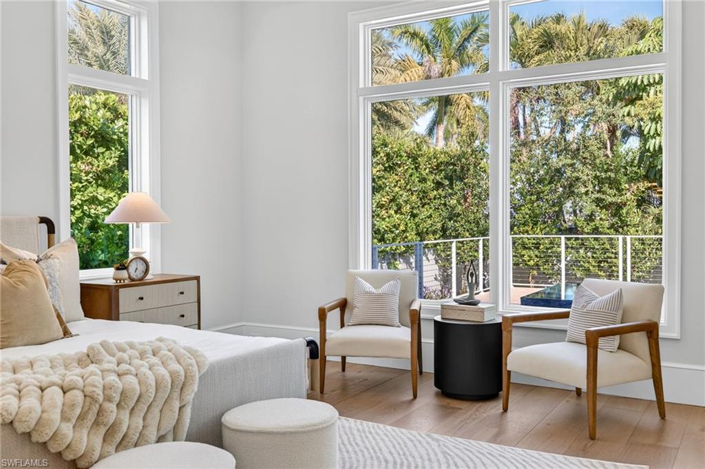 Perfectly positioned in the coveted Moorings neighborhood, this contemporary retreat masterfully balances form and function. Defined by clean architectural lines and sun-drenched interiors, the home embodies a minimalist’s ideal. Natural light pours across wide-plank oak floors, illuminating a gourmet kitchen outfitted with custom cabinetry and premium Wolf and Sub-Zero appliances—an elegant expression of understated luxury. Soaring ceilings amplify the home’s airy ambiance, while the easy flowing layout offers both privacy and flexibility. Dual primary suites—one on the main level and another upstairs—serve as serene sanctuaries, each featuring spa-inspired baths, dual walk-in closets, and convenient laundry access. Outdoors, a lush tropical backdrop framed by bamboo and a fruit-bearing mango tree sets the stage for the sleek modern pool and expansive yard—a private oasis ideal for quiet afternoons or stylish entertaining. With close proximity to downtown Naples and exclusive access to the Moorings Beach Park, this residence is the ideal full or part time residence.