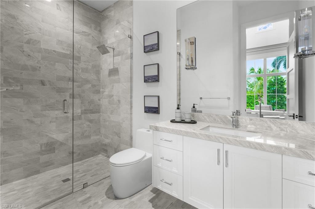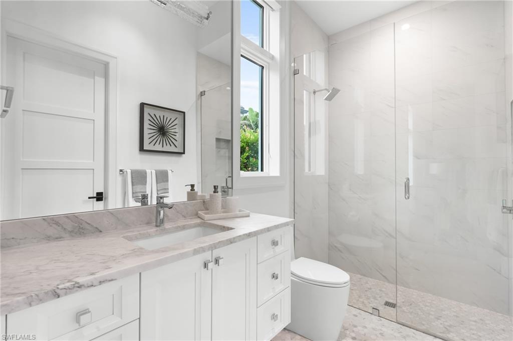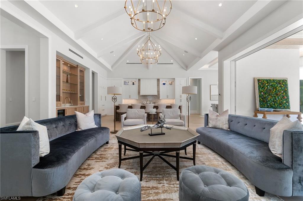 Tucked away on the quiet Cuddy Ct. cul-de-sac, this 4-bedroom plus den coastal retreat lives effortlessly on one level. Step through glass-pane double doors into a bright, inviting great room framed by classic tongue-and-groove ceilings and expansive walls of glass that flood the space with natural light. The show stopping kitchen features Crystallo quartzite countertops, custom Ruffino cabinetry, and an oversized island—all seamlessly connecting to the dining area with a wet bar and wine cooler. A tucked-away butler’s kitchen elevates everyday convenience with a walk-in pantry, ice maker, additional storage, and more, making entertaining truly effortless. The primary suite is a private sanctuary, offering two beautifully finished closets, a serene spa-like bath, and direct access to outdoor living. Family and guests will feel perfectly at home in any of the three ensuite guest rooms. The outdoor living experience is exceptional, highlighted by a custom summer kitchen, a 30-foot pool with sun shelf, built-in firepit, and abundant deck space for soaking in the Naples sunshine. A covered lounge area—complete with roll-down screens and shutters—ensures comfort and livability year-round. Timelessly crafted by Coleman, this residence blends luxury, functionality, and coastal charm to impress even the most discerning buyer.