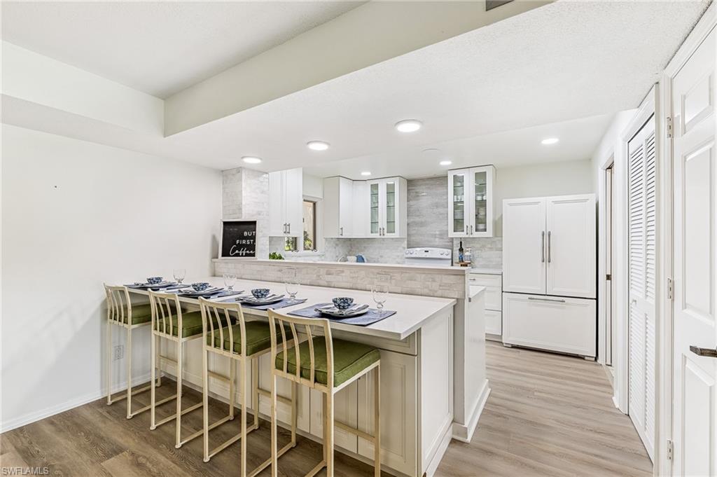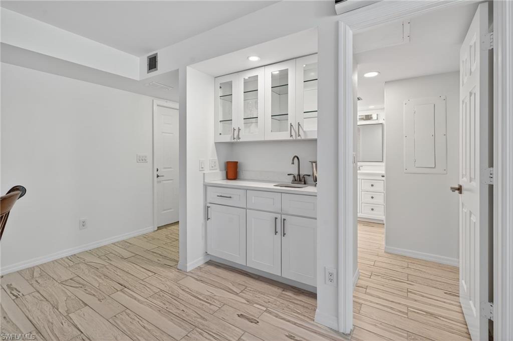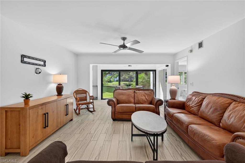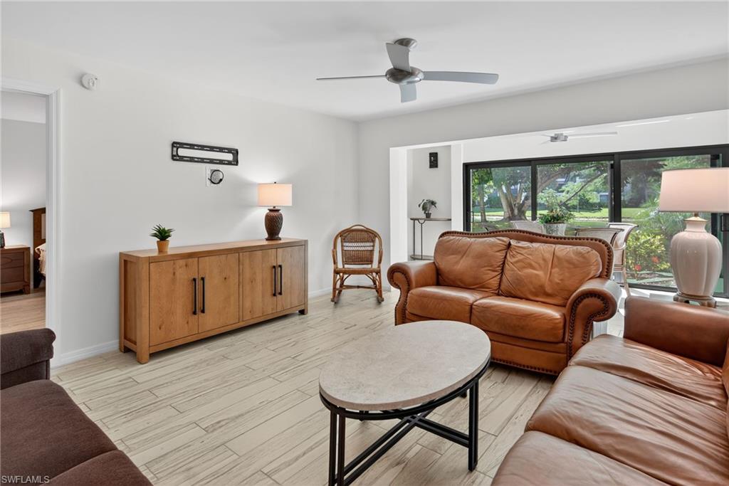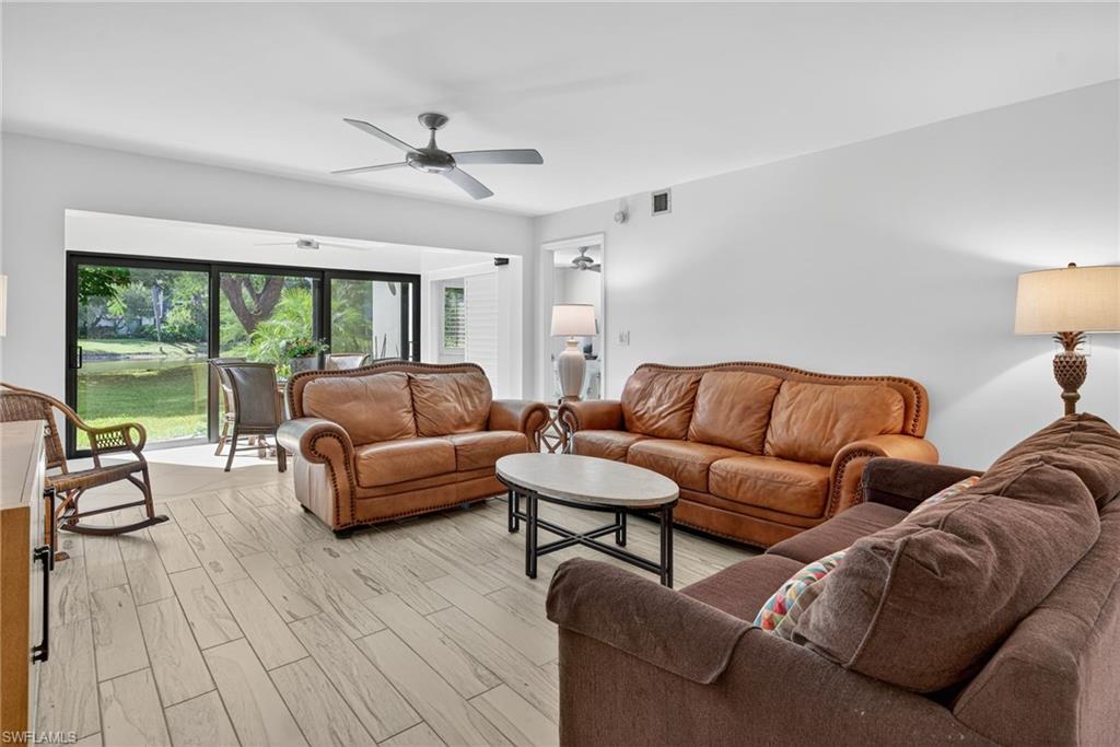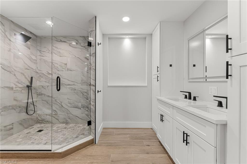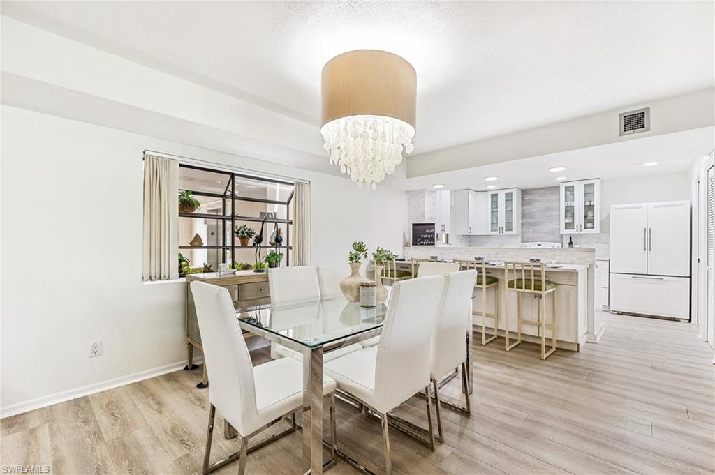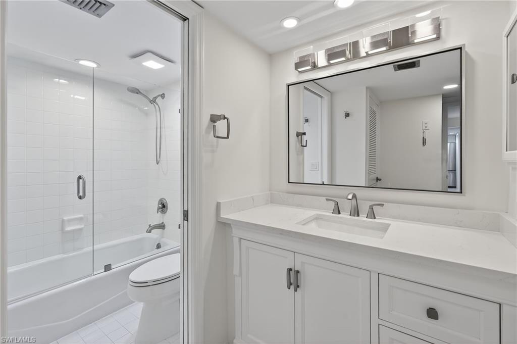 **MOTIVATED SELLERS!** Welcome to this fully remodeled, move-in ready first-floor end unit in the highly sought-after, pet friendly (large dogs allowed) community of Naples Bath and Tennis. All assessments have been paid, providing peace of mind for the new owner. This beautiful condo has been updated from top to bottom, featuring luxury vinyl plank flooring throughout for a modern, low-maintenance living experience. The bright and airy kitchen boasts newer stainless steel appliances, sleek white quartz countertops, white cabinetry, and a timeless subway tile backsplash. Recessed lighting adds a touch of elegance, enhancing the open and inviting space. The unit also includes impact-resistant glass for added security and storm protection. Storage is abundant throughout, with spacious closets and an external storage unit just outside the door. The large pantry cabinet ensures that all your kitchen essentials stay neatly organized. The enclosed lanai adds additional living space under air, offering a perfect spot to relax while enjoying stunning views of the serene lake and lush landscaping. The master suite is a true retreat, featuring a gorgeous glass-enclosed shower, white vanity with quartz countertops, and a generously sized walk-in closet. The guest bedroom is equally spacious, providing comfort and privacy for visitors. Naples Bath and Tennis is known for its prime location, just minutes from Naples' world-class shopping, dining, and entertainment options. The Gulf of Mexico's pristine white sand beaches are only a short drive away. This is a rare opportunity to own a beautifully renovated condo in one of the most desirable communities in Naples.