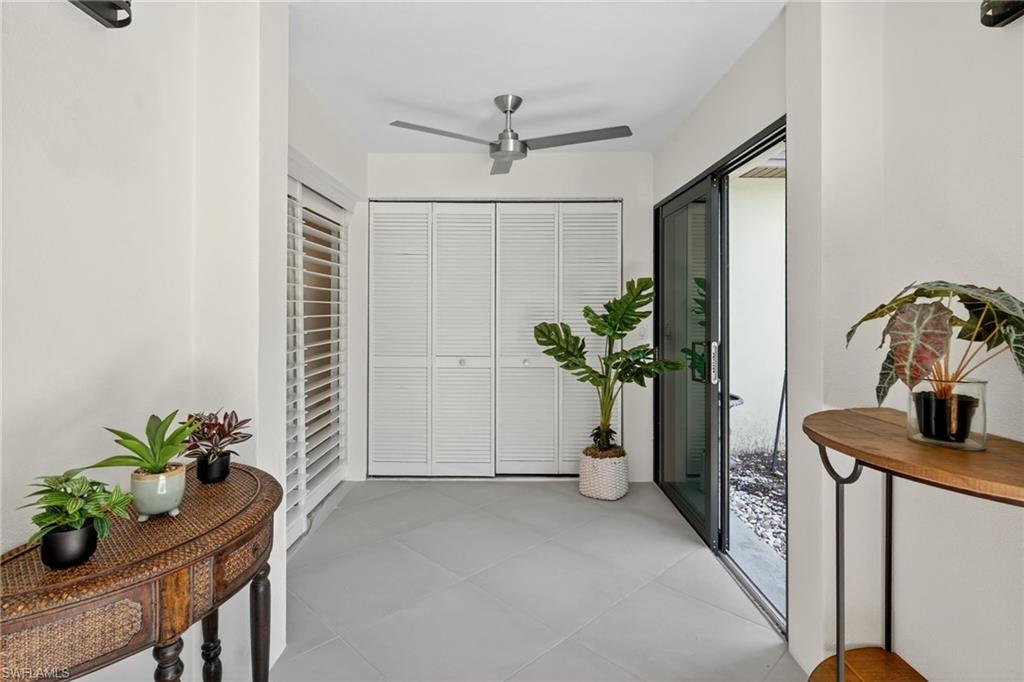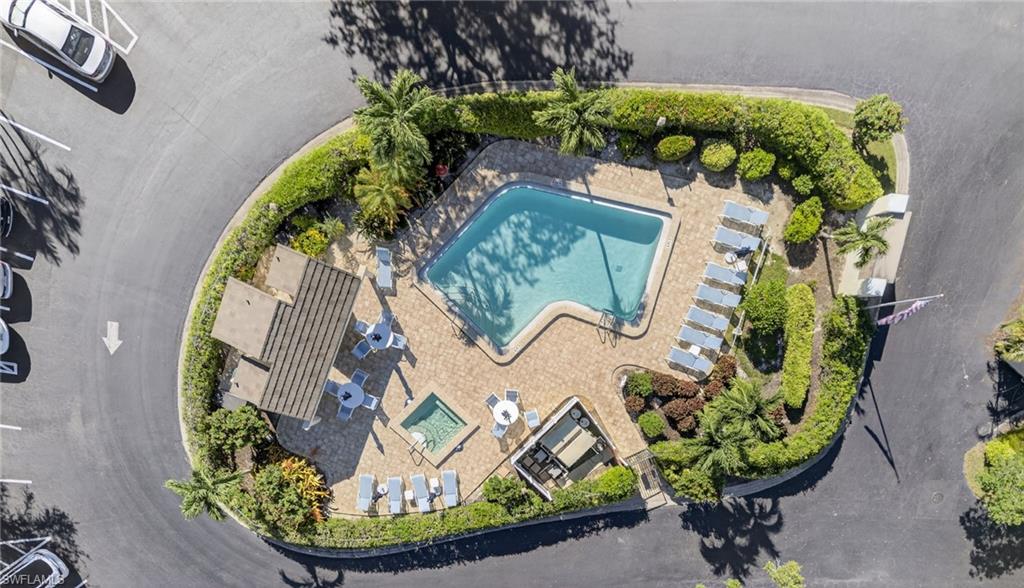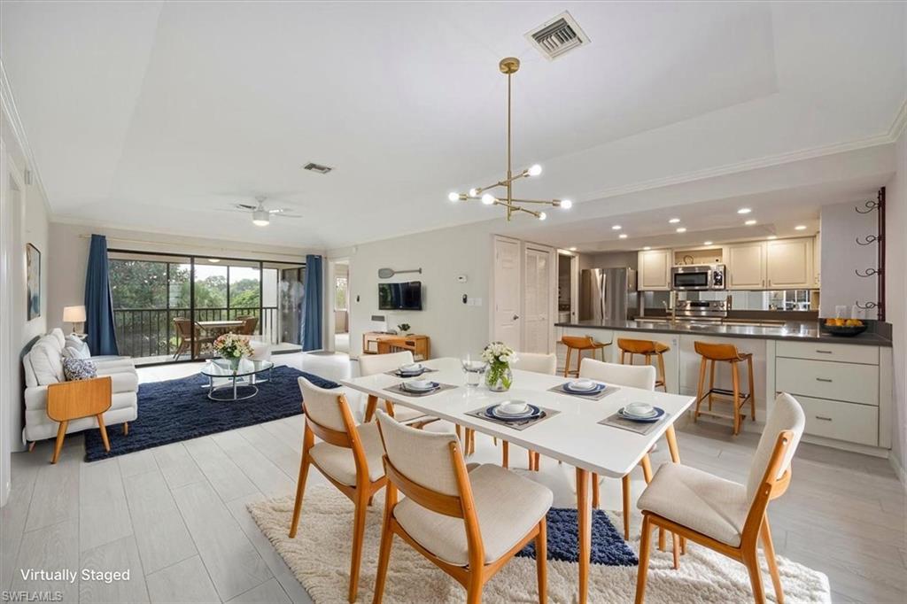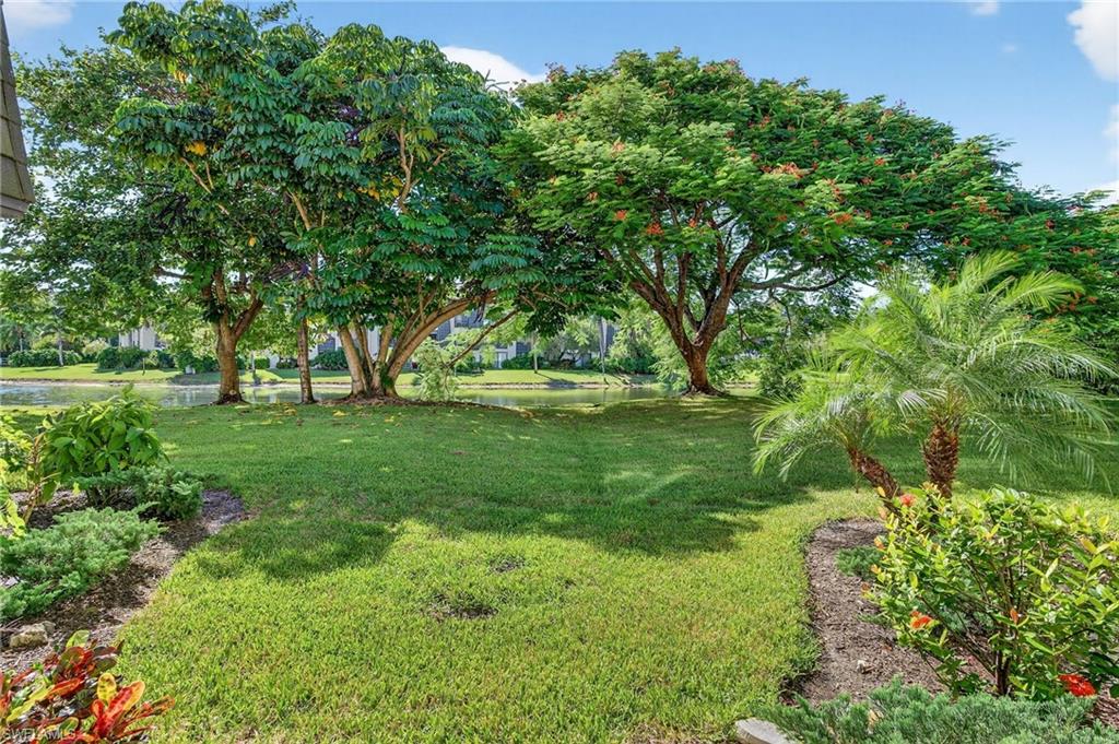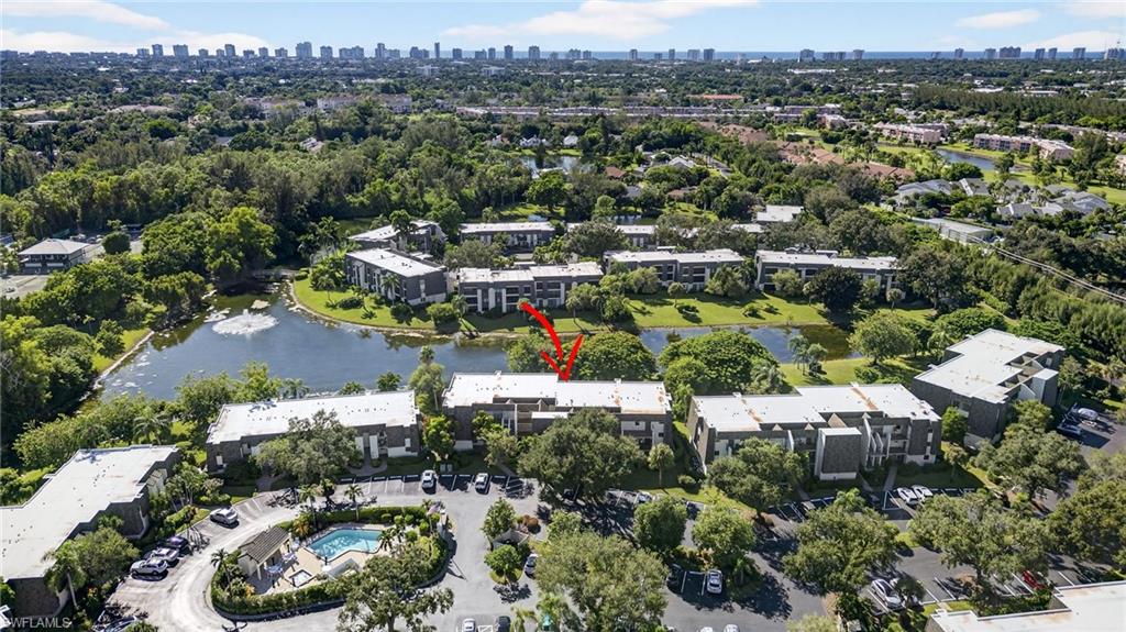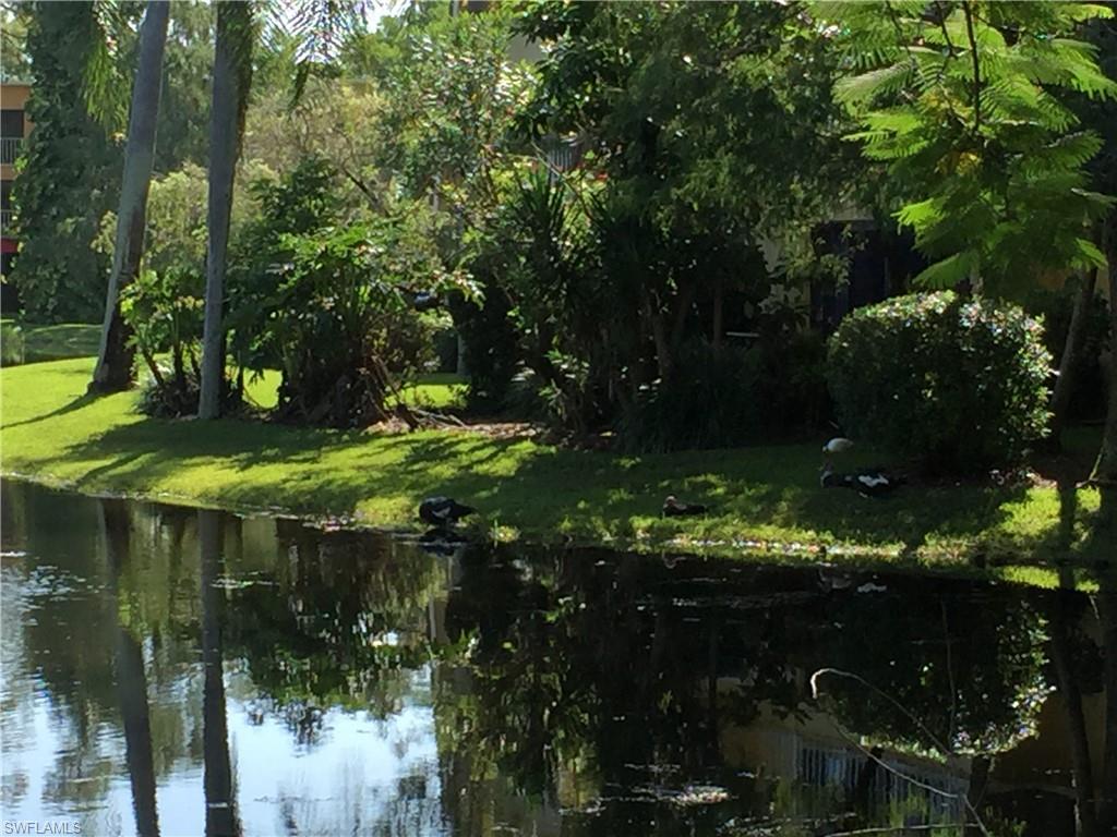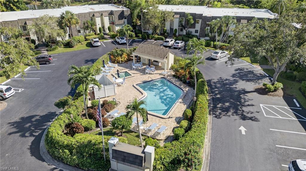 The absolutely perfect Naples getaway home tucked away in a tropical oasis near the city and white sand beaches can be your very own! This completely renovated 2 bedroom, 2 bath condo showcases modern luxury and thoughtful design. Every corner of this unit is utilized for efficiency and offers storage galore! New Roof and updated community pool just steps away create an ease not unlike your own personal resort. This home offers a move-in-ready opportunity for the buyer seeking elegance and convenience. This home is a standout, sold turnkey furnished including high end TV’s, state of the art sound system, top quality finishes and furnishings that are fresh and coastal. Kitchen is bright, and white, with stainless appliances, and quartz counters. Designer lighting and fans throughout, fantastic local artist’s works on walls, all curated into a palette of crisp whites and blues, make this unit unique, and special indeed. Additionally, your private enclosed lanai offers a direct view of a shimmering lake and fountain that floods the home with morning light that must be seen to appreciate! Come see this slice of paradise today!