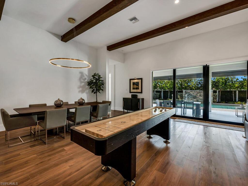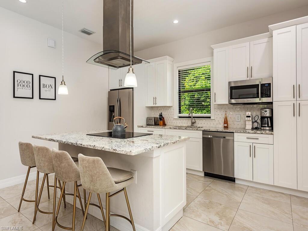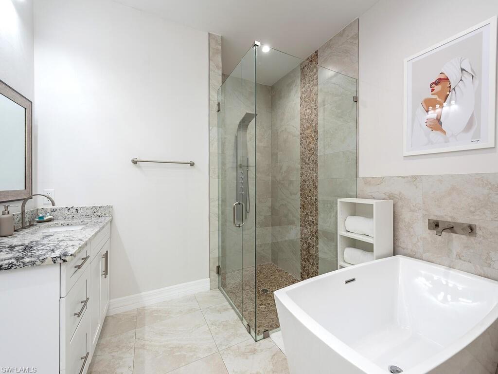 Crafted for Living. Designed for Legacy. This residence is more than a home—it is a lifestyle statement. A rare single-level estate in the heart of Naples, it balances modern design with luxurious comfort, offering 4,524 sq. ft. under air and 7,312 sq. ft. total, including over 1,400 sq. ft. of lanai and pool deck. Every detail has been curated to elevate daily living and entertaining. At the center of the home, a spectacular 15-foot kitchen island anchors a chef’s dream culinary suite: 48” Z-Line gas range with dual ovens, dual 36” refrigerator/freezers, convection microwave, dual dishwashers, hidden mixer station, and walk-in butler’s pantry with additional appliances. Glassware rinsers, a freestanding ice maker, and a wine chiller complete the setting for effortless entertaining. The 14’ x 32’ covered lanai is an outdoor living room with motorized shades, built-in grill with rotisserie, gas fireplace, undercounter refrigerator, and a 75” TV. Just beyond, a spa-style pool with cascading waterfalls, artificial turf, and lush privacy landscaping creates the perfect retreat. The primary suite is a sanctuary with serene garden views, a spa-caliber wet room with steam shower, chroma-therapy lighting, soaking tub, dual vanities, Toto bidet toilets, and a private outdoor shower. A boutique-style custom closet completes the retreat. Four additional guest suites—each with en-suite baths—are generously scaled for king or dual queen accommodations. For extended stays or live-in staff, a private guest cabana offers a full kitchen, living area, LG Wash Tower, private entrance, and parking. A flexible design can transform this space into a two-bedroom, two-bath guest wing. Additional highlights include a 3-car garage with 12’ ceilings (EV-ready), four-zone HVAC, three tankless propane water heaters, 1,000-gallon buried propane tank, Icynene insulation, insulated interior walls, Lutron Caséta lighting, and two LG Wash Towers in the laundry/mudroom. Located in an A+ rated school district and just minutes from beaches, shopping, and downtown Naples, this home offers rare one-level living, luxury finishes, and extraordinary flexibility—without the $5M+ price tag west of US41. Live boldly. Entertain effortlessly. Rest luxuriously. Every finish, every fixture, every space—elevated.