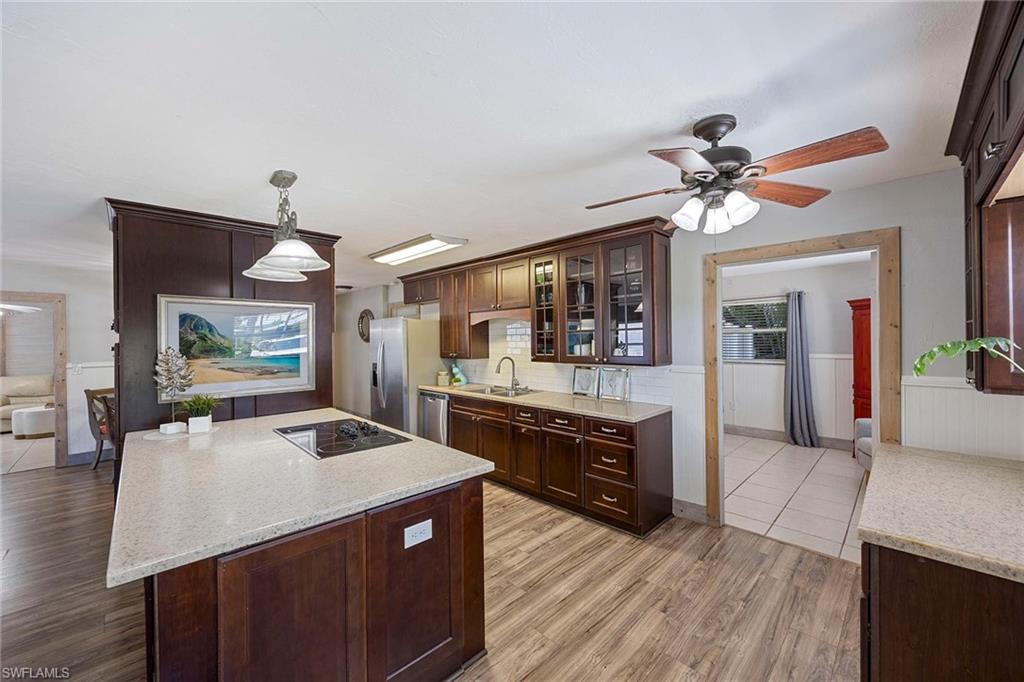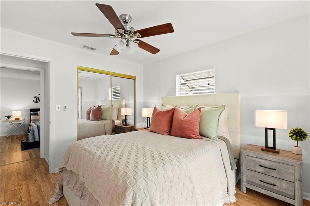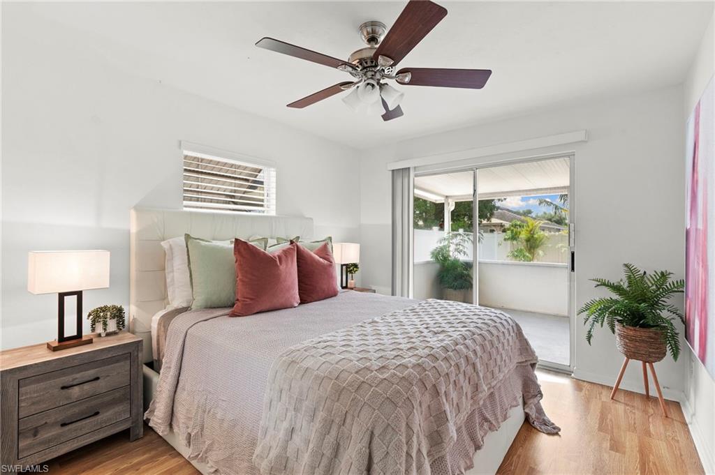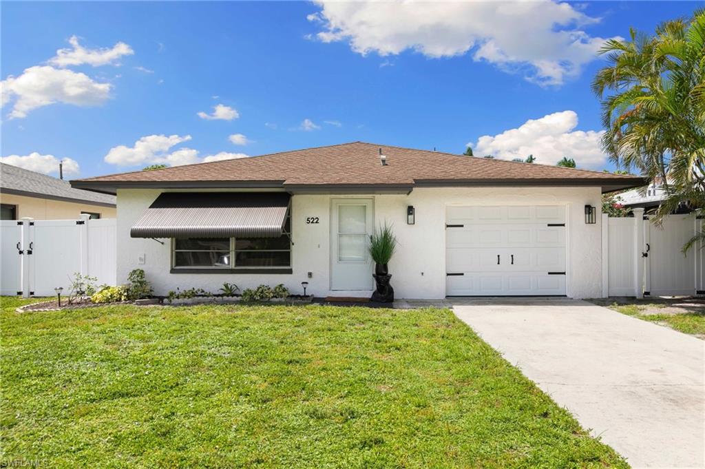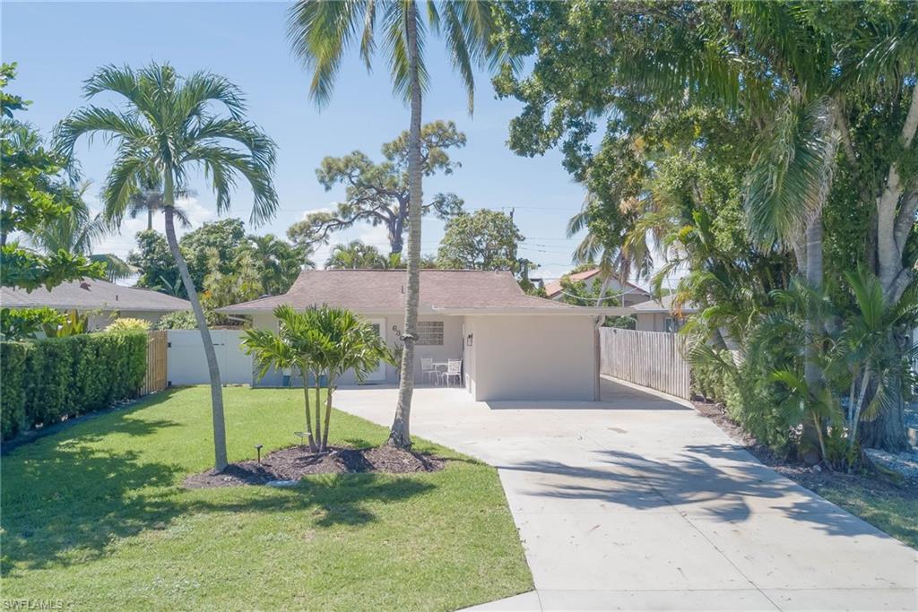 Naples Park - "The Naples Lifestyle"  - under $650K! Single family beach bungalow home in the 500 block makes it a perfect location for short walks or biking trips, La Playa resort or The Ritz Carlton for dinner or drinks. This 3 bedroom/2 full bathroom/attached 1-car garage home has a freshly painted exterior (July 2025) - ready for you to add your design touches and make it your own! Laminate wood flooring throughout with tile in the bathrooms. The kitchen cabinetry and corian countertops were updated in 2015, and leads out to the well-lit living/dining area. Large owner's ensuite has sliders leading out to the enclosed screened lanai, and full bath with glass shower, vanity, and linen closet. Two additional bedrooms - 1 with sliders leading out to the lanai - share a full bath with shower glass doors, with convenient tub sink. Back yard is fenced on all sides, with palms along the back for privacy - and plenty of room to add a pool! This property has never flooded and sits on a X flood zone for peace of mind. Naples Park is well known for its prime location and walking/biking distance to Vanderbilt Beach, Delnor-Wiggins Pass State Park, The Ritz Carlton, Mercato, and a short drive to Fifth Ave. S. or Waterside Shops for dinner or shopping and many other local attractions. Located in an A+ school zone, Naples Park is an excellent area for full-time residency, as a seasonal home, or as a rental investment property.