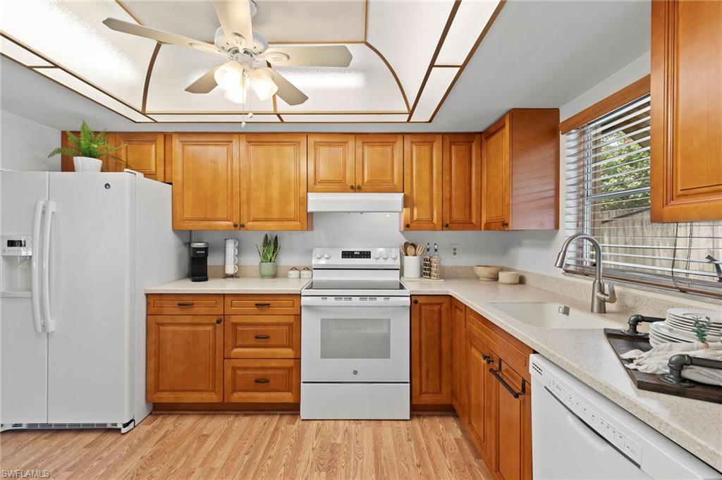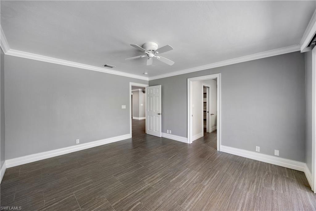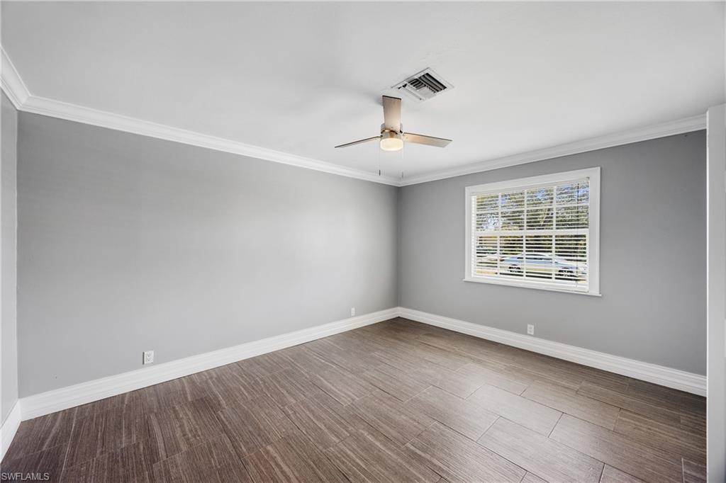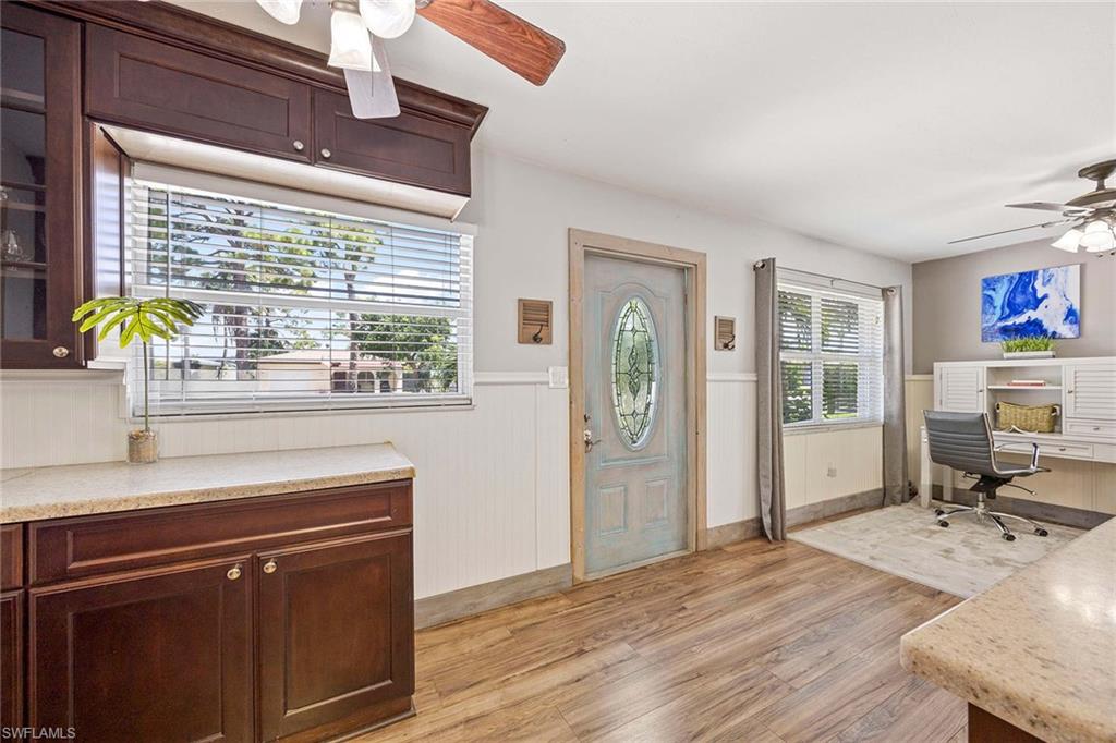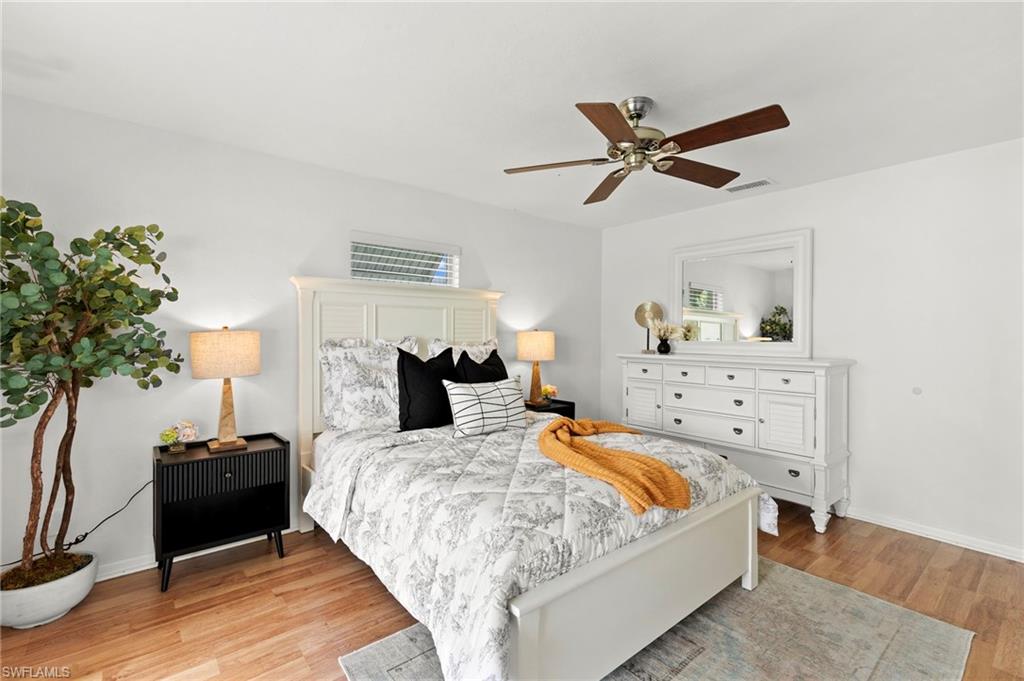 Naples Park - "The Naples Lifestyle"  - under $650K! Single family beach bungalow home in the 500 block makes it a perfect location for short walks or biking trips, La Playa resort or The Ritz Carlton for dinner or drinks. This 3 bedroom/2 full bathroom/attached 1-car garage home has a freshly painted exterior (July 2025) - ready for you to add your design touches and make it your own! Laminate wood flooring throughout with tile in the bathrooms. The kitchen cabinetry and corian countertops were updated in 2015, and leads out to the well-lit living/dining area. Large owner's ensuite has sliders leading out to the enclosed screened lanai, and full bath with glass shower, vanity, and linen closet. Two additional bedrooms - 1 with sliders leading out to the lanai - share a full bath with shower glass doors, with convenient tub sink. Back yard is fenced on all sides, with palms along the back for privacy - and plenty of room to add a pool! This property has never flooded and sits on a X flood zone for peace of mind. Naples Park is well known for its prime location and walking/biking distance to Vanderbilt Beach, Delnor-Wiggins Pass State Park, The Ritz Carlton, Mercato, and a short drive to Fifth Ave. S. or Waterside Shops for dinner or shopping and many other local attractions. Located in an A+ school zone, Naples Park is an excellent area for full-time residency, as a seasonal home, or as a rental investment property.