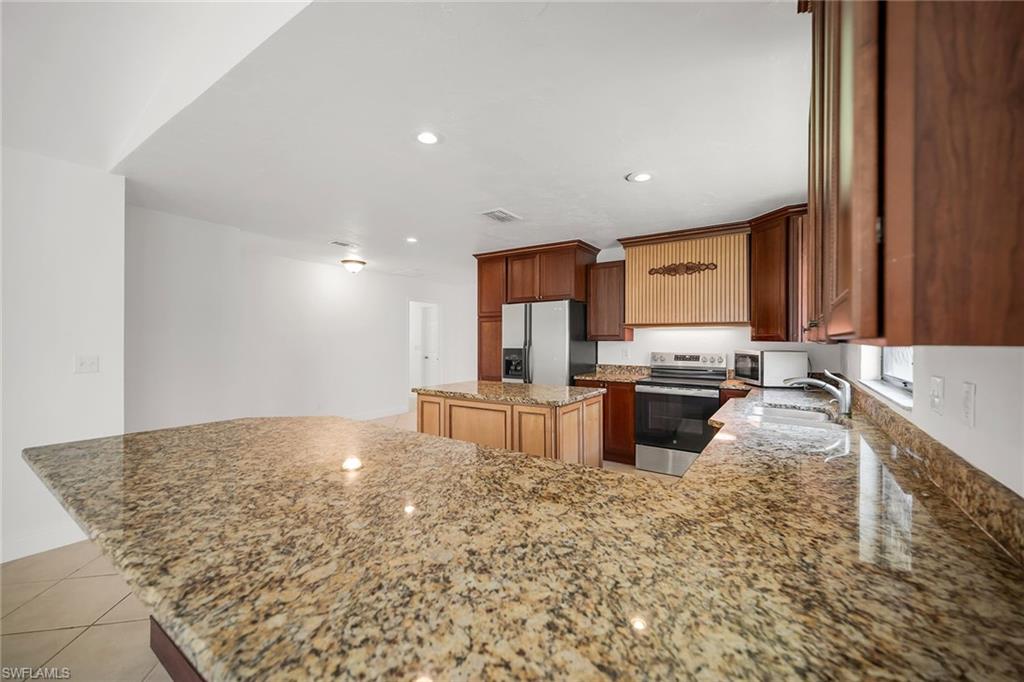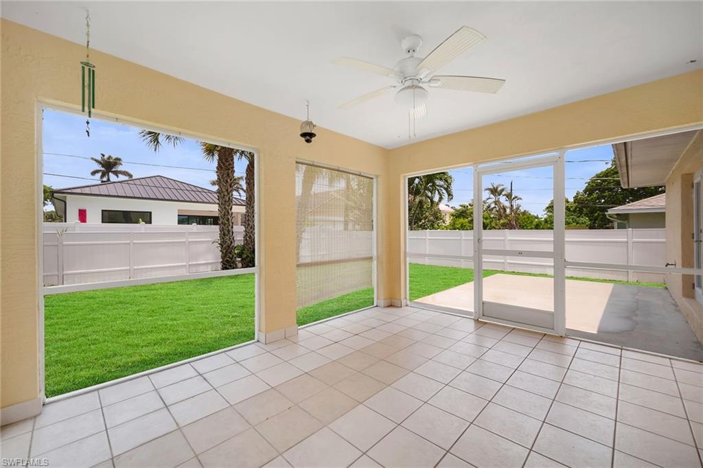 In the heart of Naples Park and just moments from the beach and Gulf, this inviting three-bedroom, two-bath residence offers a rare blend of location, comfort and potential. West of U.S. 41, it's only minutes from Vanderbilt Beach, Delnor-Wiggins Pass State Park, and the dining and shopping destinations of Mercato. With no HOA or rental restrictions, a fully fenced yard and plenty of room for a pool, this home is the ideal investment property or forever home in one of Southwest Florida’s desirable coastal communities. The screened lanai features a covered outdoor living area with a ceiling fan, ideal for relaxing or entertaining. Beyond the lanai, a private patio leads to a completely fenced-in backyard offering total privacy and space to create your outdoor retreat. Inside, diagonal tile flooring runs through the main living areas, while the kitchen offers shaker-style cabinetry, granite countertops, a central island with custom wine storage, breakfast bar seating, recessed lighting and stainless steel appliances. A window above the sink fills the space with natural light. The vaulted ceiling living room opens to the lanai and backyard for seamless indoor-outdoor living. The owner’s suite includes lanai access, a granite-topped vanity and a walk-in shower with glass enclosure. Two guest bedrooms share a full bath with a tub/shower combo, offering comfort and convenience for family or visitors. The laundry room is equipped with a washer, dryer and utility sink. Whether you're looking for a profitable short-term rental or a beach-close retreat to call home, this Naples Park gem delivers unmatched flexibility and lifestyle in a prime coastal location.