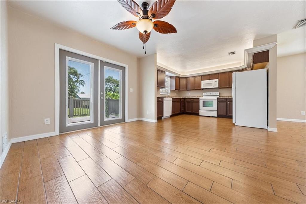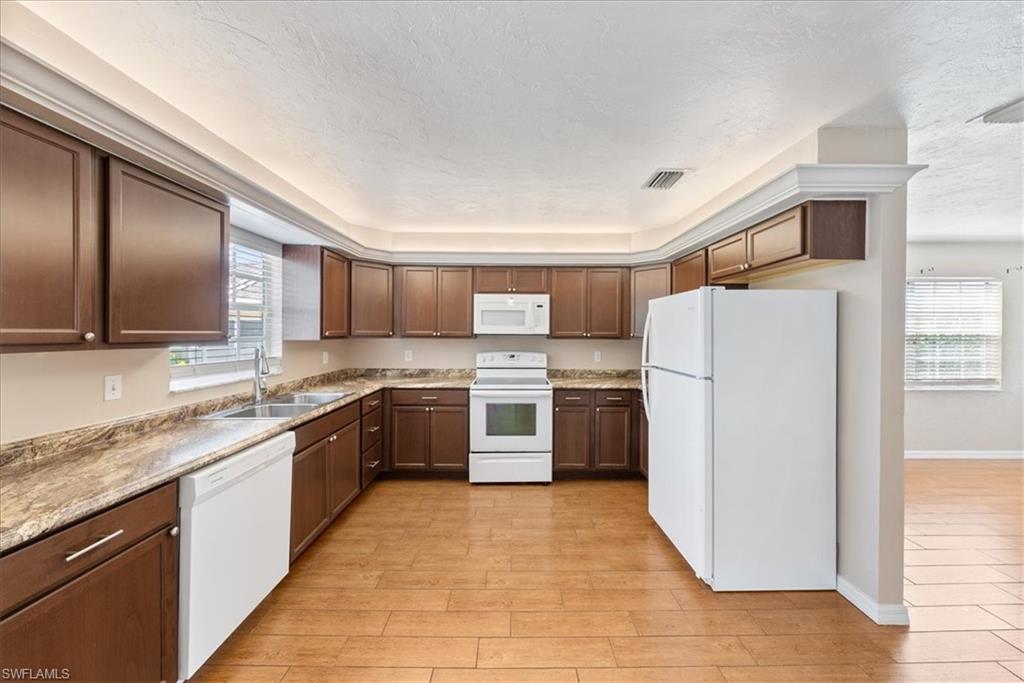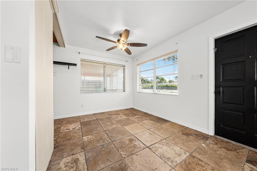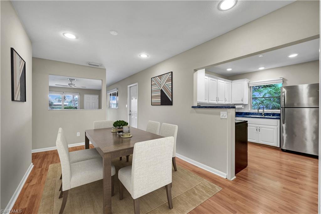 Welcome to this beautifully maintained 2-bedroom, 2-bath home in the highly desirable Naples Park community, located just minutes from Vanderbilt Beach, Mercato, and Wiggins Pass State Park. Offering just under 1,400 square feet of living space, this property combines coastal charm with modern upgrades and an unbeatable location. From the moment you arrive, you’ll notice the oversized double driveway, screened front entry, and fully fenced yard, providing privacy and curb appeal. Inside, the home is filled with natural light, volume ceilings, and a welcoming open layout that’s perfect for everyday living. The living area flows seamlessly into the kitchen and dining spaces, offering tile and laminate flooring throughout for easy maintenance. The primary suite features a large walk-in closet and a private bath with a shower/tub combination, while the guest bedroom and bathroom are smartly separated by a pocket door for extra privacy. The screened-in lanai overlooks the spacious backyard—complete with room for a pool—making it ideal for relaxing or entertaining. Additional highlights include: New roof, Hurricane-impact windows and garage door, Tankless water heater (installed in 2023), Whole-home generator, serviced every six months, Washer and dryer less than one year old, Propane for whole home generator however, system is ready for gas appliance conversion, Oversized one-car garage. Enjoy living just minutes from Wiggins Pass State Park, Mercato’s premier shopping, dining, and entertainment, as well as Trader Joe’s, Whole Foods, Publix, and Super Walmart. Naples Park offers no HOA fees, close proximity to white-sand beaches, and a vibrant neighborhood atmosphere—making this home an exceptional opportunity for both full-time residents and seasonal buyers alike. Don’t miss your chance to own a move-in-ready Naples Park home close to Vanderbilt Beach—schedule your private showing today!