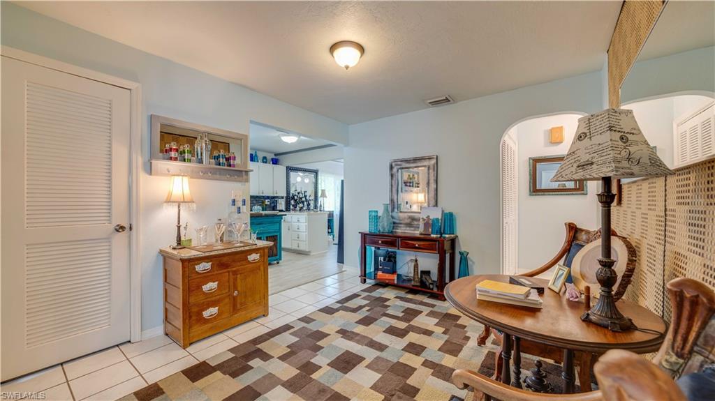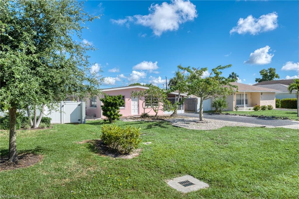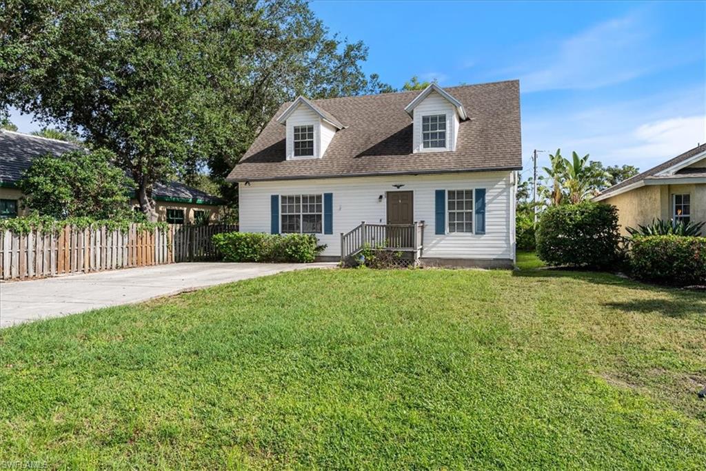 Welcome to this quaint coastal cottage, with a white picket fence, located in the desirable Naples Park 500 Block, west of 41 in Naples, FL, just minutes from the beach, a state park, fine dining, world-class shopping, Whole Foods, and Mercato. This 2 bedroom plus den, plus separate work from home office, 2 bath single-family home, with the option of a third bedroom, offers numerous indoor and outdoor areas for entertaining and relaxation. No flooding has occurred in this home. Recent upgrades include a 2019 roof, HVAC and storm shutters, 2023 hot water heater, 2024 Stovetop/ range and toilets, 2023 and 2025 carpet. Laminate floors are in the main living areas with neutral carpet in two of the bedrooms and den / sitting room. Professionally landscaped, with large palms and lush landscaping for peaceful sitting areas along with auto irrigation with a well which provides peaceful and cost-effective irrigation system. A convenient large storage area is located just north of the covered parking area. This interior of the home was recently painted in 2025 and is ready to live year-round or part time or use for vacation or year-round rental income. Close to top-rated schools, parks, medical, shopping and Naples pristine beaches.