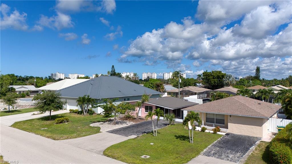 Located on the desirable 600 block of Naples Park, this charming 2-bedroom, 2-bath single-family home delivers peace of mind with its Flood Zone X designation—meaning it is not in a flood zone and offers lower insurance premiums. Just one block from Vanderbilt Drive, you can easily walk or bike to Vanderbilt Beach and Delnor-Wiggins Pass State Park, with Trader Joe’s, Whole Foods, Mercato, The Ritz-Carlton, and top shopping, dining, and nightlife only minutes away. Inside, enjoy a light-filled interior featuring marble tile and warm laminate flooring. The kitchen showcases granite countertops, stainless steel appliances, and an in-home washer/dryer. A new metal roof (2020) adds value and peace of mind. Step outside to a screened-in patio and oversized private backyard—perfect for relaxing, gardening, or entertaining. A storage shed provides added functionality, and with no HOA or rental restrictions, this home offers flexibility as a full-time residence, vacation getaway, or investment opportunity.