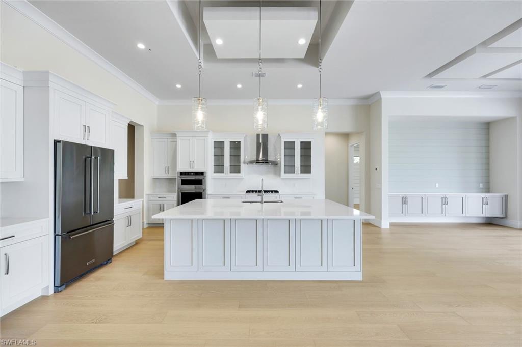 Discover the epitome of luxury and comfort in this stunning new construction home, perfectly situated in the Naples Reserve Parrot Cay Estate subdivision. Located just 20 minutes from both downtown Naples and the pristine beaches of Marco Island, this residence offers the perfect blend of tranquility and convenience. Spanning 3,000 + square feet, this open-concept masterpiece features 4 bedrooms + den and 3.5 beautifully appointed baths—ideal for families, guests, and entertaining. Soaring ceilings throughout the main living areas create an expansive and airy atmosphere, while high-end finishes and attention to detail set this home apart. The chef’s kitchen is equipped with top-of-the-line Viking appliances, offering both style and functionality for culinary enthusiasts. The open concept seamlessly connects the kitchen, dining, wet bar and living areas, ensuring effortless entertainment and everyday living. Step outside to the private, oversized travertine tiled lanai with outdoor kitchen, pool, and spa. Enjoy the captivating fire feature waterfalls that bring a touch of elegance and serenity to your backyard retreat. An outdoor fireplace provides warmth and ambiance, making it the perfect spot for gatherings on cool evenings. Enjoy the security of a gated community, rich with amenities to enhance your lifestyle. Whether you seek fitness, pickle ball, tennis, social activities, or peaceful walks, this community has it all—making it a haven for relaxation and recreation. This exceptional luxury estate is competitively priced, offering remarkable value for the quality, location and amenities provided.