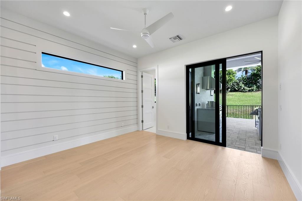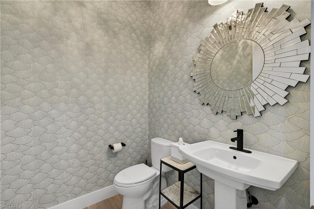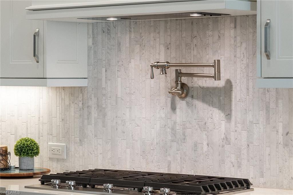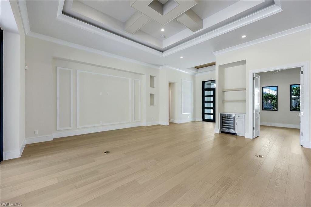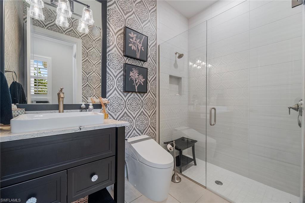 Stunning coastal-inspired home in Naples Reserve. This sophisticated coastal residence, built in 2022, is a perfect example of elegant living in the desirable Naples Reserve community. Offering four bedrooms or three plus den, three full baths, and 2,467 square feet of thoughtfully designed space, the popular Wisteria floor plan by Stock Development balances style, comfort, and functionality. A spacious three-car garage, enhanced with insulated doors, custom cabinetry, and a mini split air-conditioning unit, adds everyday convenience. Some of the interior highlights include extensive upgrades which set this home apart, including Storm-Smart hurricane shutters, a whole-house Generac generator, and impact-resistant windows and doors. Inside, refined details abound such as 9-inch crown molding, solid wood doors, prefinished hardwood flooring, plantation shutters, custom closet systems and professionally designed finishes throughout. The kitchen is a culinary showpiece with quartz countertops, upgraded cabinetry and hardware, pot filler, KitchenAid front-door refrigerator, and high-end appliances. Convenient cabinet for entertaining with bar refrigerator and glass-front cabinetry. A custom great room with beamed ceiling and built-in wall system with lighting provide ideal spaces for entertaining or relaxing. All baths are beautifully finished with wallpaper, bidets, custom tile accents and upgraded cabinetry. Moving to the stunning outdoor living space, the one-of-a-kind lanai is more than exceptional and designed as an extension of the home’s interior comfort. Features include a saltwater pool and spa with rock water element, umbrella stand, and Pentair system, travertine tile flooring, wood plank ceiling, fireplace, custom bar and grill area, and overhead speaker system. A tumbled rock waterfall accent and lush landscaping with custom lighting create an extraordinary outdoor environment that beckons from the moment you enter the home. The primary bedroom suite offers a custom-designed walk-in closet, elegant bath with upgraded cabinetry, and a spacious shower and soaking tub, blending luxury and practicality in a gorgeous environment. The beautiful guest bedrooms and bath have convenient access to the lanai without going through the living area. Naples Reserve provides an unmatched lifestyle with resort-style amenities including pickleball, tennis, bocce, volleyball, a state-of-the-art fitness center, two dog parks, boating, full-service dining, poolside tiki bar and a full-time social director. Between downtown Naples and Marco Island, the home is minutes from beaches, golf, shopping, dining and water recreation. Professionally decorated and meticulously maintained, this residence is must-see.