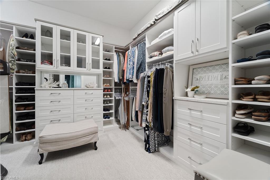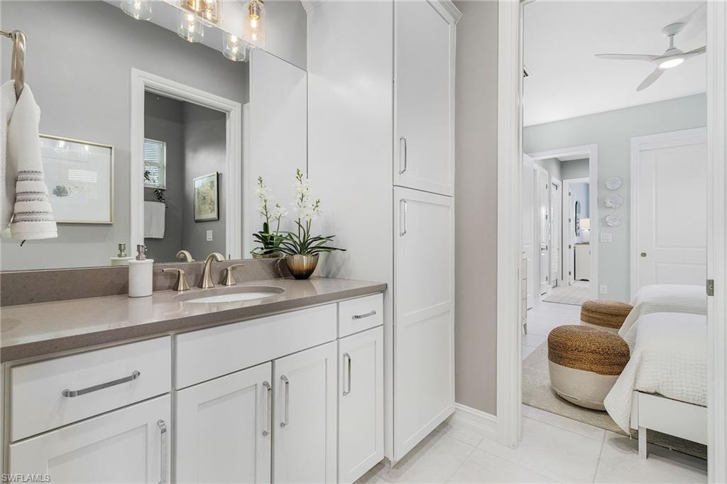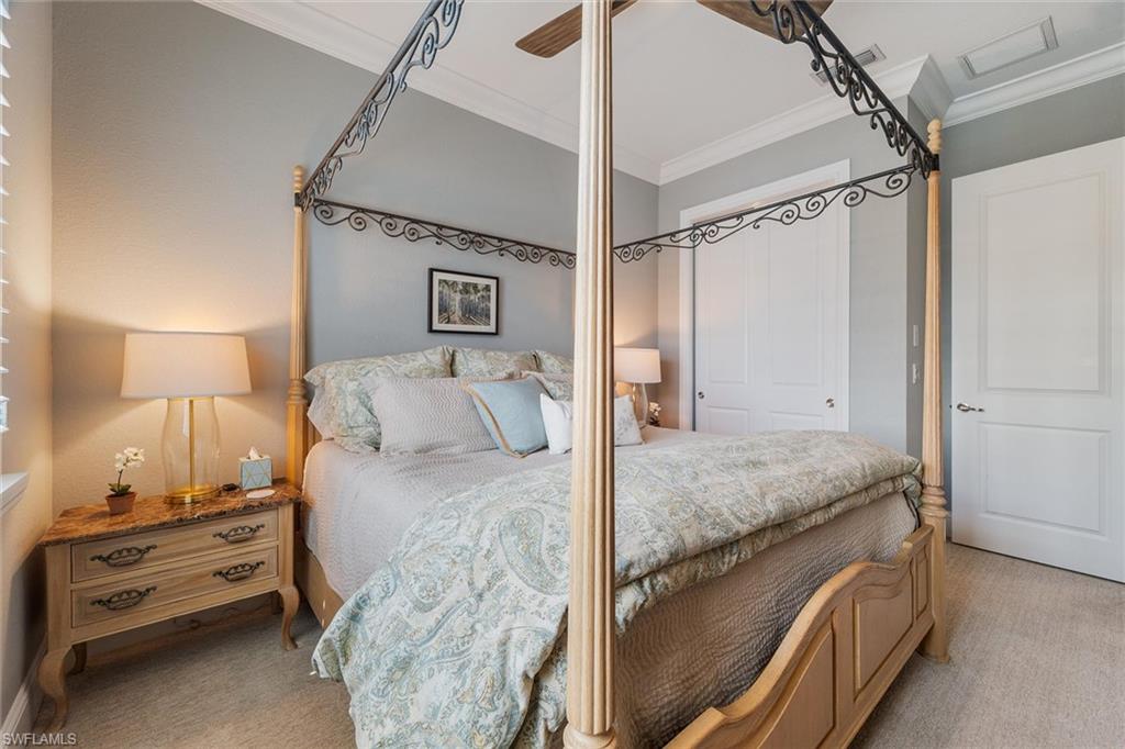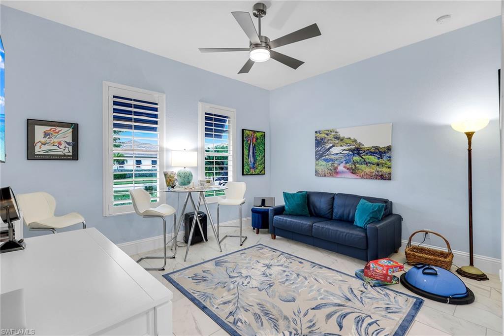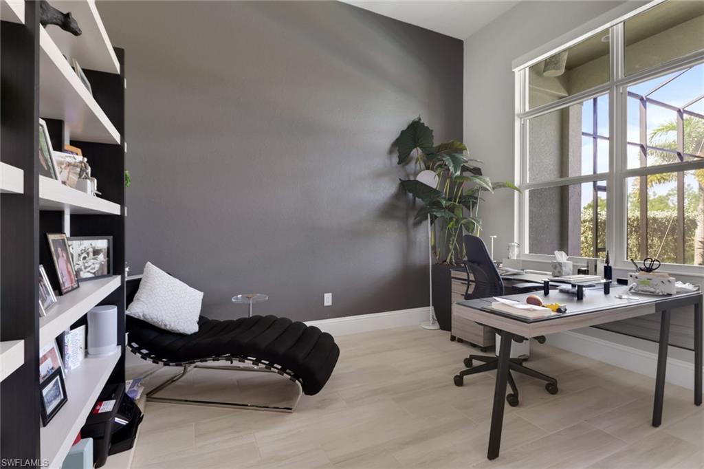 Welcome to Crane Point at Naples Reserve! One of Naples’ most popular communities where luxury and laid-back living meets vacation-style amenities. This custom Stock Development "Madison" model captures the best of Florida living with peaceful lake and private preserve views on "rowing Lane". Designed for both family comfort and versatility, this 2971 sqft-4-bedroom plus den, 4.5-bath home, offers a spacious retreat for everyone. From the moment you step inside the foyer, you will notice statement designer lighting, dramatic 16-foot ceilings with custom wood tray accents and expansive glass sliders with a bee-line to SPECTACULAR VIEWS. Wood-look tile dresses the main living areas while a coastal palate of blues accent the walls. The dining area is nestled in a perfect location for bird watching and tranquil views of the lake. The gourmet kitchen stands as the heart of the home with quartz countertops, top-tier appliances with a gas range, a wine cooler, and generous cabinetry for effortless storage. Each guest suite features its own ensuite full bath- offering privacy for friends and family. The primary suite features his/hers custom walk-in closets and a spa-style bath in the master bathroom featuring a freestanding tub and glass-enclosed shower with two separate vanities. Step outside to an expansive lanai with a full outdoor kitchen/BBQ, dining setup and multiple lounging spaces with a panoramic screen that perfectly frames some of Naples Reserves most sought-after views. Unwind in your very own lakeside custom pool & spa after a day of fun. A full outdoor bath with access into the main house allows for convenience and practicality. Other great features include plantation shutters throughout, a 500-gallon propane tank, impact-resistant windows and doors, a whole-house water purification system, Vitex Smart Home technology, storm smart electric shades to protect all exterior furnishings, a spacious laundry-room with upper/lower cabinetry & laundry tub, an air-conditioned three-car epoxied garage with Wi-Fi control and more. Naples Reserve also permits private boat slips behind certain homes—an uncommon luxury that brings lake life right to your backyard. Residents enjoy resort-style amenities including a lakefront pool and lap-pool, fitness center, tennis and pickleball courts, bocce, two dog parks, walking and biking trails, and 22 lakes for kayaking and paddleboarding. Exciting updates are on the horizon with the community’s new restaurant, tiki bar, and clubhouse renovation, set to debut in March 2026, promising an even more vibrant and social coastal lifestyle to this already fantastic community!! Just minutes to the Fiddlers Creek Plazas' Publix and several shops, 20 minutes to Marco Island and 20 minutes to downtown Naples restaurants and white-sand beaches!