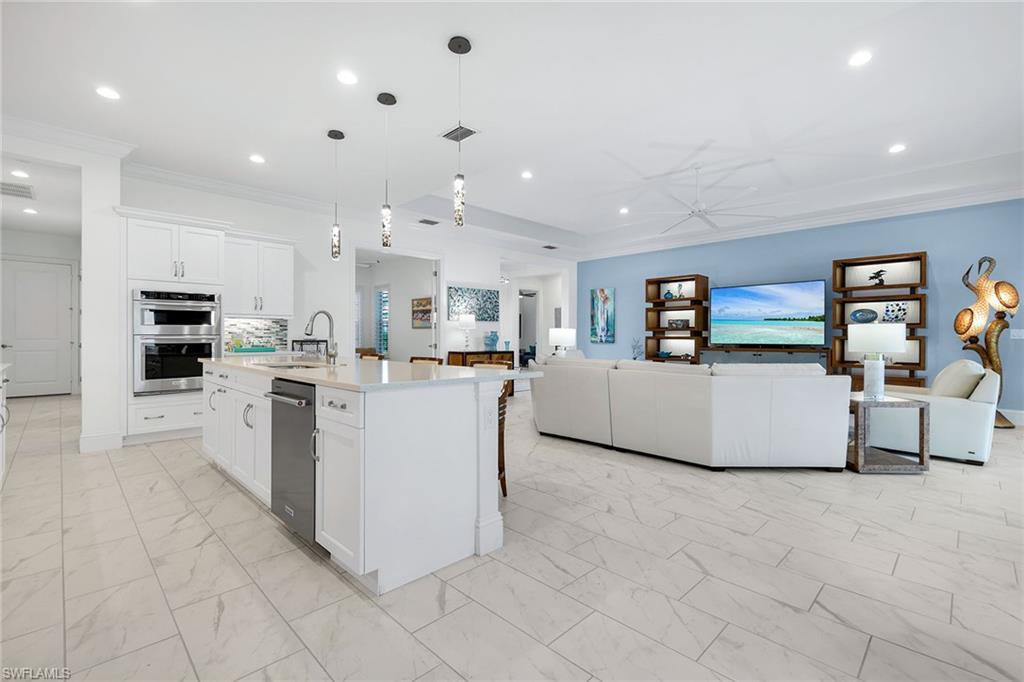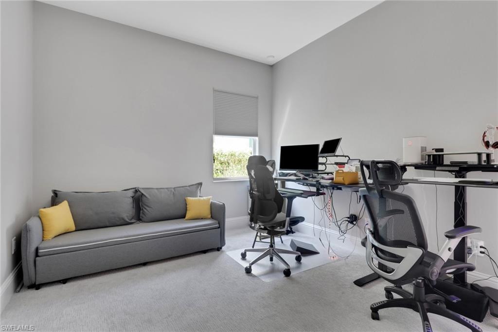 Introducing The Key Largo, a beautifully designed custom home located in the highly desirable community of Naples Reserve—a place where laid-back luxury meets resort-style living in the heart of Southeast Naples. Built by the renowned Florida Lifestyle Homes, this property blends modern elegance with functional design for the ultimate Southwest Florida experience. This residence features 3 bedrooms, 3.5 bathrooms, and 3,077 square feet of thoughtfully curated interior space. Soaring 10+ foot ceilings with striking architectural accents create a grand sense of openness, while spacious walk-in closets and en-suite bathrooms provide comfort and privacy for every bedroom. The chef’s kitchen is a true showpiece, featuring dual islands for added prep and entertaining space—ideal for hosting gatherings or enjoying everyday meals in style. A private study offers a quiet space for work or relaxation, and the spa-like owner's suite provides a serene escape at the end of the day. Step outside to your expansive outdoor living area, complete with a covered lanai, built-in outdoor kitchen, and a sparkling private pool—perfect for soaking up the Florida sunshine. A generous 3-car garage adds functionality and convenience, bringing the total footprint of the home to 4,638 square feet. As a resident of Naples Reserve, you’ll enjoy access to one of the most amenity-rich communities in the area. From the Island Club’s resort-style pool, Latitudes Café, and lakeside Tiki Bar, to the Outrigger Activities Center, Match Point Complex with tennis and pickleball courts, and miles of scenic lakes for paddleboarding, kayaking, and more—there’s something for everyone here. Even your four-legged friends are covered with two on-site dog parks. Come experience why Naples Reserve is more than a community—it’s a lifestyle. Discover the casual elegance of The Key Largo and make this exceptional home your next address.