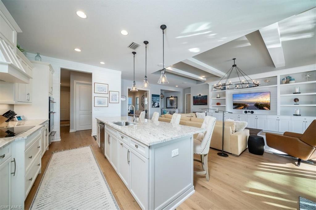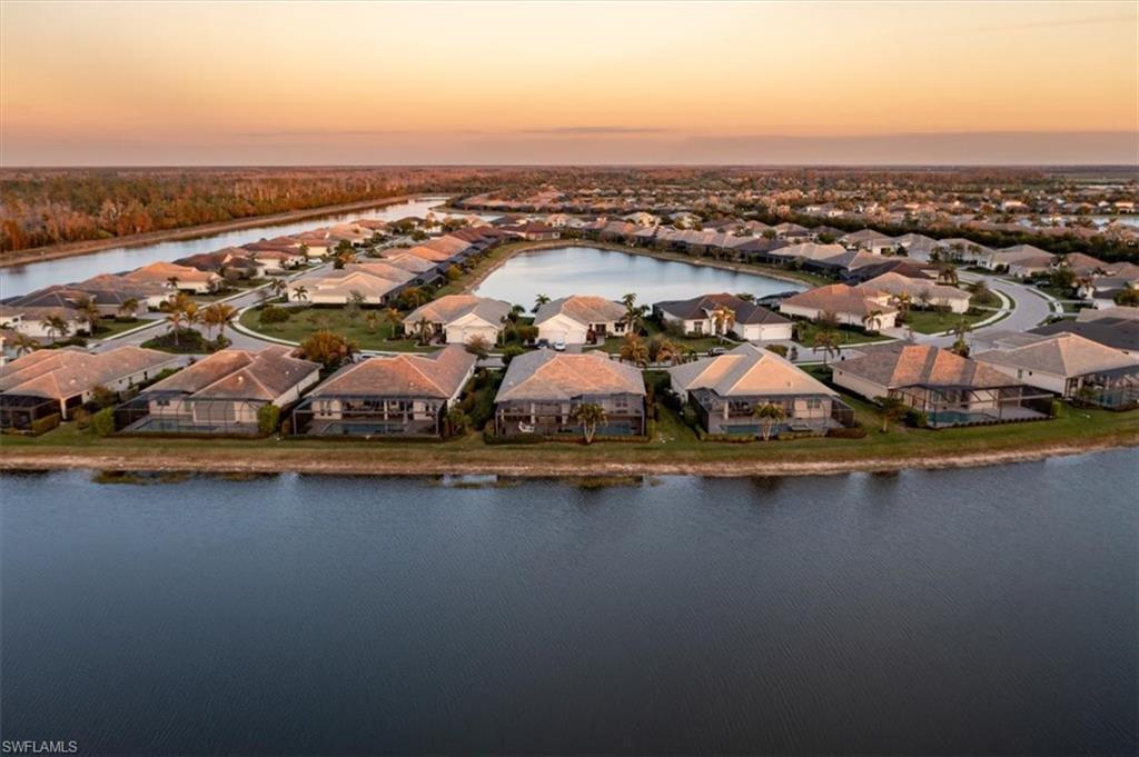Experience the ultimate in luxury and resort-style living in this exceptional 2019 Stock-built Marathon 3 floor plan home. Perfectly situated on an oversized western exposure lot with breathtaking sunset views over the lake. Spanning 4,050 total sq. ft. of indoor and outdoor living space. Gorgeous wide plank white oak engineered hard wood flooring throughout much of the home. This meticulously upgraded home offers 3 bedrooms plus an office/den, 3.5 baths, soaring volume ceilings, and an open-concept great room with media wall with open and closed storage. The gourmet kitchen is a chef’s dream, featuring an expansive island, KitchenAid appliances, a walk-in pantry, tiled backsplash and so much more. The primary suite is a private retreat with custom his-and-hers closets and a spa-like bath with a freestanding tub and walk-in shower with seamless shower doors. Smart home technology allows you to control so much with apps and Alexa technology. Step outside to an oversized saltwater pool, integrated spa, summer kitchen, panoramic screened lanai, and custom pool lighting, plus electric storm smart fabric Kevlar screens to close off the covered lanai space which are all designed for relaxation and entertaining. Additional upgrades include a whole-home generator, impact windows, an upgraded electrical panel, an instant hot water heater, enhanced landscaping, and a 3-car extended garage with epoxy flooring, and electric keypad entry. This home is also able to add a dock at the rear of the property if you so desire. Nestled within the exclusive, gated community of Naples Reserve, this home offers low HOA fees and access to world-class amenities, including a resort-style pool, tiki bar with food and beverage service, state-of-the-art fitness center, bocce, pickleball, tennis, sand volleyball courts, a lakefront beach, marina, kayak and electric boat rentals, scenic walking and biking trails, two dog parks, and a vibrant social calendar managed by an on-site Lifestyle Director. Whether seeking tranquility or an active social scene, Naples Reserve delivers the perfect balance. This move-in-ready masterpiece offers an unparalleled lifestyle.