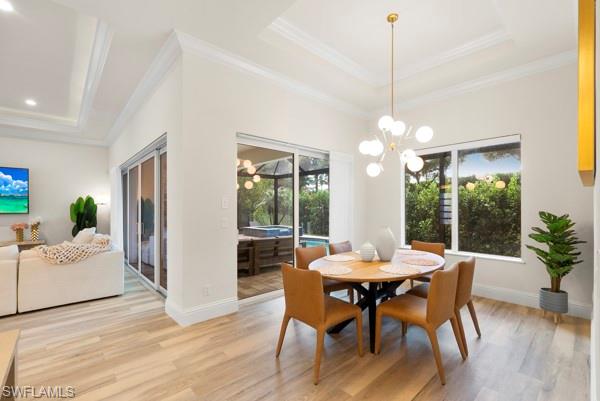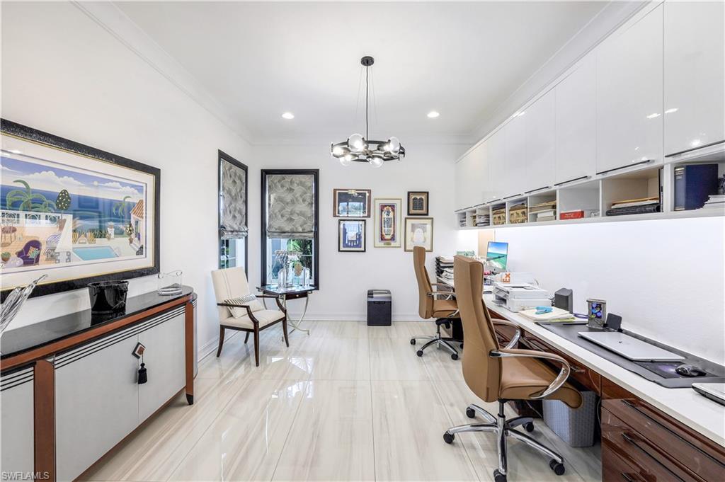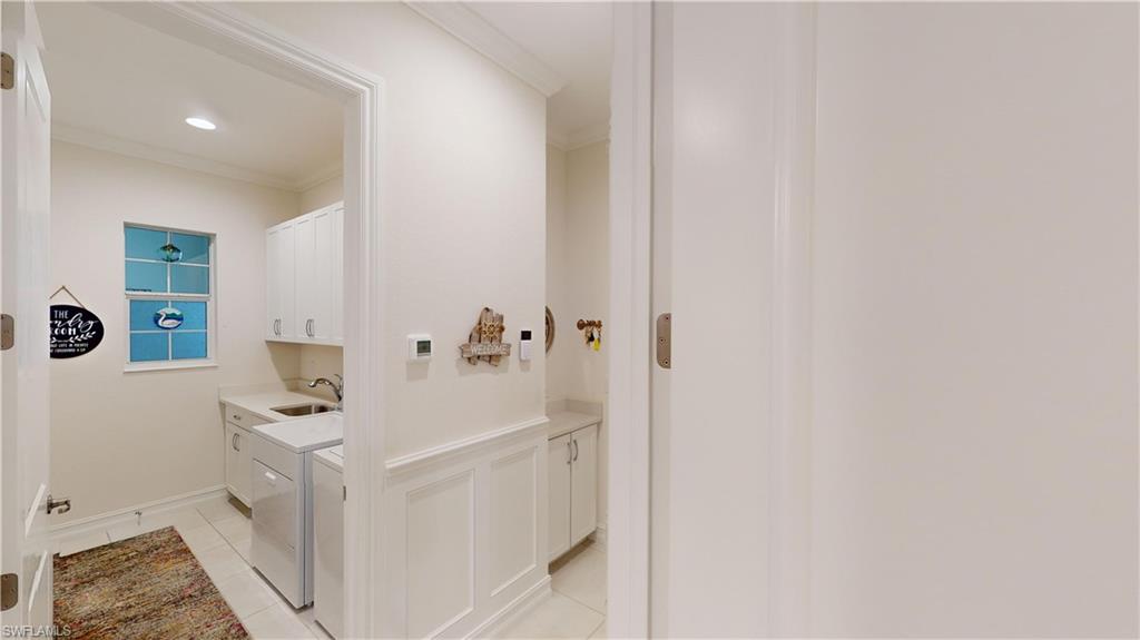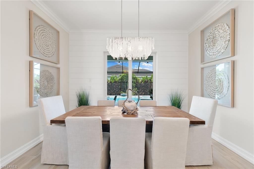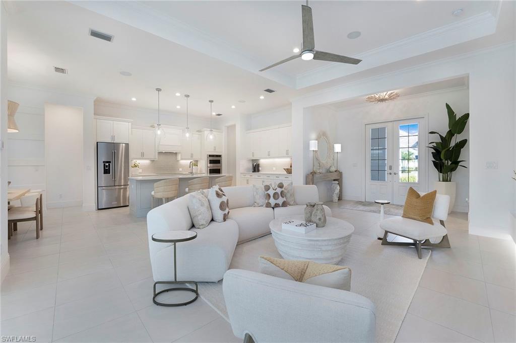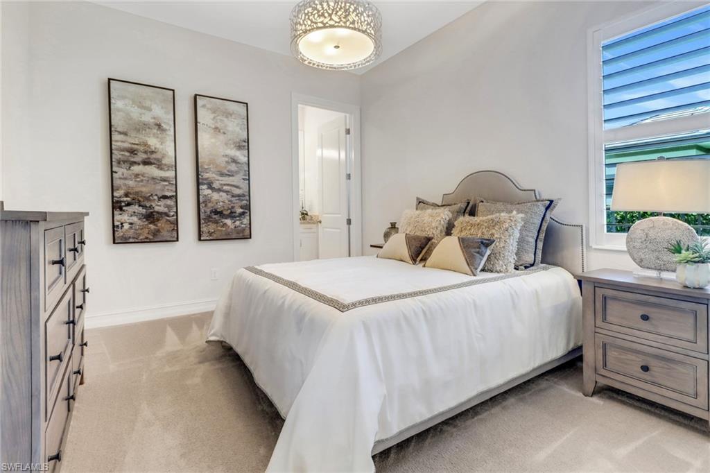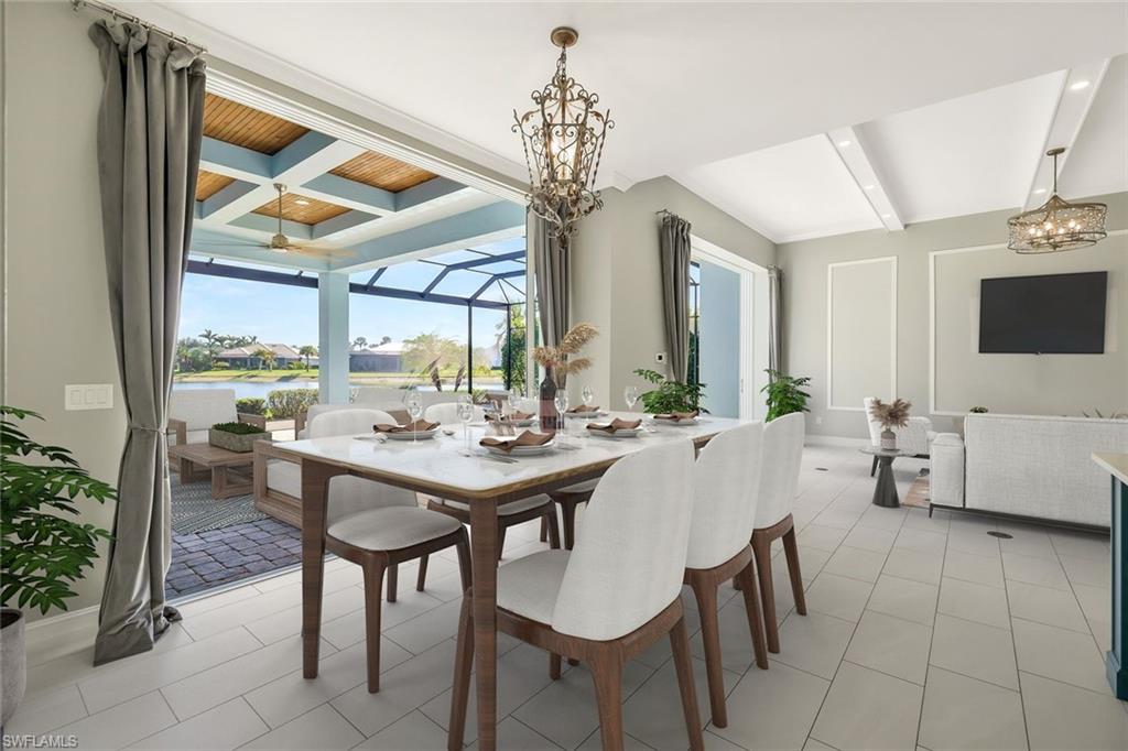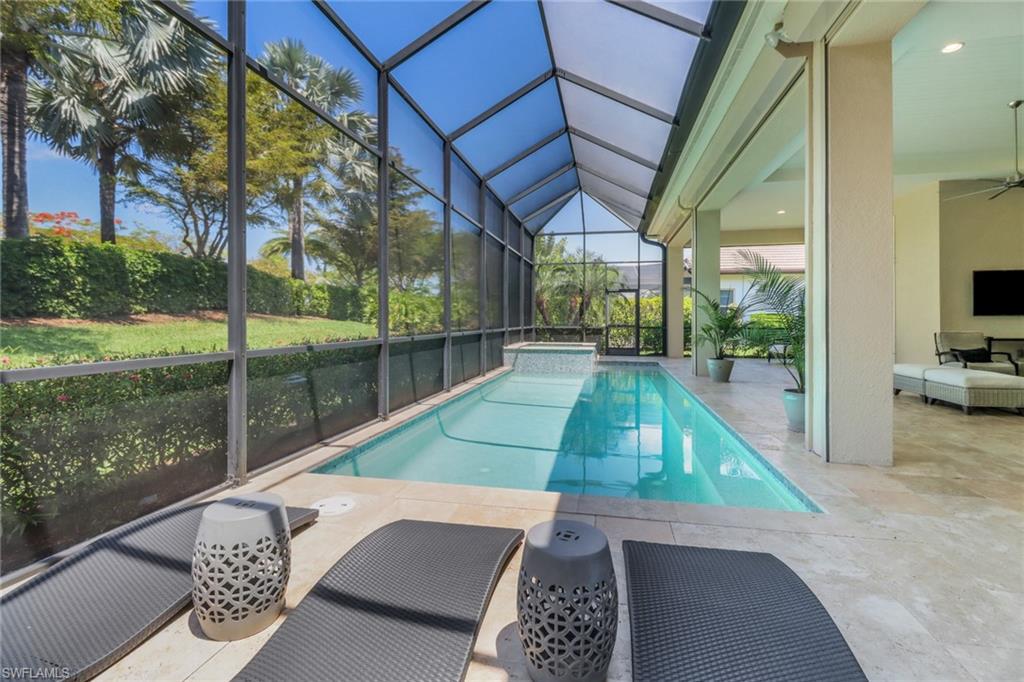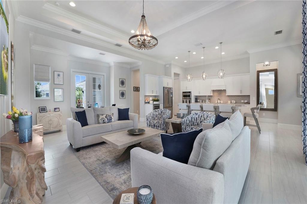 Welcome to this spacious and stunning Stock custom home, in the vibrant gated community of Naples Reserve. Go inside this Venice floorplan design and be greeted by the refined elegance of crown molding throughout, accentuating the home's sophisticated features. The expansive great room with 14-foot tray ceiling, neutral toned-tile floors, is bathed in natural sunlight, creating a warm and inviting atmosphere. The gourmet kitchen is a chef's delight, complete with white cabinetry, under-mount lighting, soft-close drawers and doors, and an expansive island adorned with elegant granite counters and a matching backsplash. Sleek KitchenAid stainless steel appliances complete this culinary haven. Enjoy your morning coffee in the cozy breakfast nook and host formal dinners in the adjacent dining room. Retreat to your spacious primary suite, featuring his and her walk-in closets and a luxurious en-suite bath. The split floor plan includes two spacious guest bedrooms that share a second bath and a roomy fourth bedroom presently used as a den. Relax on your expansive lanai with new screening, southerly long lake view, heated salt-water pool, spa and gorgeous summer kitchen. Enjoy peace of mind with impact glass windows and doors, Storm Smart shades, split air conditioner in the three-car garage, whole-house water filtration system, whole-house surge protection, pool equipment surge protection and Vitex alarm system. Active clubhouse offers an impressive array of amenities and a lively event calendar. Stay fit in the fitness center, play bocce ball or beach volleyball, and unwind at the tiki bar and café. Dive into the resort-style pool with lap lanes or gather around the fire pit. Adventure awaits on the private Kon Tiki island with paddleboards, kayaks and bicycles. Sports enthusiasts will love the tennis and pickleball courts, basketball court, and miles of recreational and biking paths. Pet owners can take advantage of the dog parks, and families will adore the kid’s cove with a tot lot. Conveniently between downtown Naples and Marco Island, this home offers easy access to shopping, entertainment, dining and numerous Gulf beaches. Not in flood zone (Zone X). Don't miss your chance to experience this exceptional lifestyle!