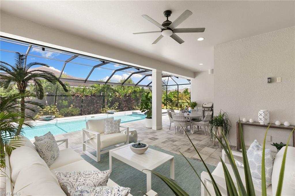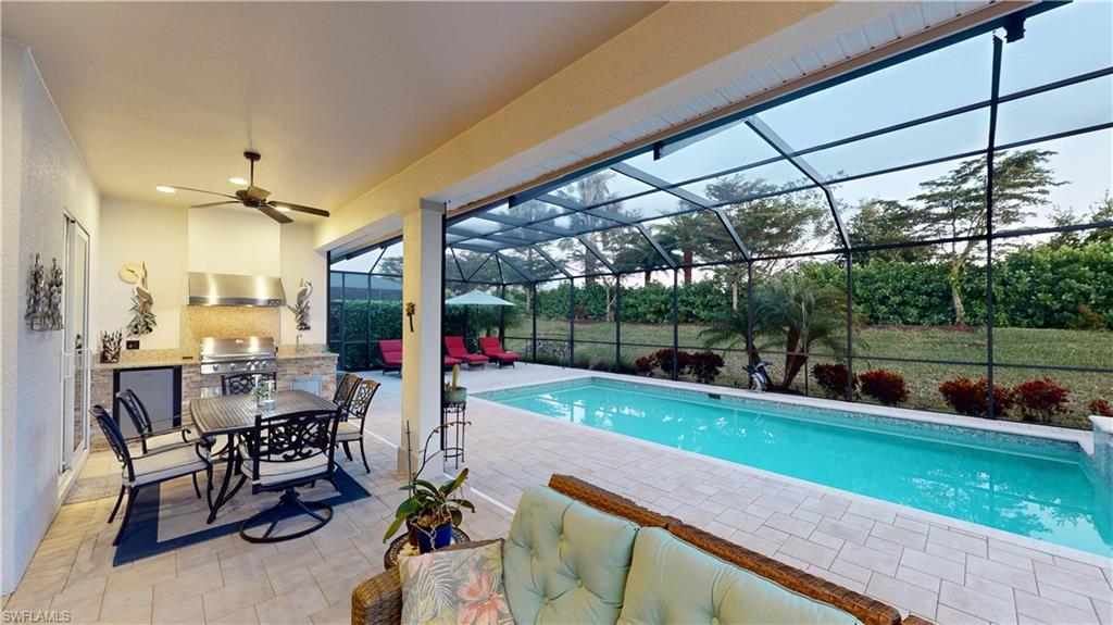 With 3.5% owner financing for 3-5 years. Welcome to Laguna Springs Lane in prestigious Naples Reserve! Built by Stock Development and loaded with upgrades, this exquisite four-bedroom, three-full-bath home showcases an array of upgrades, creating a luxurious and comfortable living space. The outdoor living area features a granite custom kitchen, ideal for hosting gatherings. State-of-the-art storm shutters have been installed in this living space so, coupled with the impact-resistant windows throughout the home, peace of mind prevails during stormy weather. A fenced-in dog area completes the backyard, should your family include a pet. Go inside the home and enjoy the charm of plantation shutters throughout the home, providing complete privacy and elegance in every room. The exotic granite counters in the kitchen and baths add a touch of elegance. Revel in the beauty of the upgraded flooring that complements the home. The extended driveway leads to the oversized, climate-controlled, three-car garage with epoxy flooring and built-in cabinetry. Between downtown Naples and Marco Island and close to beaches, restaurants, shopping, boating, golf and airports, Naples Reserve offers an impressive lineup of amenities including pickleball, state of-the-art fitness center, tennis, on-site restaurant and poolside tiki bar, volleyball, two dog parks and complementary water sports.
