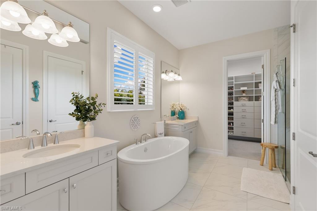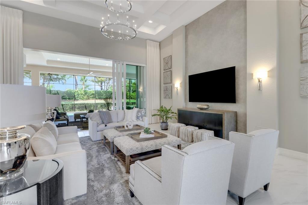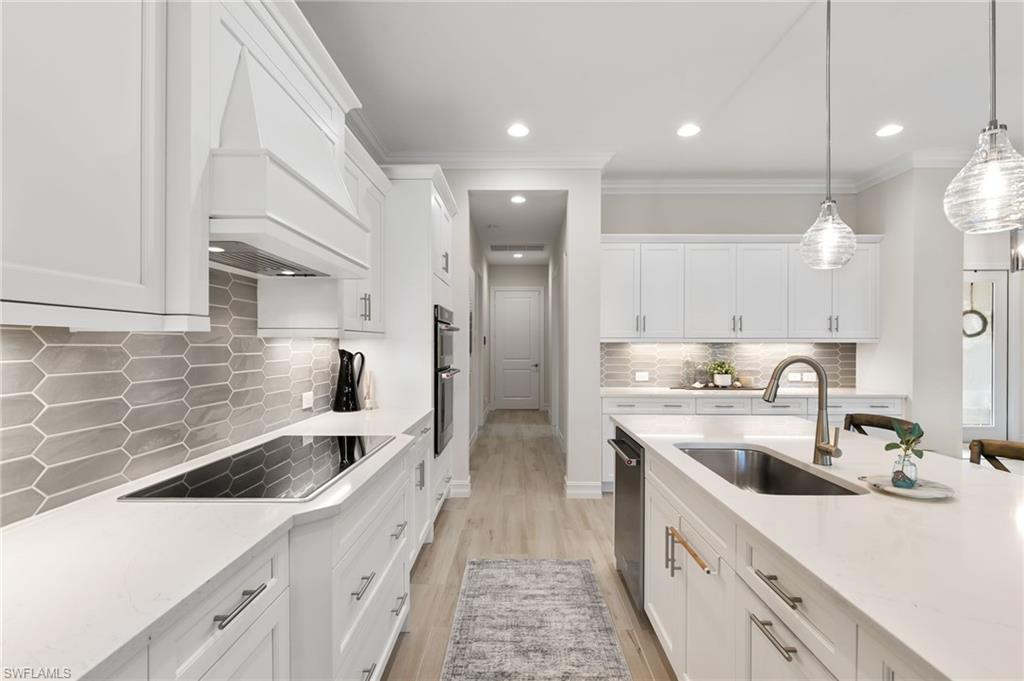 This stunning Stock Development-built, three-bedroom plus den Siesta III residence captures the essence of refined coastal living with elegant finishes, thoughtful upgrades, and serene indoor-outdoor flow. In the prestigious Crane Point neighborhood of Naples Reserve, this home blends architectural excellence with a contemporary sense of comfort. Upon entry, volume ceilings, abundant natural light, and new interior and exterior paint create a bright and inviting ambiance. The open-concept great room features a custom feature wall that becomes the visual centerpiece of the space, while designer lighting, new fans, and Hunter Douglas window treatments enhance both style and functionality. The gourmet kitchen caters to the culinary enthusiast with premium cabinetry, quartz surfaces, an induction cooktop, and a spacious island that invites gathering and conversation. Every detail reflects intentional design, from the seamless integration of a Sonos whole-home sound system to the impact glass windows and doors that bring peace of mind and quiet luxury. The primary suite offers a tranquil retreat, with direct access to the lanai and a spa-inspired bath that includes dual vanities, a floating soaking tub, a separate glass-enclosed shower, and a custom-designed closet system that maximizes organization and elegance. Designed for entertaining and relaxation alike, the outdoor living area extends the home's living space with a heated saltwater pool and infinity-edge spa, complemented by an outdoor kitchen ideal for alfresco dining. Storm Smart electric roll-down screens create effortless comfort and protection, allowing year-round enjoyment of the lanai's private, resort-like setting. Additional highlights include a three-car garage with epoxy flooring, abundant storage and pristine landscaping that enhances curb appeal. In Naples Reserve, residents enjoy a world of amenities, including pickleball and Har-Tru tennis courts, a cutting-edge fitness center, scenic recreational and biking trails, and a 125-acre lake with kayaking, paddleboarding, and lakeside recreation. The renovated clubhouse and restaurant, anticipated for completion in 2026, will further elevate the community's social and lifestyle offerings. This is more than a home, it's a lifestyle of comfort, sophistication and connection, where every day feels like a vacation in paradise.