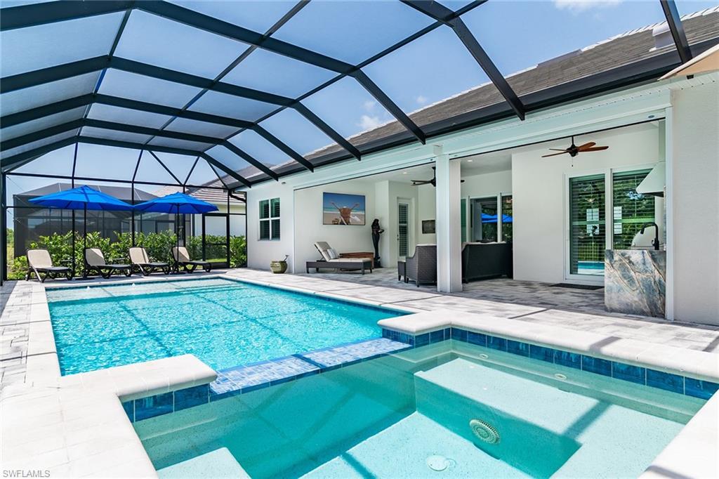 For limited time only SELLER is offering $10k towards BUYERS closing costs, as well as, complimentary FURNITURE AND DECORATIONS are being offered with a sale of the this exceptional, newly custom built in 2021 property, that is situated in a heart of South Naples Florida area. An exquisite and one of the kind luxurious home could be yours, as it is priced to sell quick! Beautiful open floor plan home invites you to experience 4 bedroom (one bedroom could be easily converted into the office / den), 3 full bathrooms and 1 half bath, heated swimming pool and jacuzzi, surrounded with lush landscaping. Screened in lanai area has a built out BBQ kitchen, with plenty of room to lounge around, relax, gather or entertain. 3 car garage give you plenty of space to park your cars as well as the golf cart, if need, or additional space could be utilize for storage. Endless custom options and upgrades throughout, interior and exterior of the property. It’s a must see home, you will fall in love with! Property is located in five start luxurious community surrounded by 22 lakes, miles of bike/walking trails and 1 mile rowing lane. Naples Reserve has a security guarded gate, The Island Club, The Outrigger for parties, fitness center, resort style pool with lap lanes, cafe, tiki bar, beach with volleyball, pickle-ball courts, tennis courts, bocce ball, two dog parks, playground for kids, basketball court.