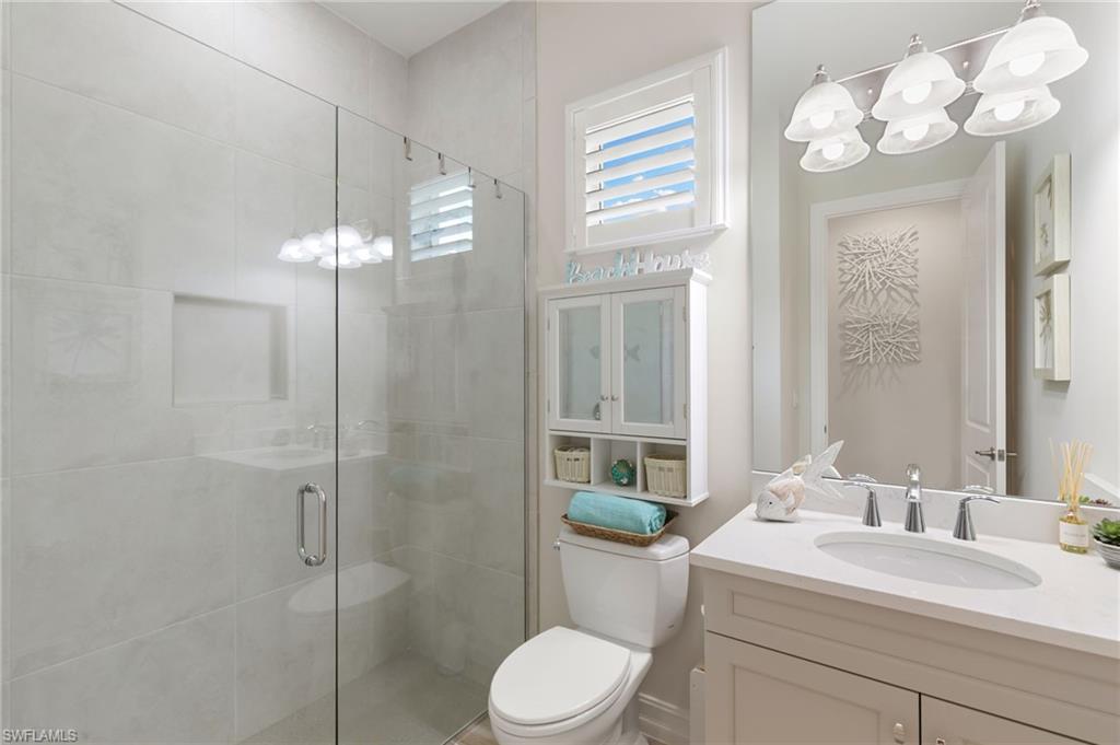 This stunning 2020 Stock Construction (Siesta III Floorplan) home is bursting with luxurious upgrades. The centerpiece of the backyard is a magnificent custom heated salt-water pool, perfect for year-round enjoyment. Inside, the kitchen dazzles with elegant under & above cabinet lighting and beautiful glass tile backsplash that complements the gleaming quartz countertops. The master suite is a true retreat, featuring a generous walk-in closet, a beautifully designed bathroom with double sinks, a relaxing separate tub, and a lavish walk-in tile frameless shower enclosure that adds a spa-like elegance. You'll find high-impact-resistant windows throughout the home, providing safety and energy efficiency, along with a Reme Halo UV light integrated into the A/C system for improved air quality. Attention to detail is evident with custom handmade wainscoting and exquisite crown molding accentuating the living spaces. Additionally, plantation shutters adorn the windows, adding a classic touch, while modern conveniences such as an alarm system, and in-ceiling surround sound in the great room enhance your lifestyle. The garage is a functional and comfortable space featuring a wall-mounted ductless air conditioner, insulated garage door, insulated ceiling, and well-organized wall cabinets. The exterior is beautifully landscaped with screening shrubs and trees that provide privacy. You'll also appreciate the peace of mind offered by the 24 kW whole-house Generac generator, connected to a sizable 500-gallon propane tank. The outdoor kitchen, crafted by SWFL Kitchens, is perfect for entertaining guests, while Storm Smart hurricane shutters protect your home. Custom-designed cypress ceiling beams in the great room lend a warm, rustic charm, and ceiling fans and crown moldings can be found throughout the home. Don't forget the convenience of a 48-bottle under-cabinet wine refrigerator to keep your favorite drinks perfectly chilled. Living in Naples Reserve means immersing yourself in natural beauty, exploring (22) lakes, and enjoying miles of scenic bike and walking trails alongside a picturesque 1-mile rowing lane. The community provides security with a manned guard gate. It offers fantastic amenities, including The Island Club, The Outrigger for hosting events, a fully equipped fitness center, and a resort-style pool with lap lanes. Enjoy refreshments at the cafe or tiki bar, relax on the beach with volleyball, and enjoy the pickleball courts, tennis courts, and bocce ball area. Furthermore, there are two dog parks and a dedicated playground.