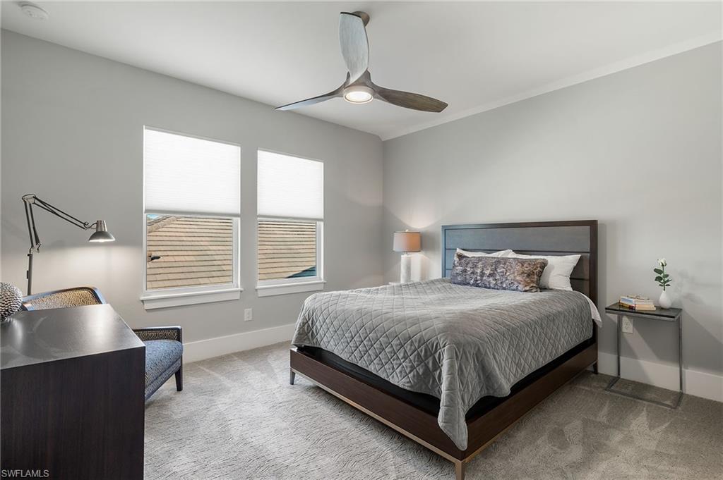 Ready to move right in. One of the previous stock model homes is on the market. Desirable madison floor plan packed with upgrades and featuring 4 bedrooms, plus a den, 4.5 bathrooms where all 4 full bathrooms are ensuite baths, 3 car garage, pool/spa and out door kitchen with a very large covered overhang on your upgraded no-see-um screened in patio. Be wowed when walking in by the ceiling height and custom ceiling work as you enter the double doors into the home. Your gourmet kitchen awaits with upgraded quartz counters, tile backsplash, stainless steel appliances, oversized wooden hood, lots of drawer space and plenty of walk-in pantry space with custom built-ins. Main Bedroom offers his and her walk-in closet with closet cabinets, carpet and custom ceilings, patio doors to enjoy the outdoor pool area and your luxurious ensuite bath with separate soaking tub and huge walk-in shower, double vanity and make-up counter. The ultimate Florida entertainment home with large pool/spa, full out door kitchen, automated hurricane shutters and an extended lanai with plenty of covered outdoor space to enjoy the florida weather. Large laundry room with custom cabinets, sink and large folding station. Naples Reserve is a resort style community with lap pool, community pool, beach volley ball, tennis and pickle ball center, paddle boats, fitness and classes, tiki bar and much more