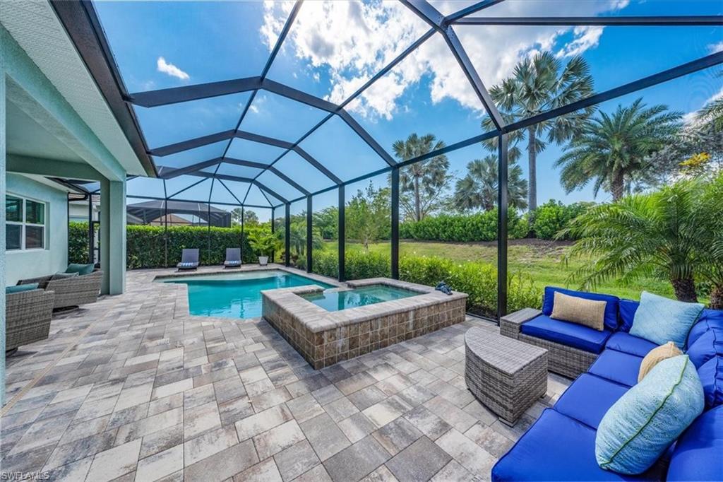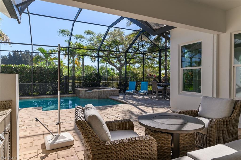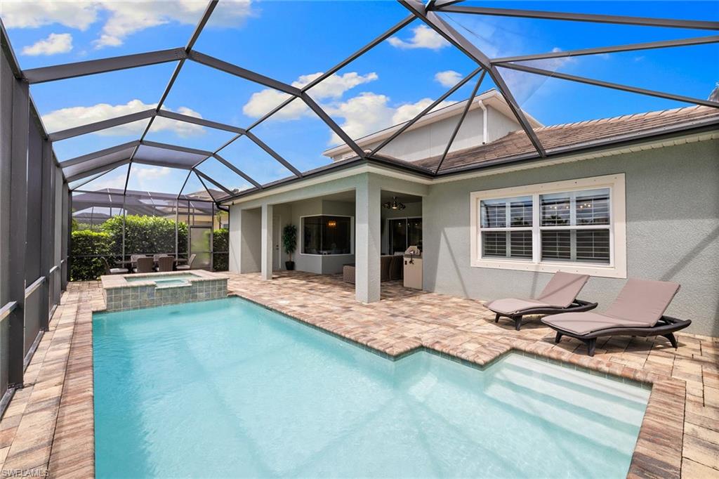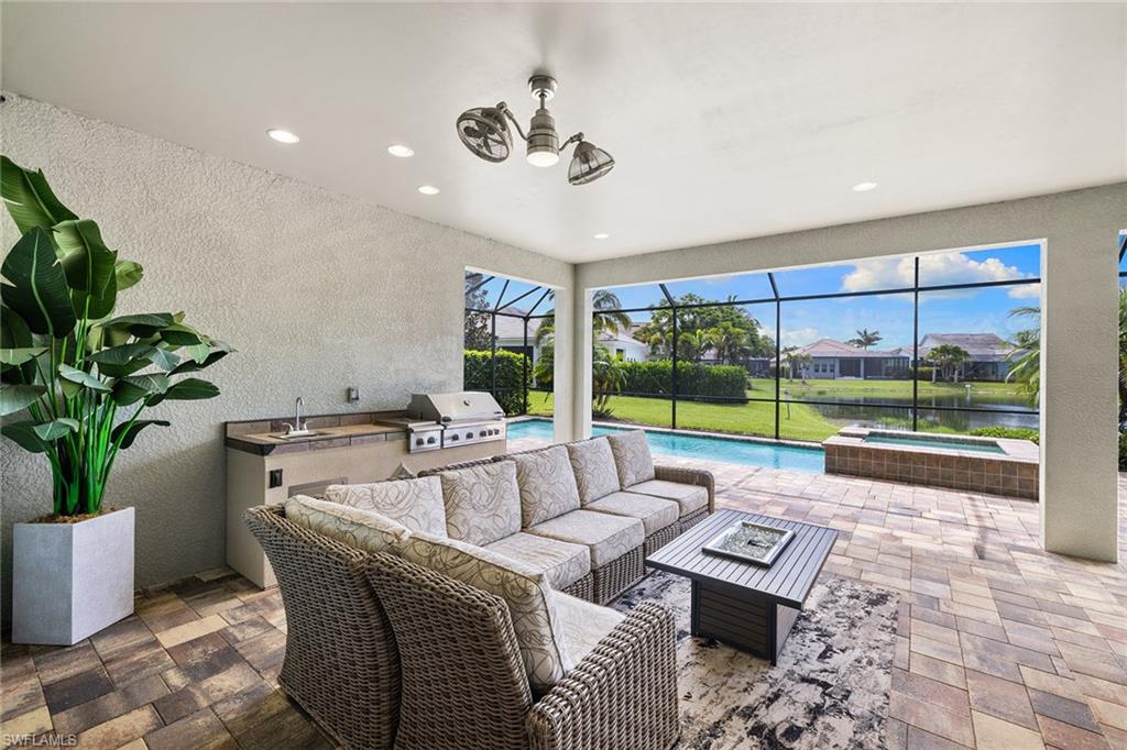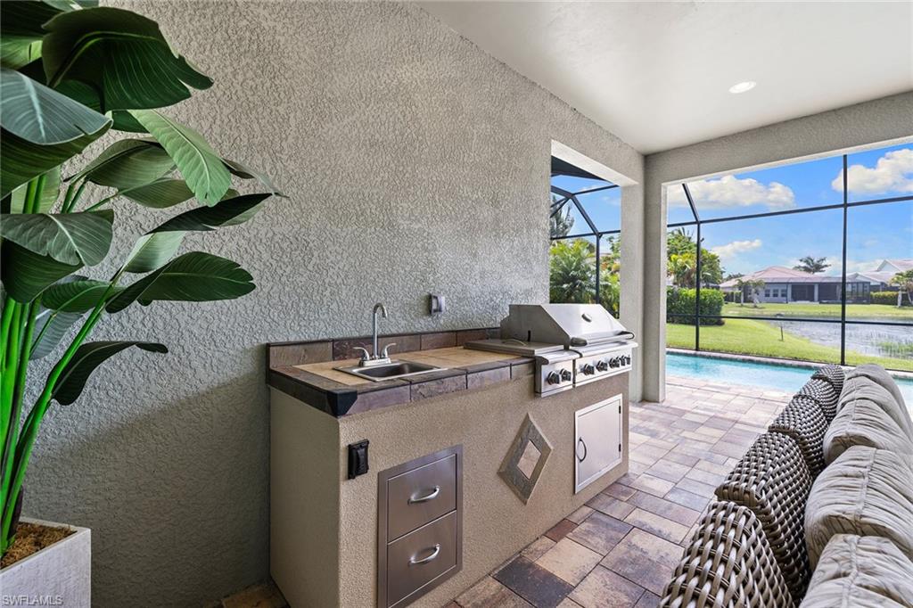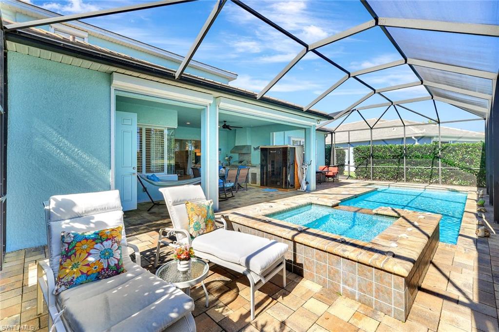 Discover effortless living in this 3-bedroom + den home nestled in the resort-style community of Naples Reserve. Thoughtfully designed for indoor-outdoor enjoyment, it features a saltwater pool, extended screened lanai, and a fully equipped outdoor kitchen with weatherproof cabinets—plus an outdoor shower for the ultimate tropical vibe. Inside, the flexible den offers space for a home office or guest overflow, while impact windows and doors, electric shutters, and an X-flood zone location (no flood insurance required) bring peace of mind. Furniture is negotiable, making your move-in seamless. Enjoy low-maintenance living in a gated community with low HOA fees and access to amenities like a lagoon-style pool, fitness center, tennis, pickleball, and scenic walking trails. Live where every day feels like a vacation— schedule your private showing today.