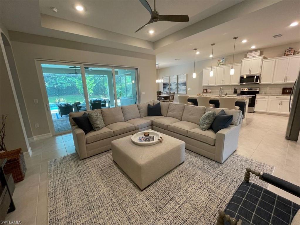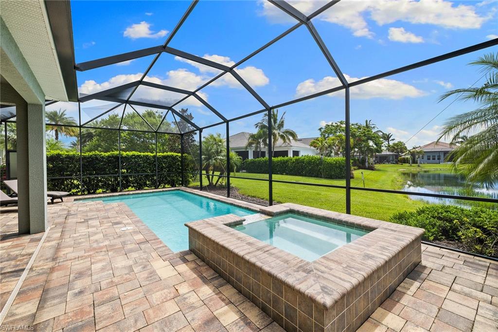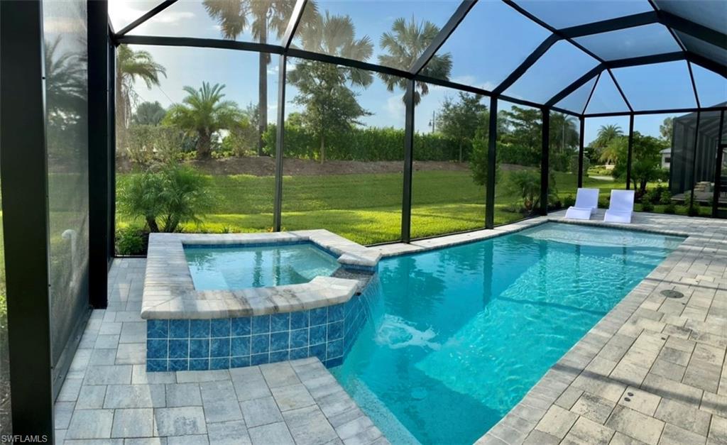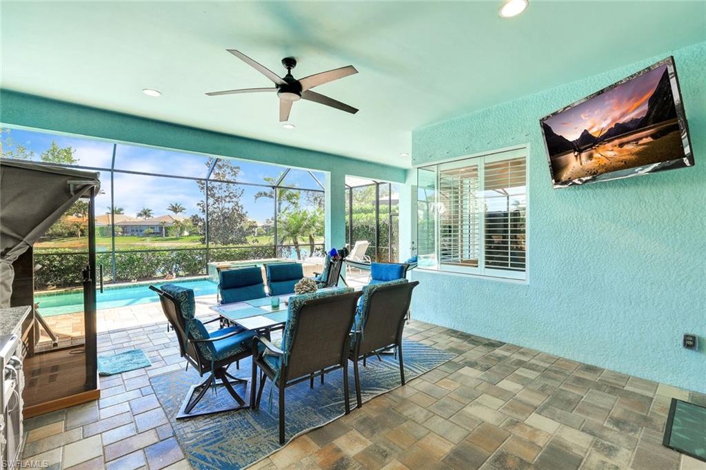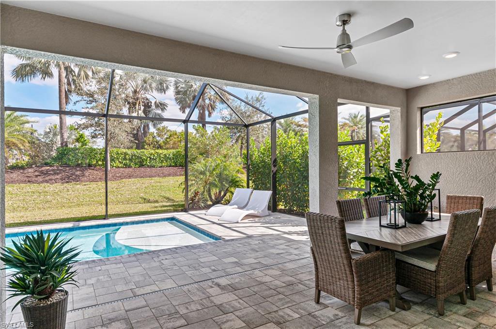 Discover effortless living in this 3-bedroom + den home nestled in the resort-style community of Naples Reserve. Thoughtfully designed for indoor-outdoor enjoyment, it features a saltwater pool, extended screened lanai, and a fully equipped outdoor kitchen with weatherproof cabinets—plus an outdoor shower for the ultimate tropical vibe. Inside, the flexible den offers space for a home office or guest overflow, while impact windows and doors, electric shutters, and an X-flood zone location (no flood insurance required) bring peace of mind. Furniture is negotiable, making your move-in seamless. Enjoy low-maintenance living in a gated community with low HOA fees and access to amenities like a lagoon-style pool, fitness center, tennis, pickleball, and scenic walking trails. Live where every day feels like a vacation— schedule your private showing today.
