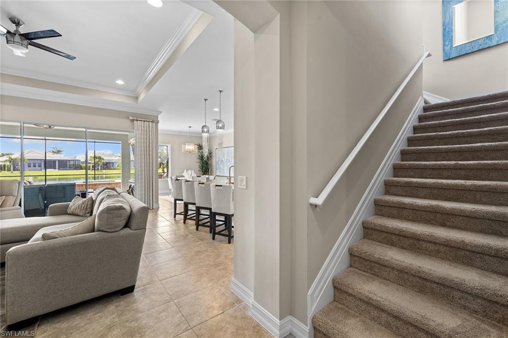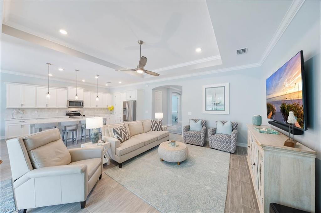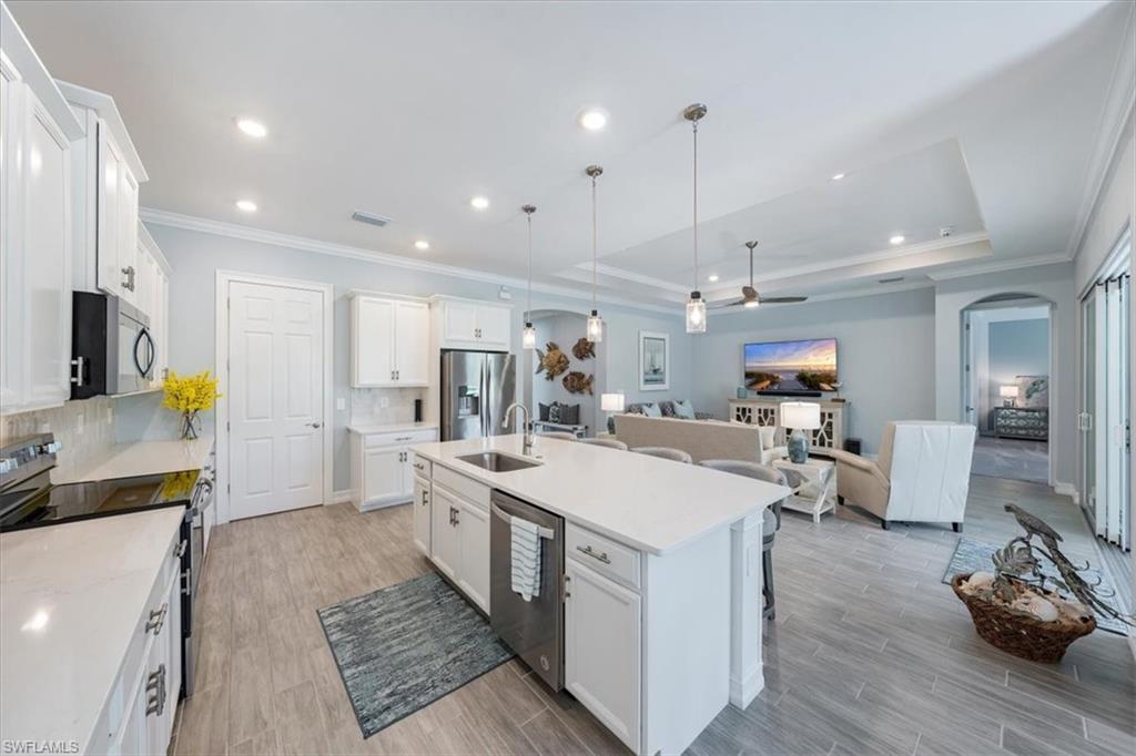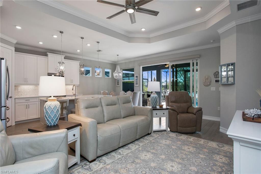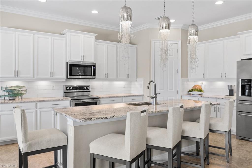 Welcome to this beautifully upgraded Ashbury floorplan, offering breathtaking southern exposure and long lake views. Designed for comfort and elegance, this residence features a spacious three-car garage and an open-concept layout that invites natural light to flow throughout. Inside, you’ll find a custom board and batten wall, wood-look tile flooring, custom light fixtures and crown molding in the main living areas, adding warmth and sophistication. The gourmet kitchen is a chef’s dream, boasting quartz countertops, an induction cooktop and a wine cooler, ideal for entertaining. Step outside to your private oasis, where a heated saltwater pool and spa overlook the tranquil lake, ideal for hosting gatherings or simply unwinding in the sunshine. Electric Storm Smart roll-down screens provide peace of mind. In the amenity-rich Naples Reserve, residents enjoy a resort-style clubhouse, pool, private island, tiki bar, fitness center, tennis, pickleball and more. Just minutes from Naples' pristine beaches and upscale dining, this home offers a blend of luxury and lifestyle. Schedule your private tour today!